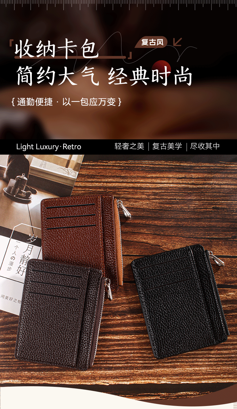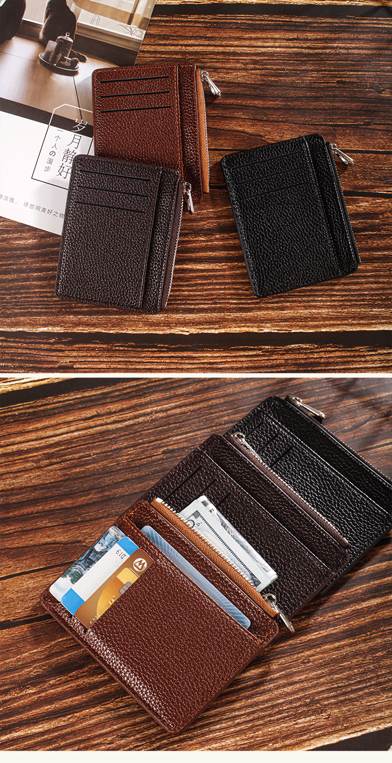 블랙 리치 가죽 카드 지갑, 서류 정리 수납 가방, 지퍼 지갑, 다기능 동전 지갑, 카드 홀더, 비즈니스 스타일