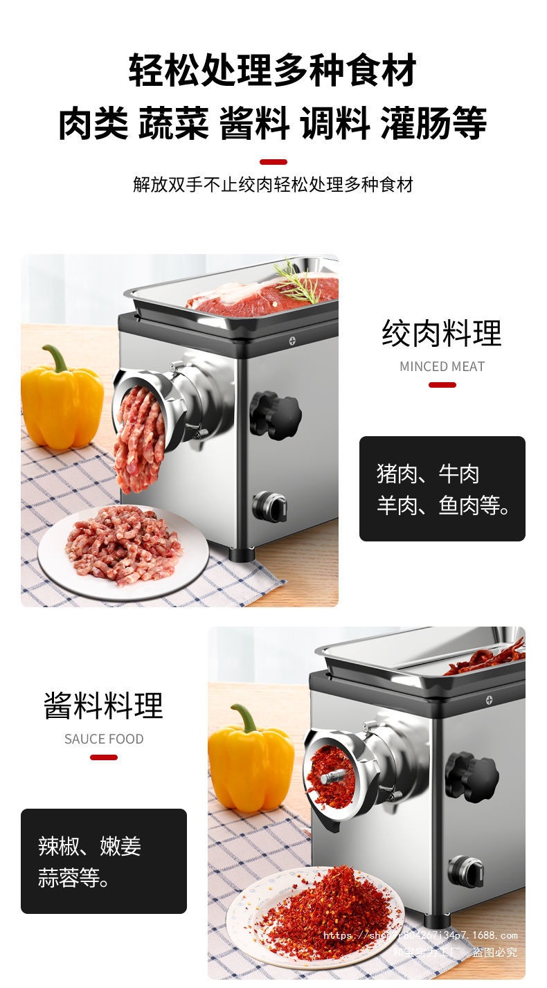고기 분쇄기 상업용 다기능 전기 스테인레스 스틸 완전 자동 고출력 고기 분쇄기 만두 충전 소시지 소형스토어 가기