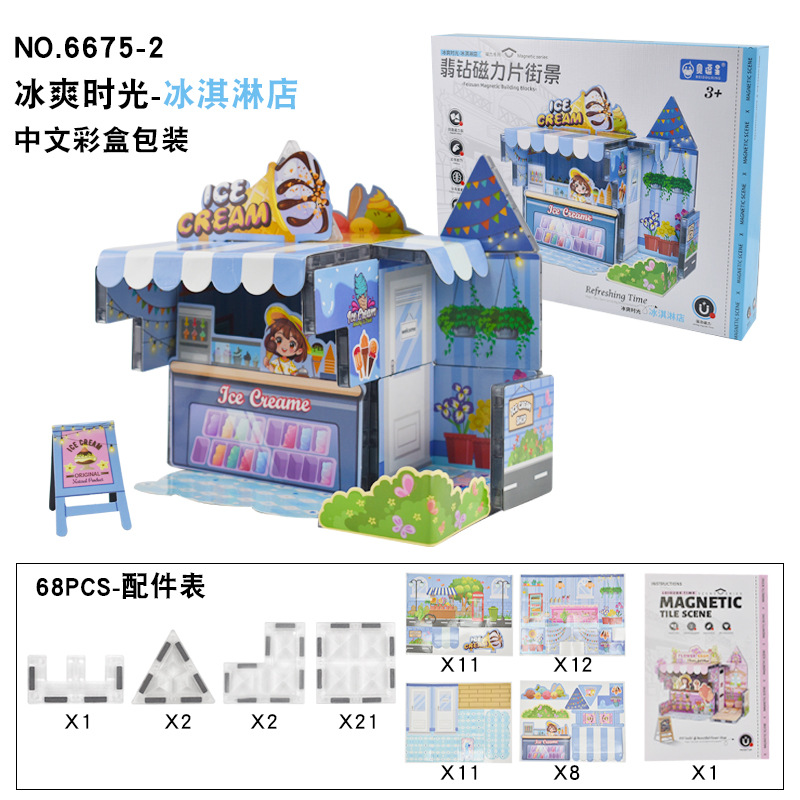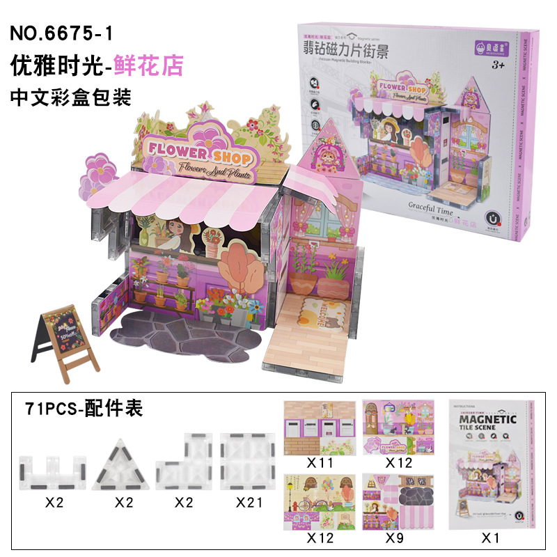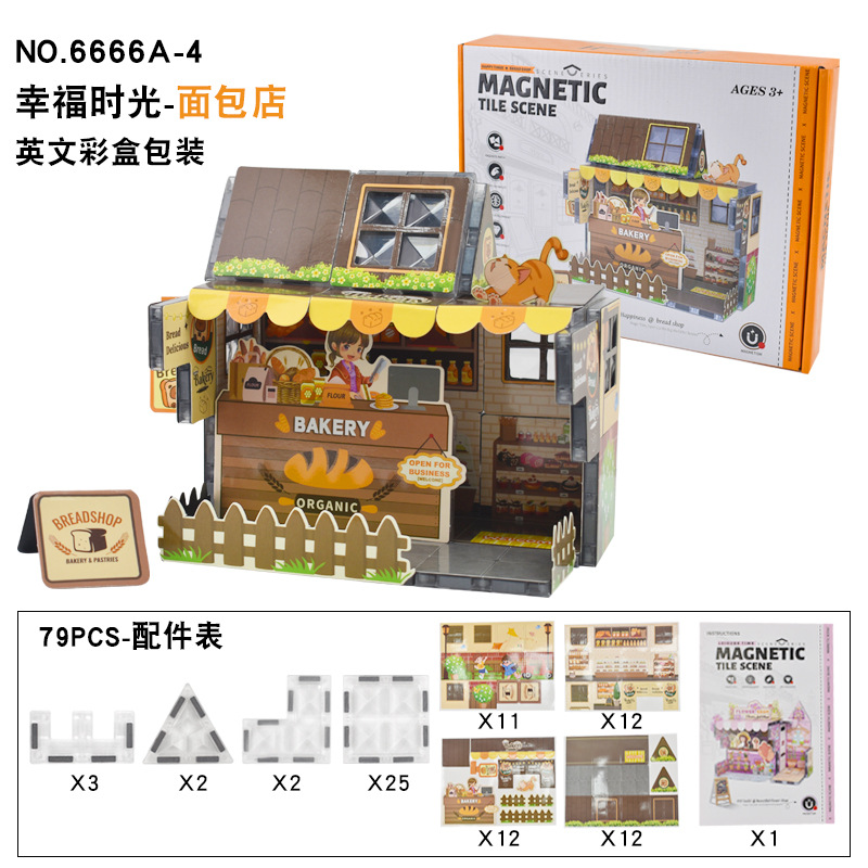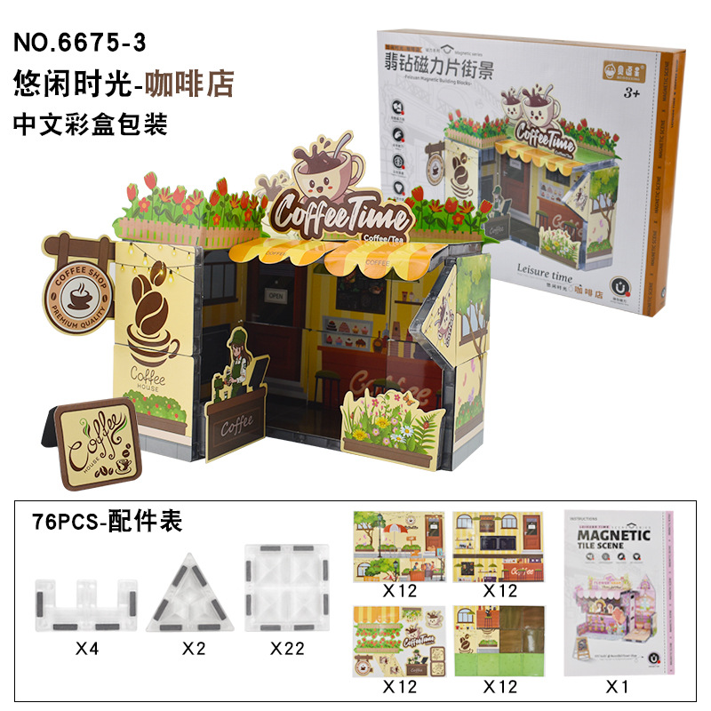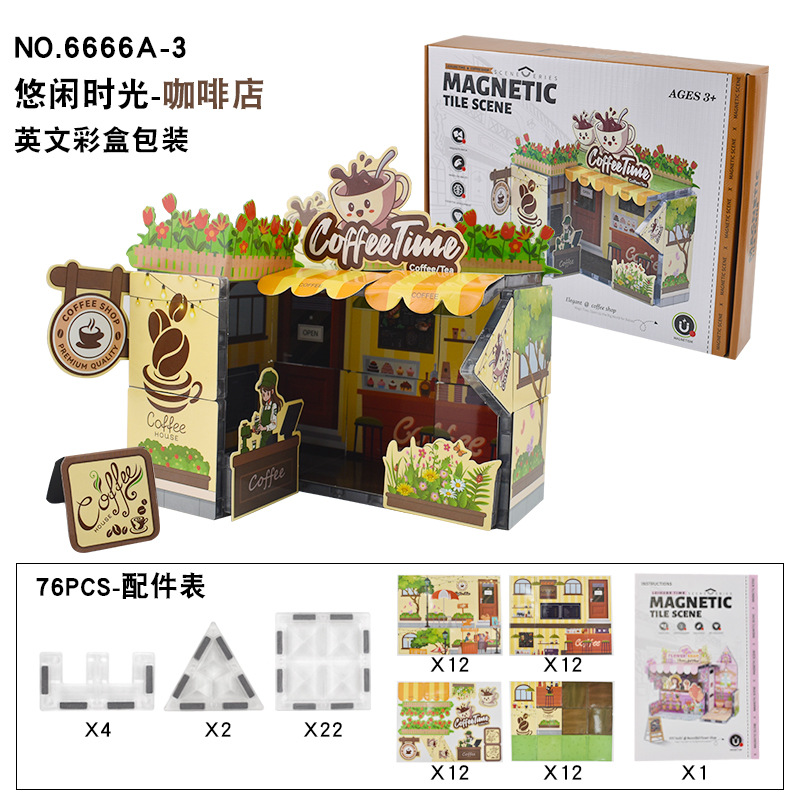 3D 자기 시트 입체 퍼즐 빌딩 블록 커피 장면 수제 DIY 조립 집 어린이 조기 교육 교육 장난감스토어 가기