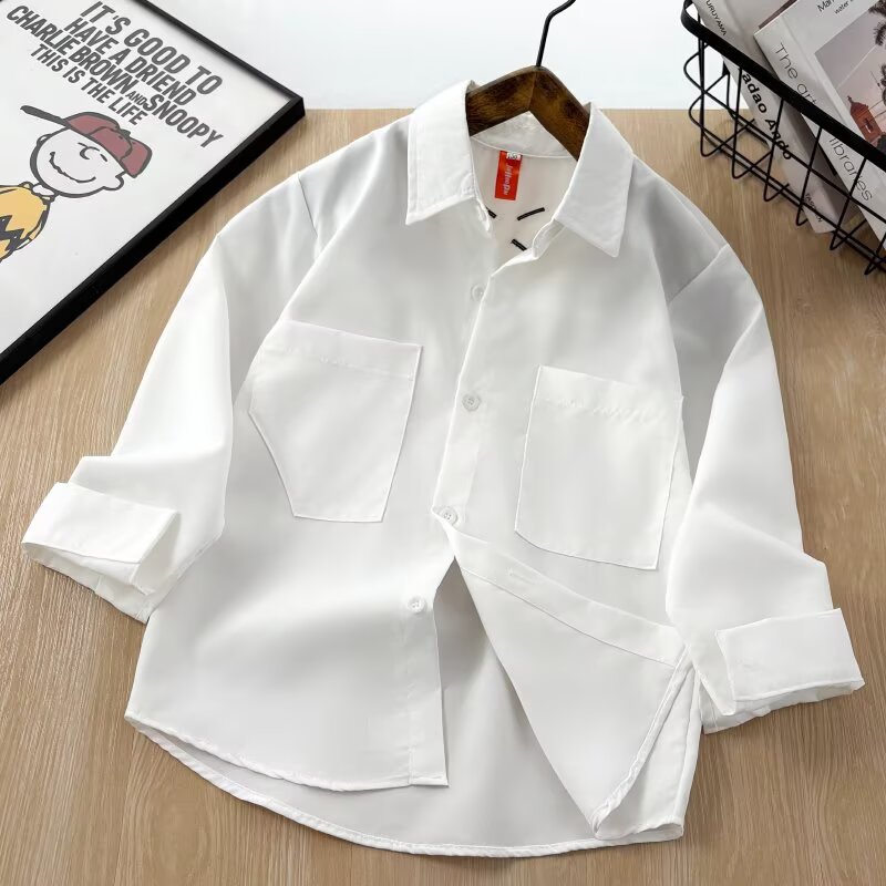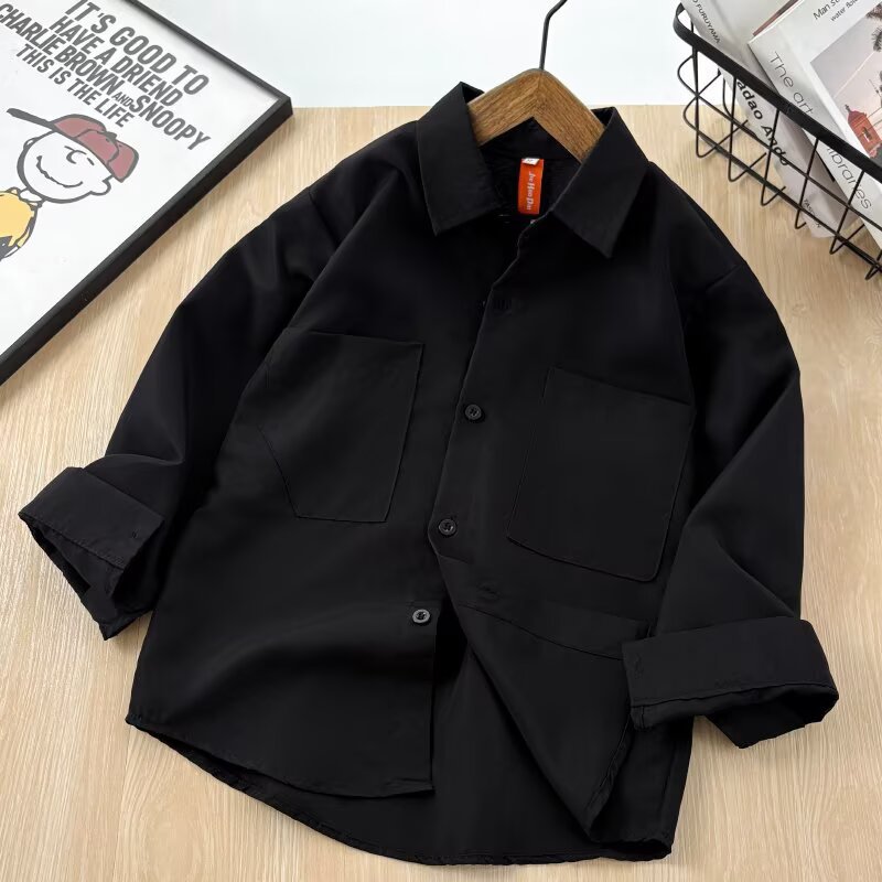 소년 봄, 가을 2025 봄 새 소년 솔리드 컬러 셔츠 한국 스타일 재킷 어린이 유행상의