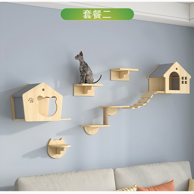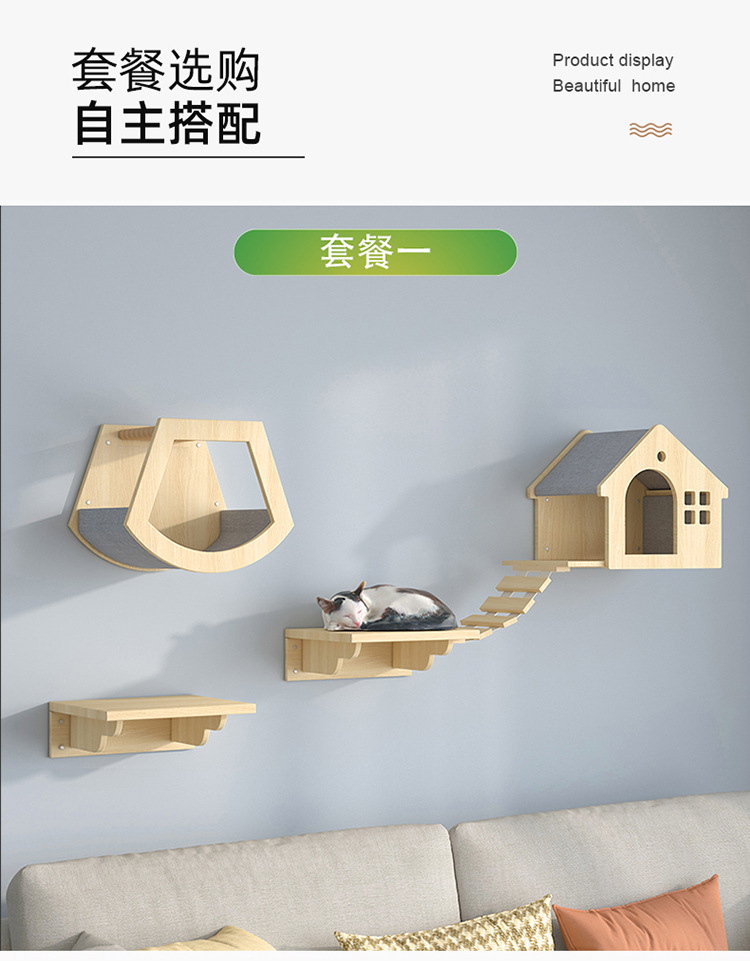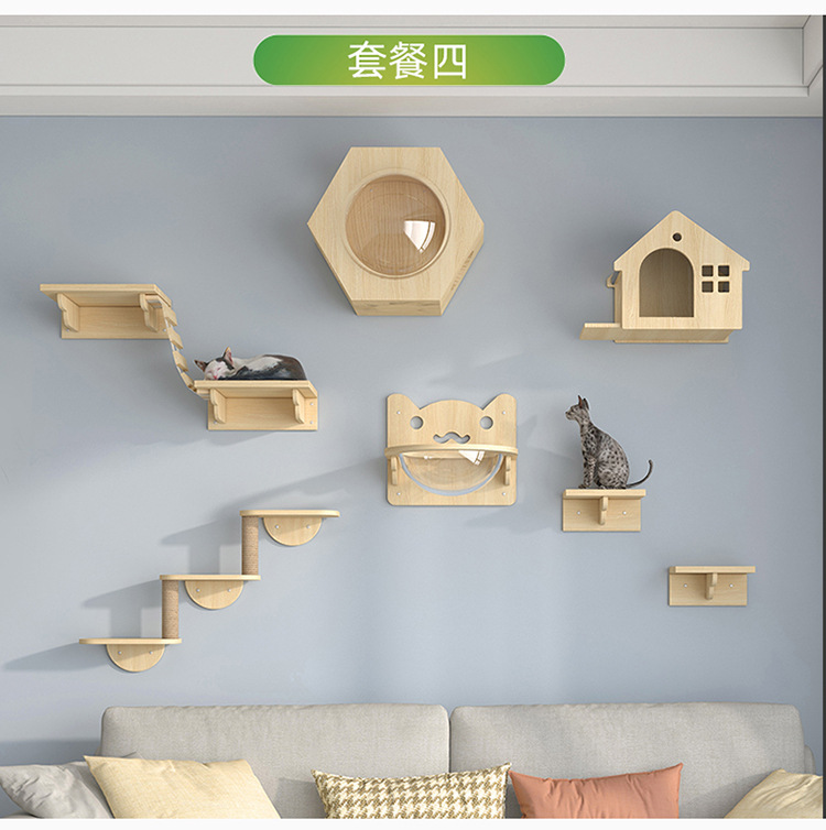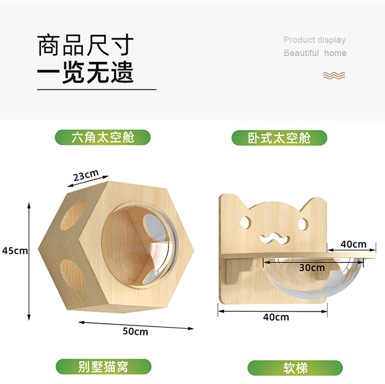고양이 클라이밍 프레임 벽걸이형 원목 벽걸이형 고양이 프레임 고양이 둥지 고양이 트리 일체형 벽걸이형 우주 캡슐 고양이 점프 플랫폼 스크래치 컬럼스토어 가기