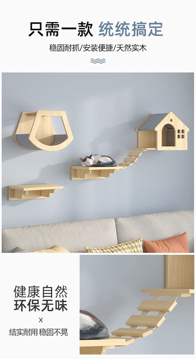 고양이 클라이밍 프레임 벽걸이형 원목 벽걸이형 고양이 프레임 고양이 둥지 고양이 트리 일체형 벽걸이형 우주 캡슐 고양이 점프 플랫폼 스크래치 컬럼