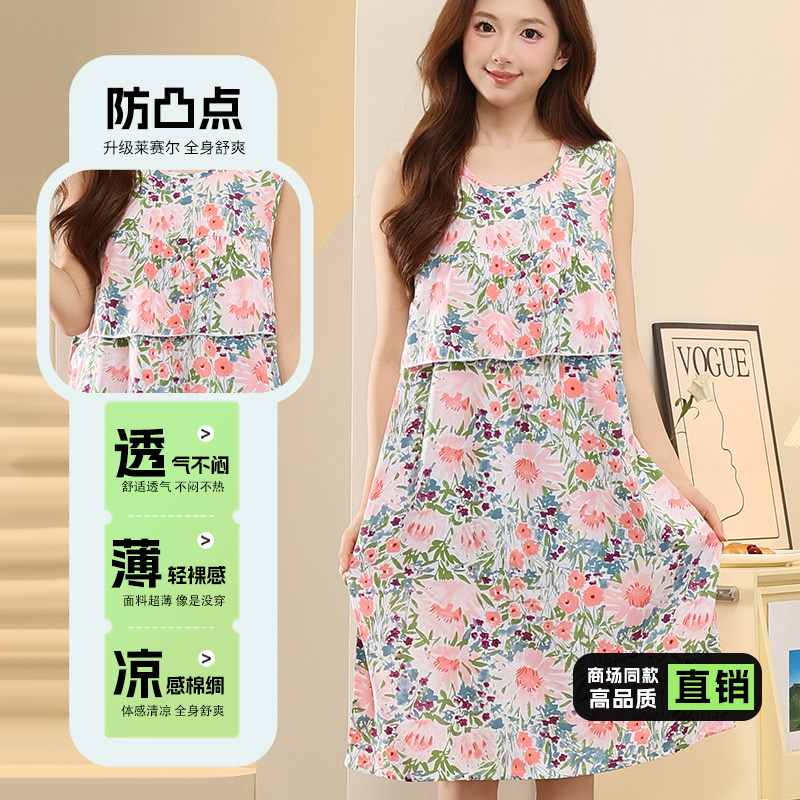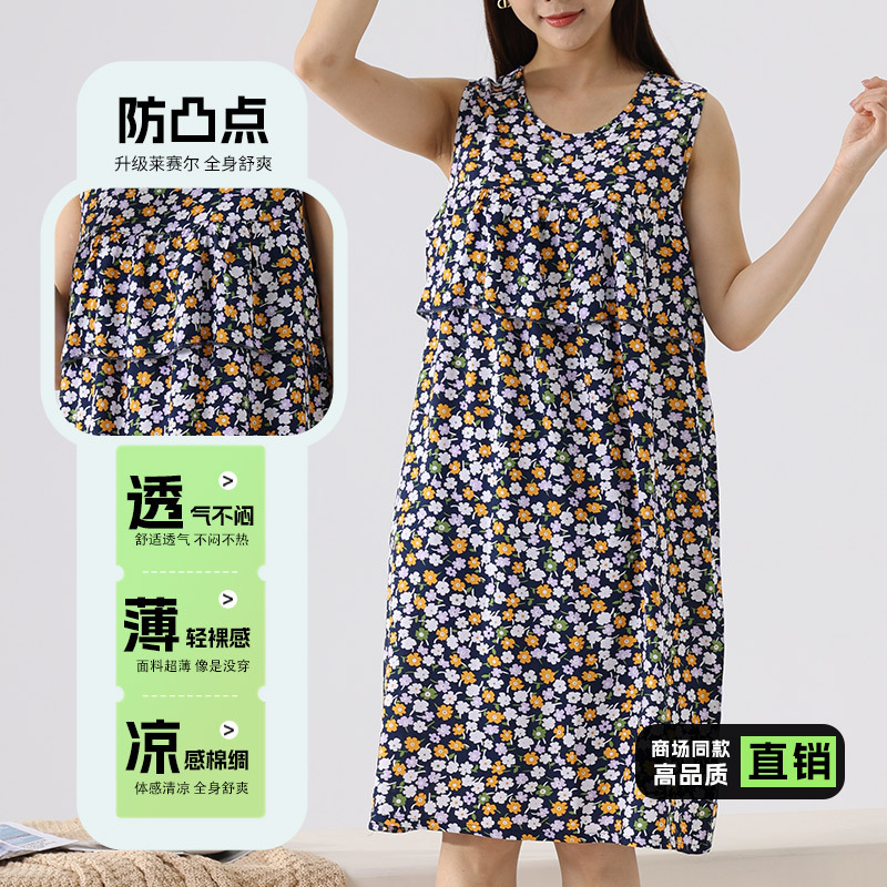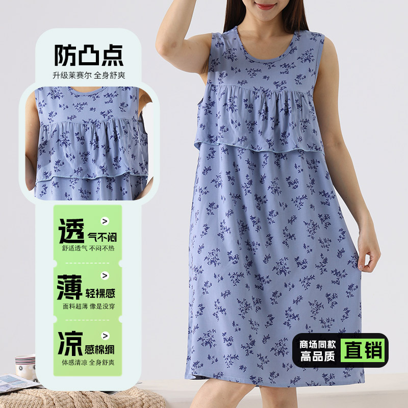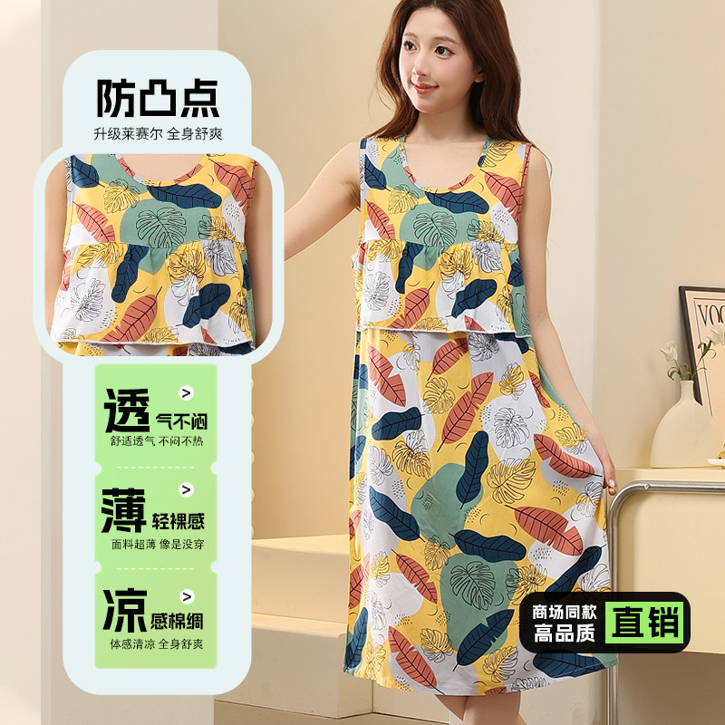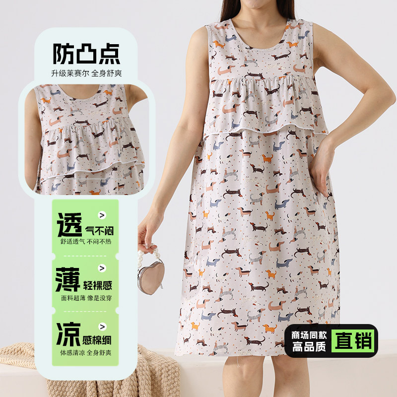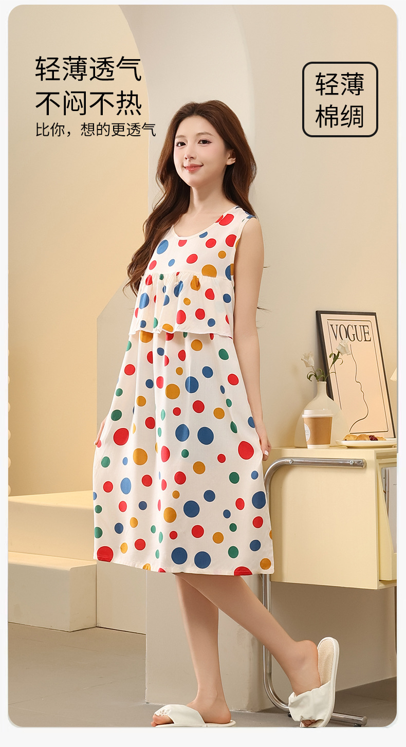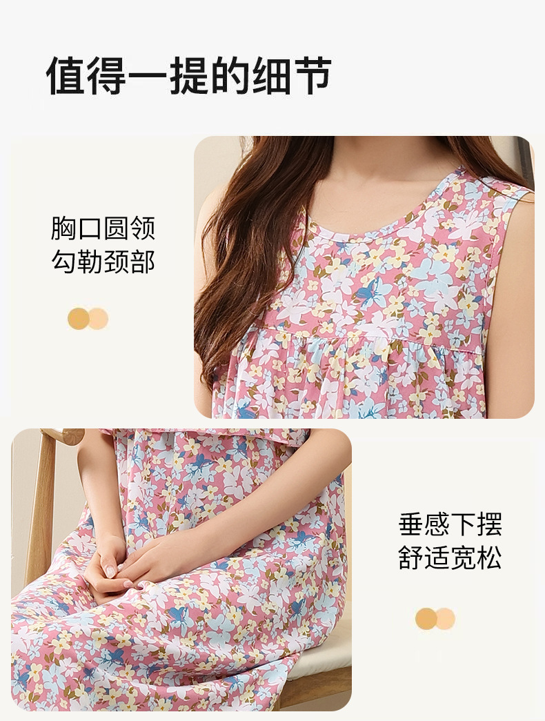 여성을위한 안티 범프 코튼 실크 잠옷 코튼 실크 민소매 드레스 여름 느슨한 대형 홈 의류 인공 코튼 잠옷