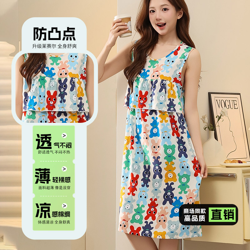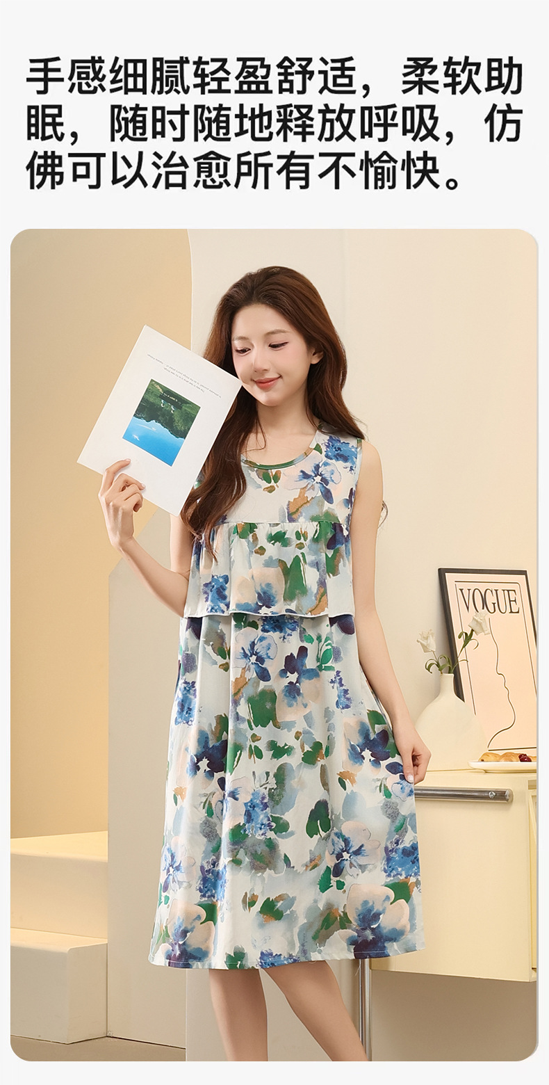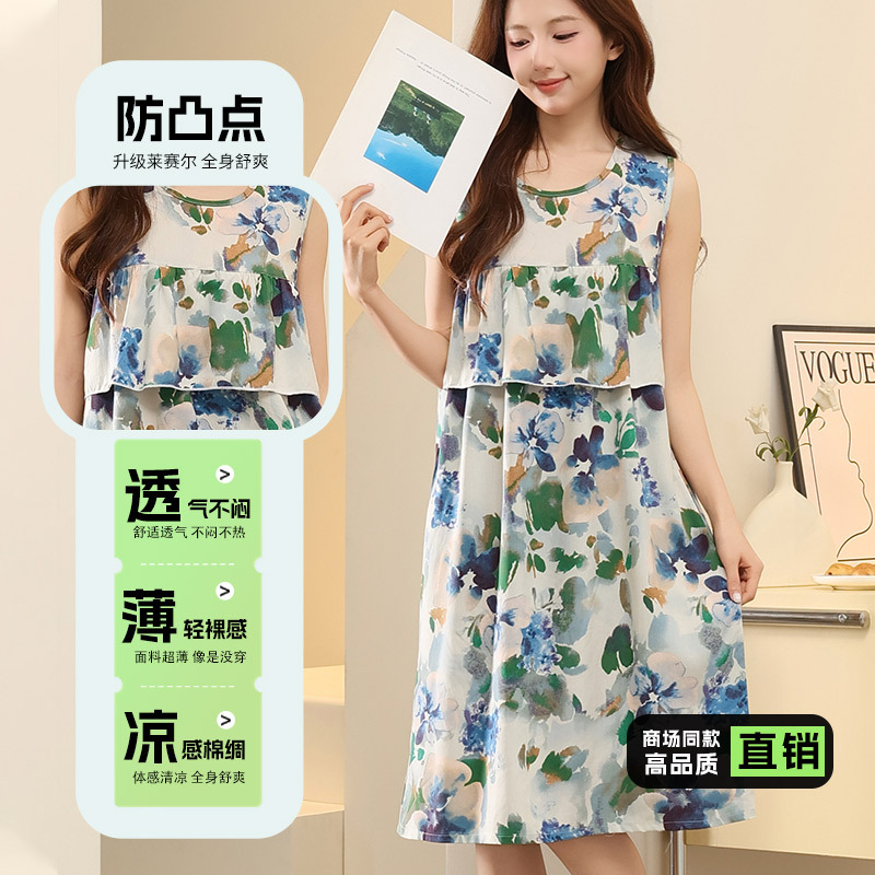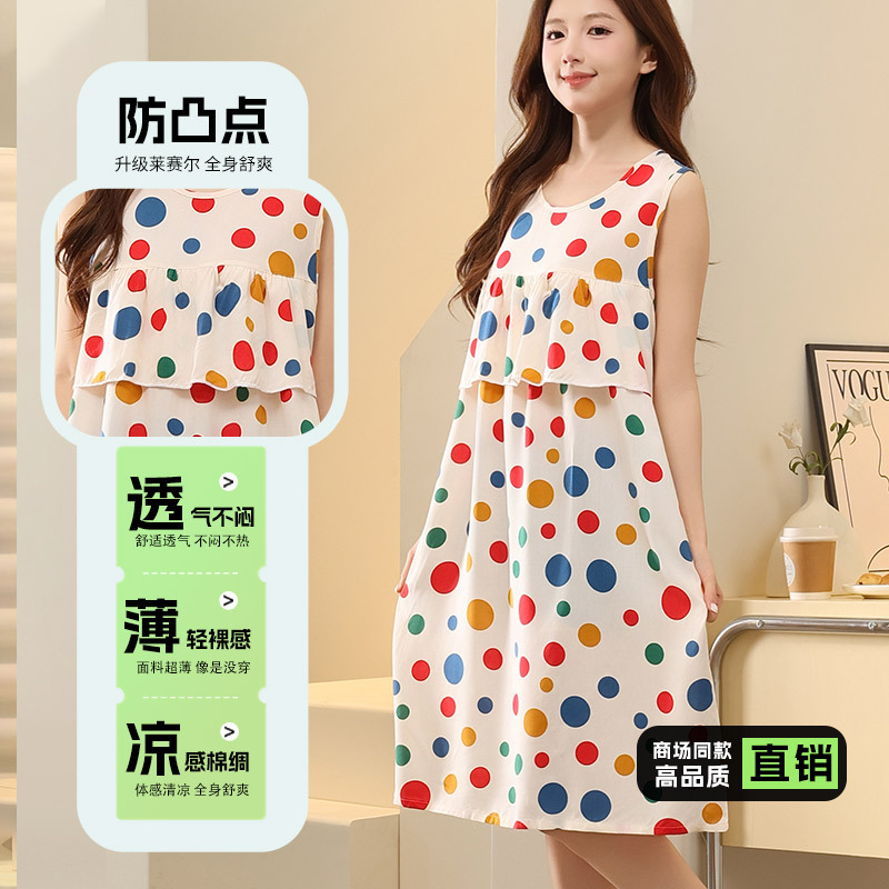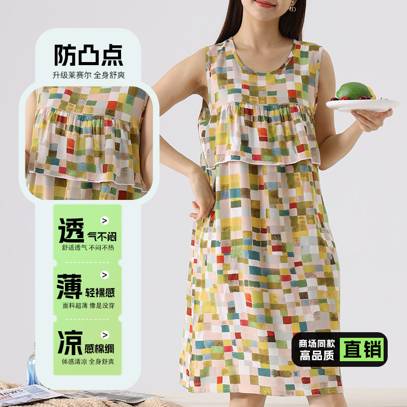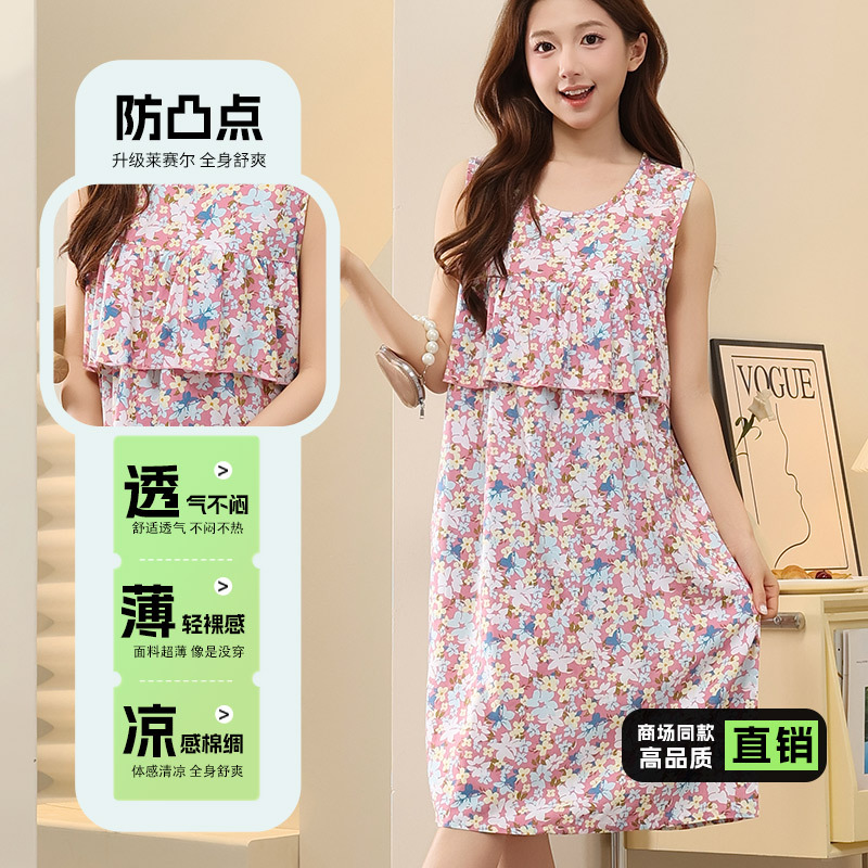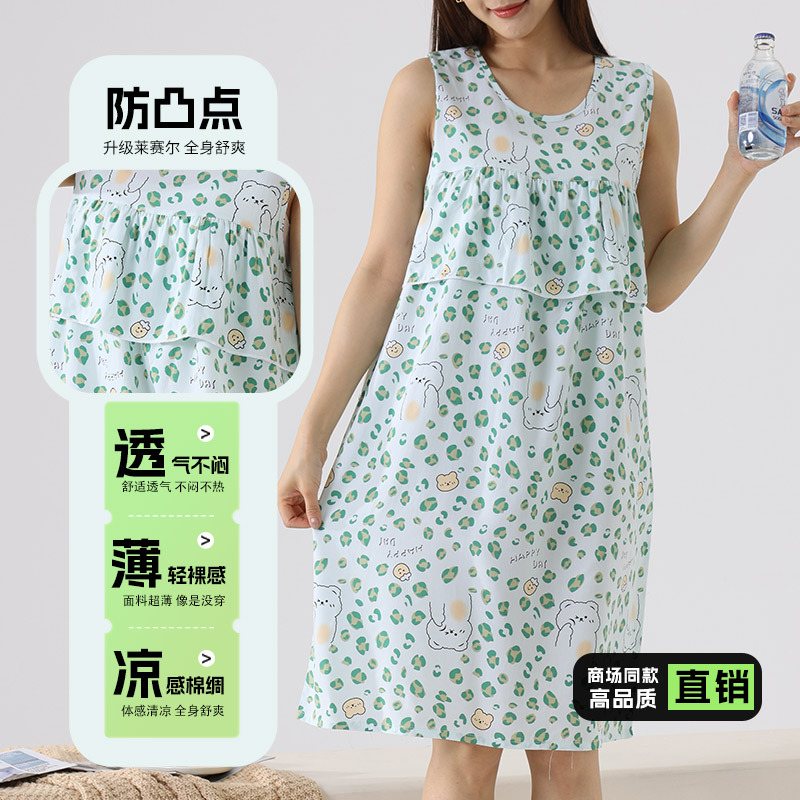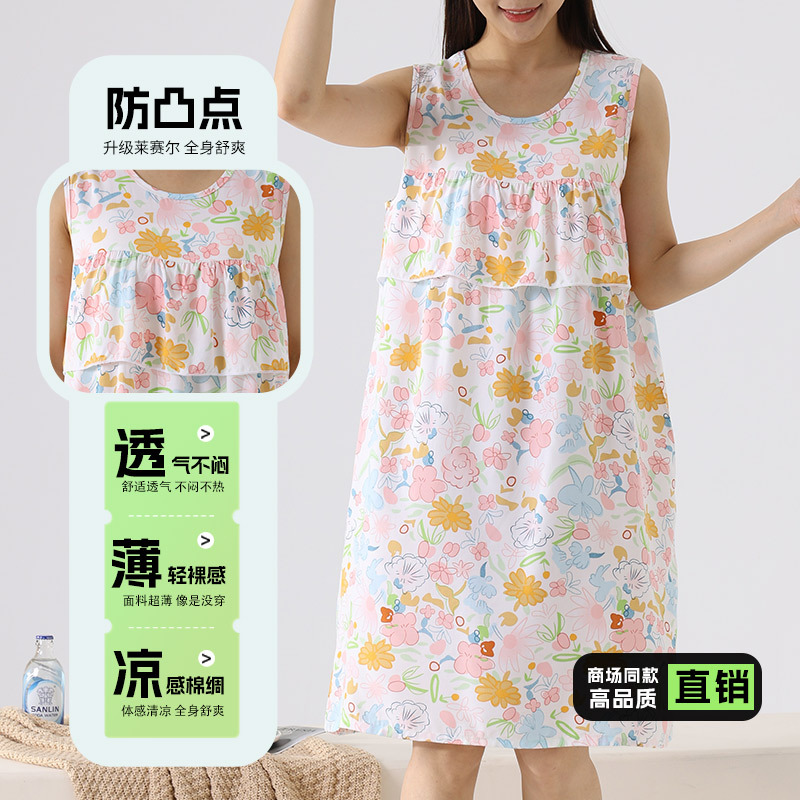여성을위한 안티 범프 코튼 실크 잠옷 코튼 실크 민소매 드레스 여름 느슨한 대형 홈 의류 인공 코튼 잠옷