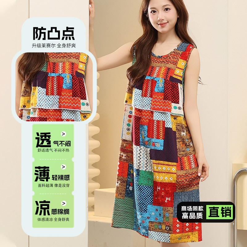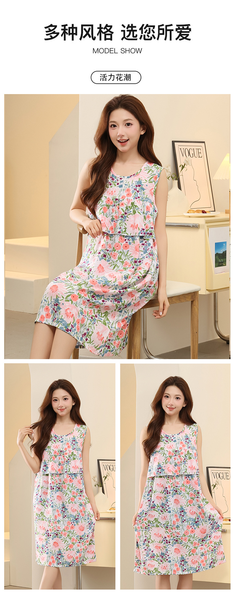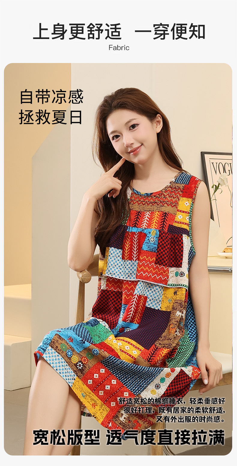 여성을위한 안티 범프 코튼 실크 잠옷 코튼 실크 민소매 드레스 여름 느슨한 대형 홈 의류 인공 코튼 잠옷스토어 가기