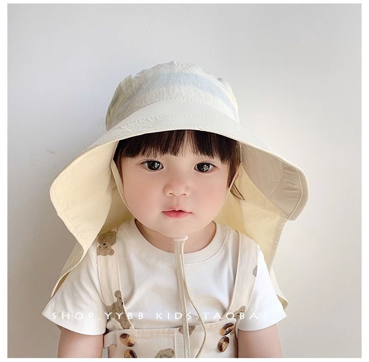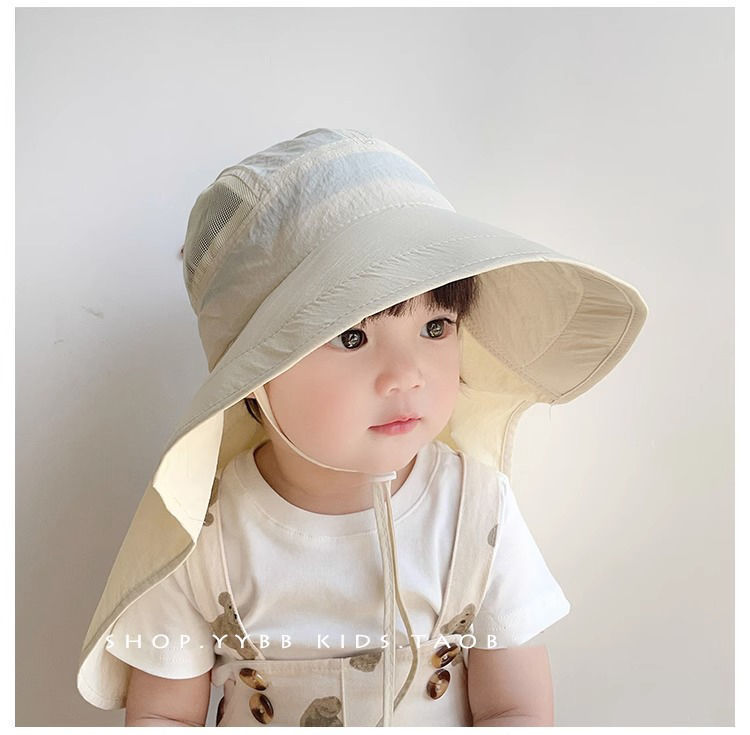 여름 속건성 얇은 어린이용 태양 모자, 봄과 가을 여행, 남성과 여성의 아기, 큰 챙, 목 보호, 자외선 차단제, 어부 모자스토어 가기