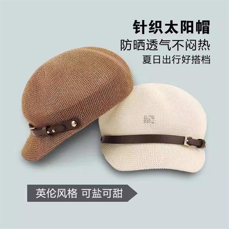 한국판 원사 베레모 여성용 여름 통기성 다용도 자외선 차단 모자 여행용 레트로 팔각모자 화가 모자