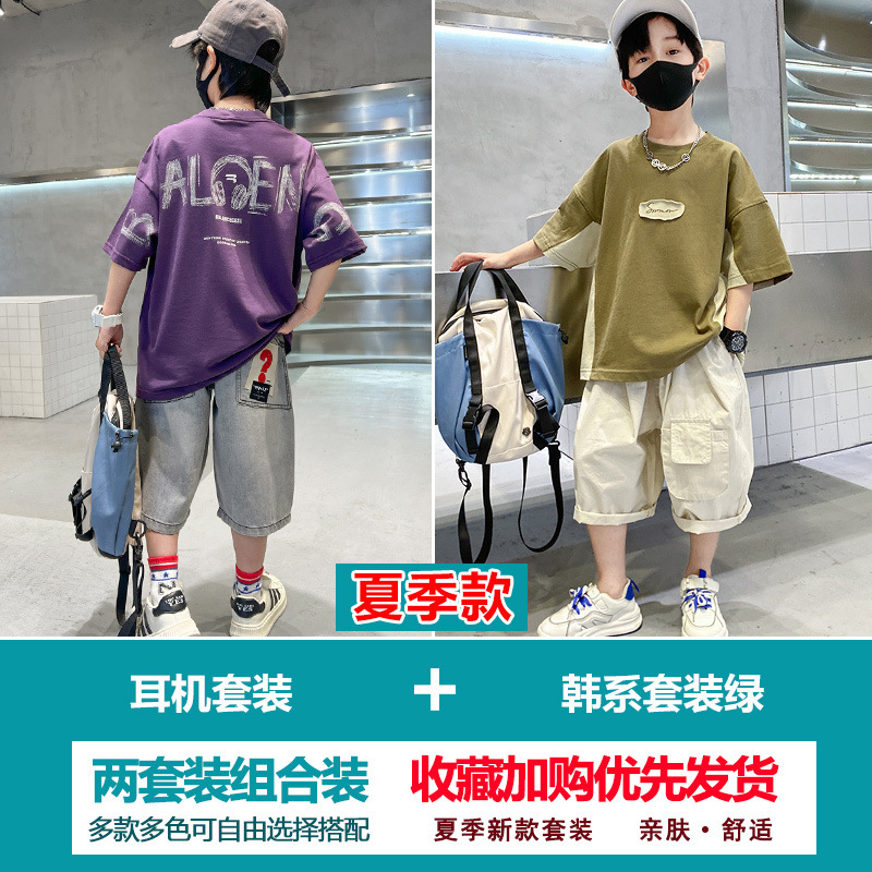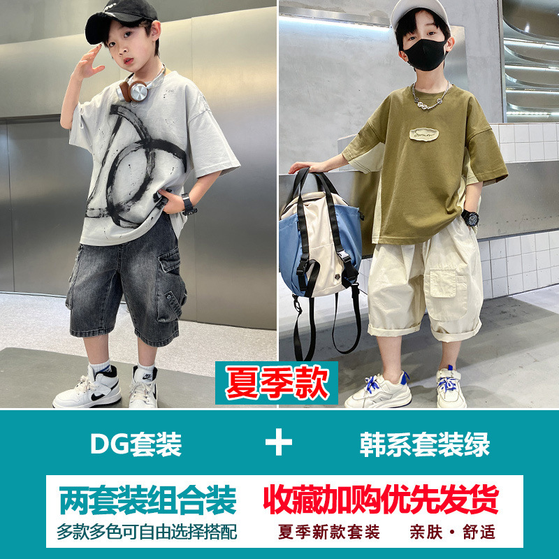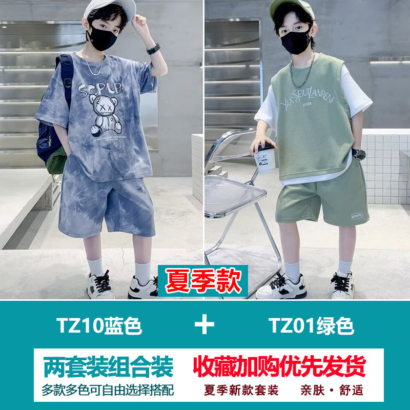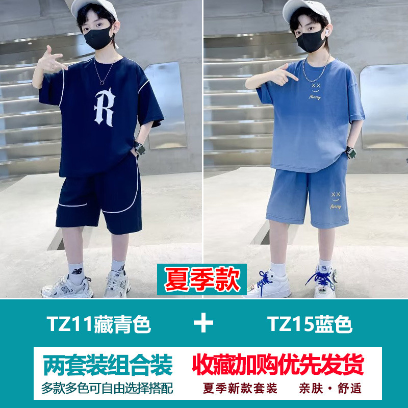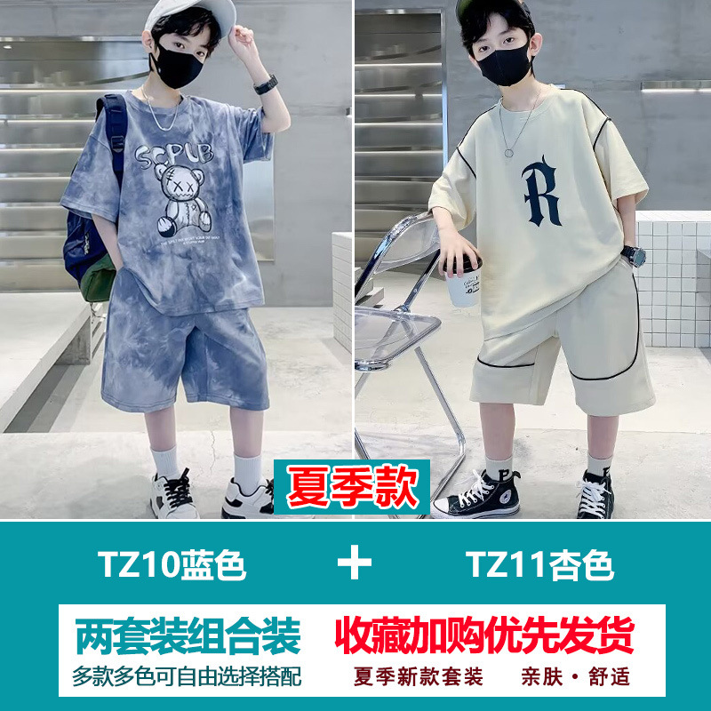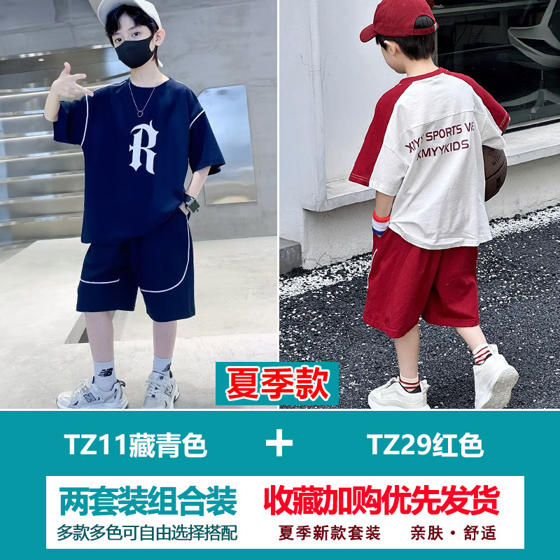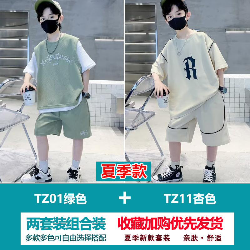 소년 여름 정장 2025 새로운 스타일 소년 중대형 어린이 얇고 멋진 반팔 반바지 여름 스포츠 투피스 세트