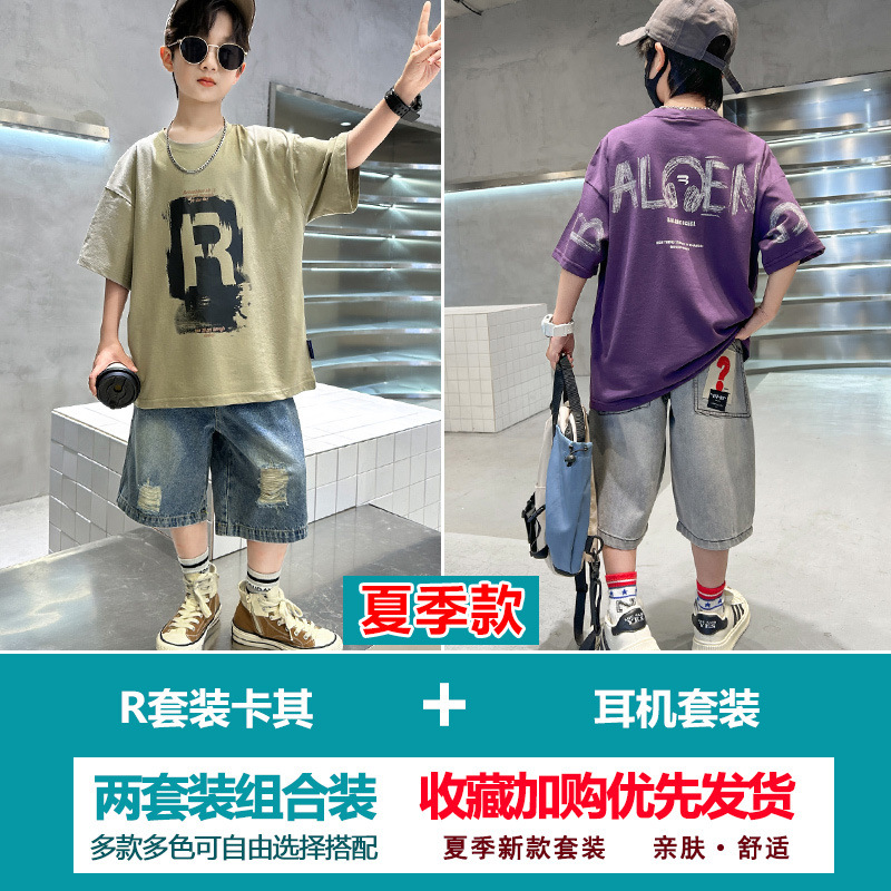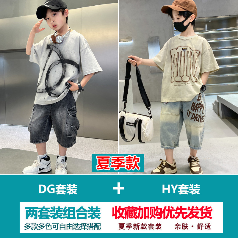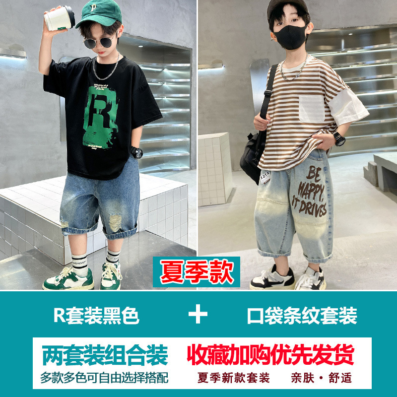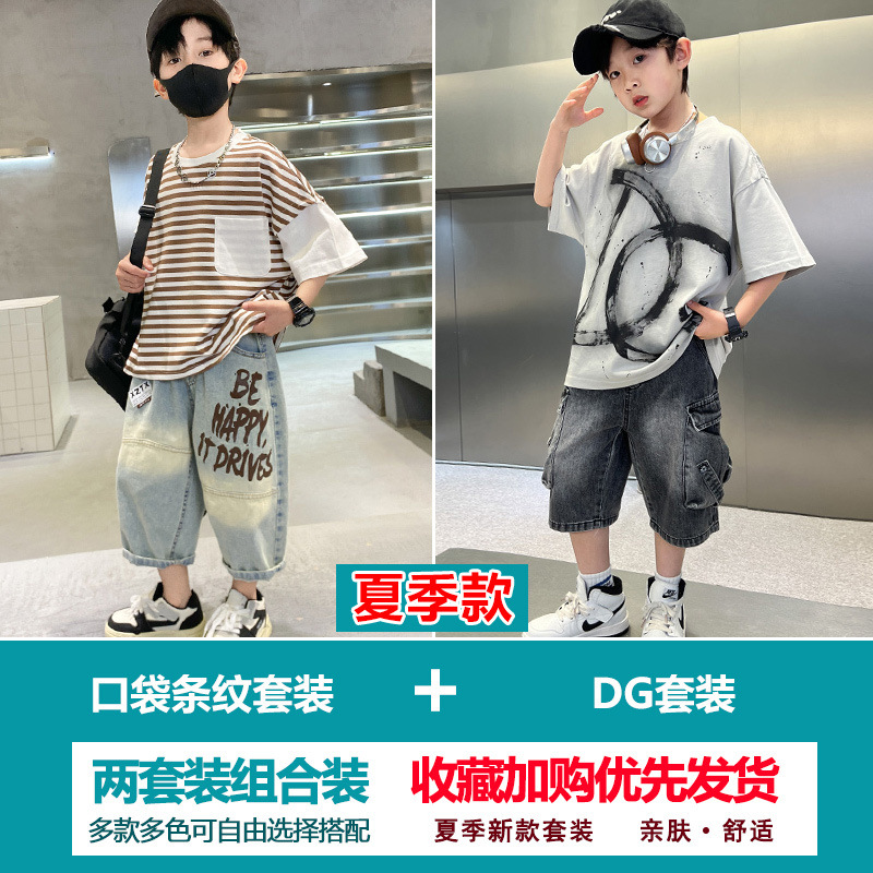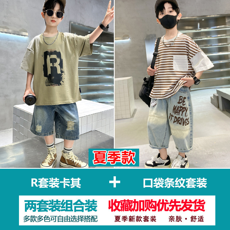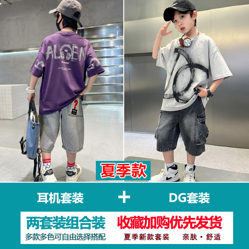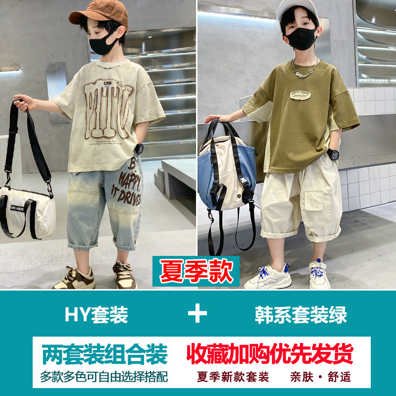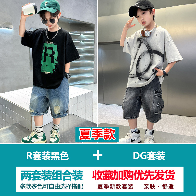 소년 여름 정장 2025 새로운 스타일 소년 중대형 어린이 얇고 멋진 반팔 반바지 여름 스포츠 투피스 세트