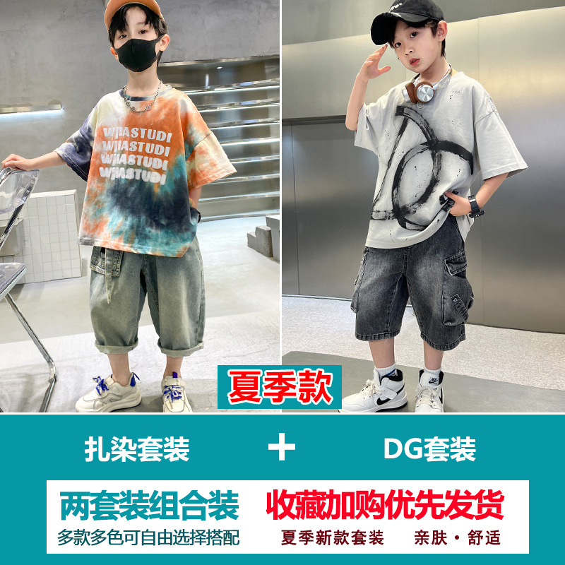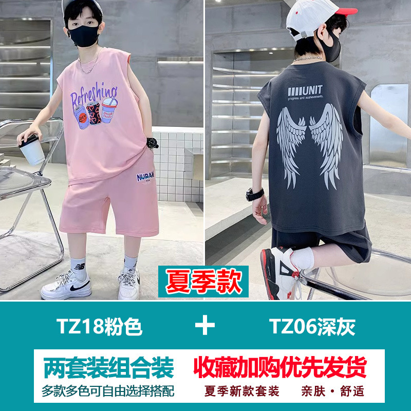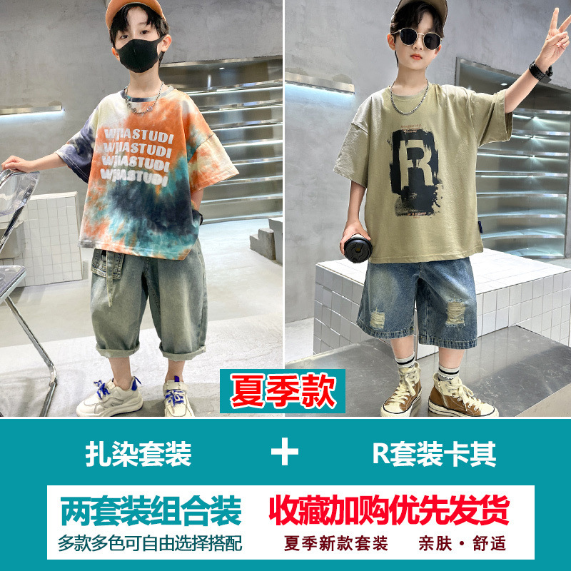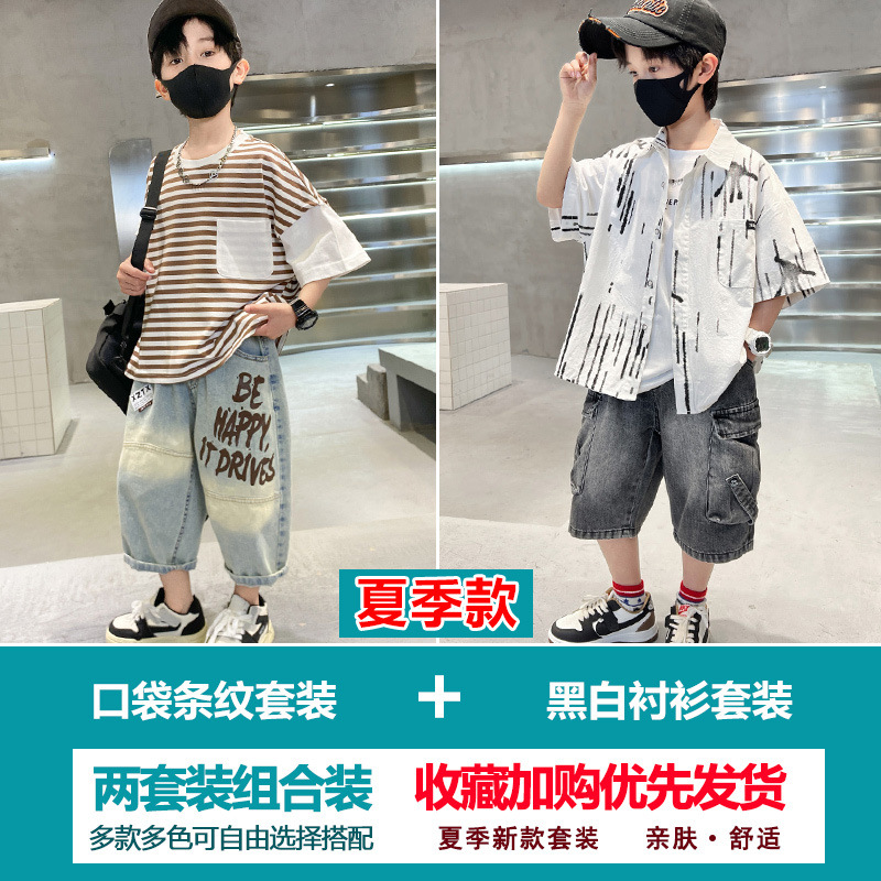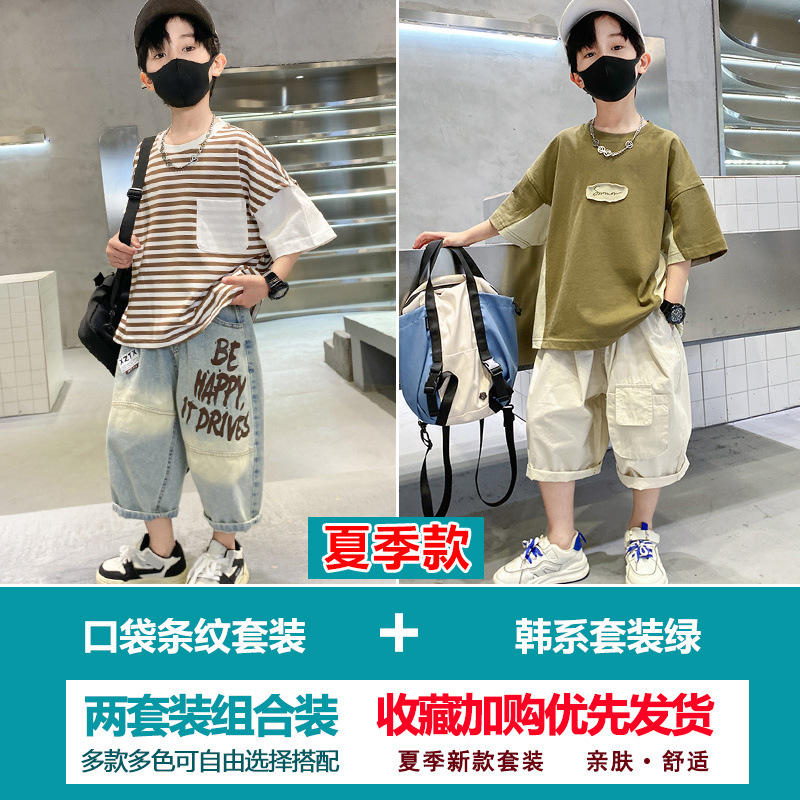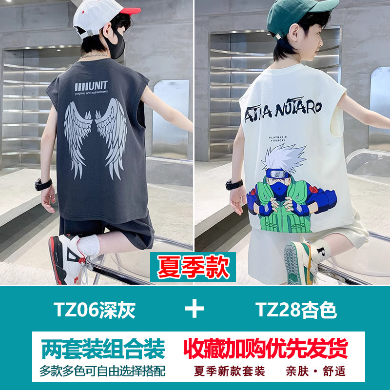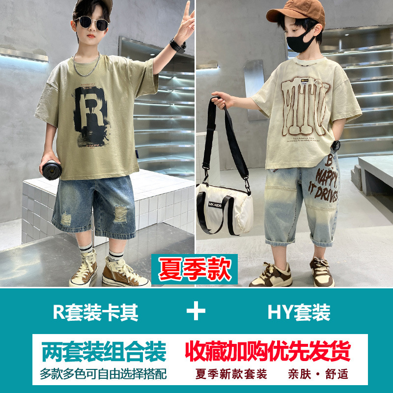 소년 여름 정장 2025 새로운 스타일 소년 중대형 어린이 얇고 멋진 반팔 반바지 여름 스포츠 투피스 세트