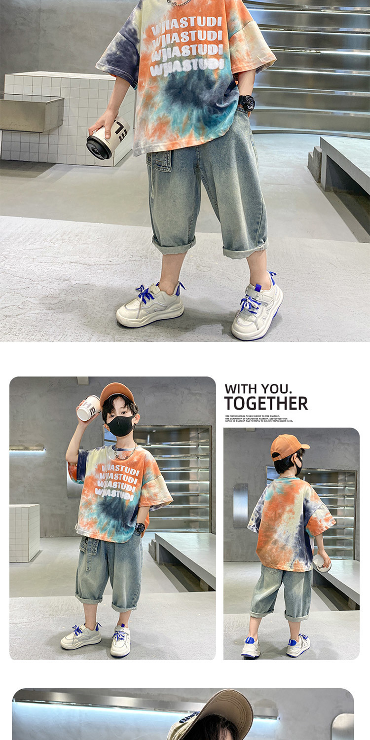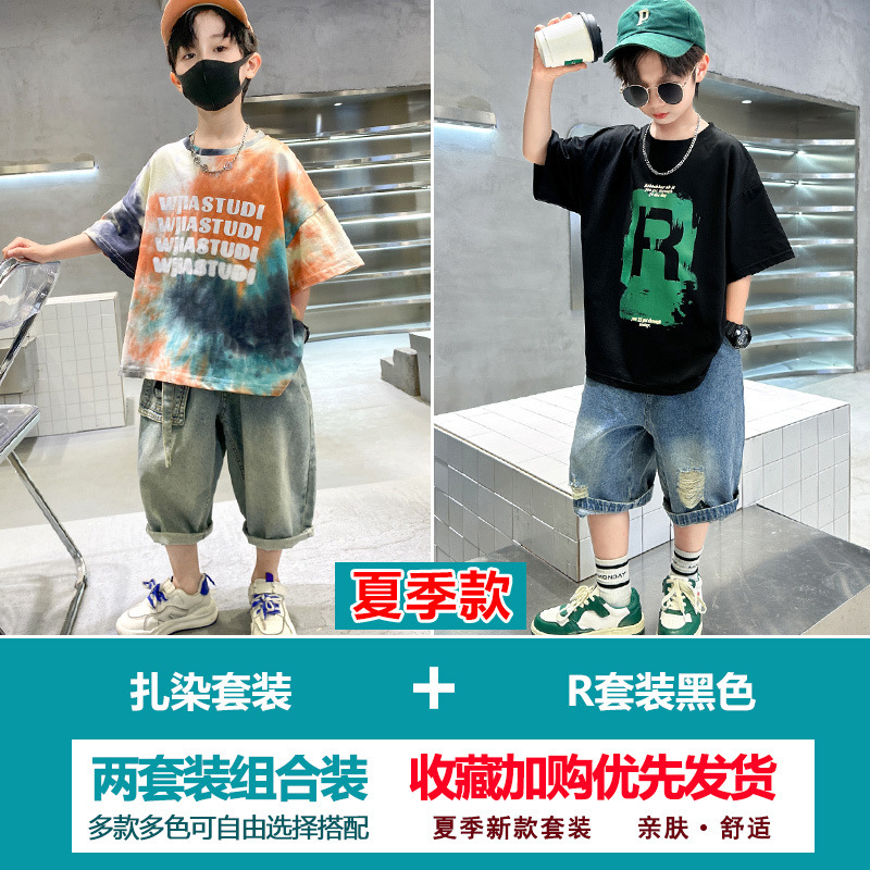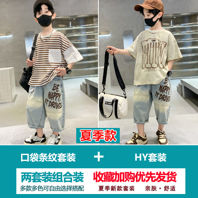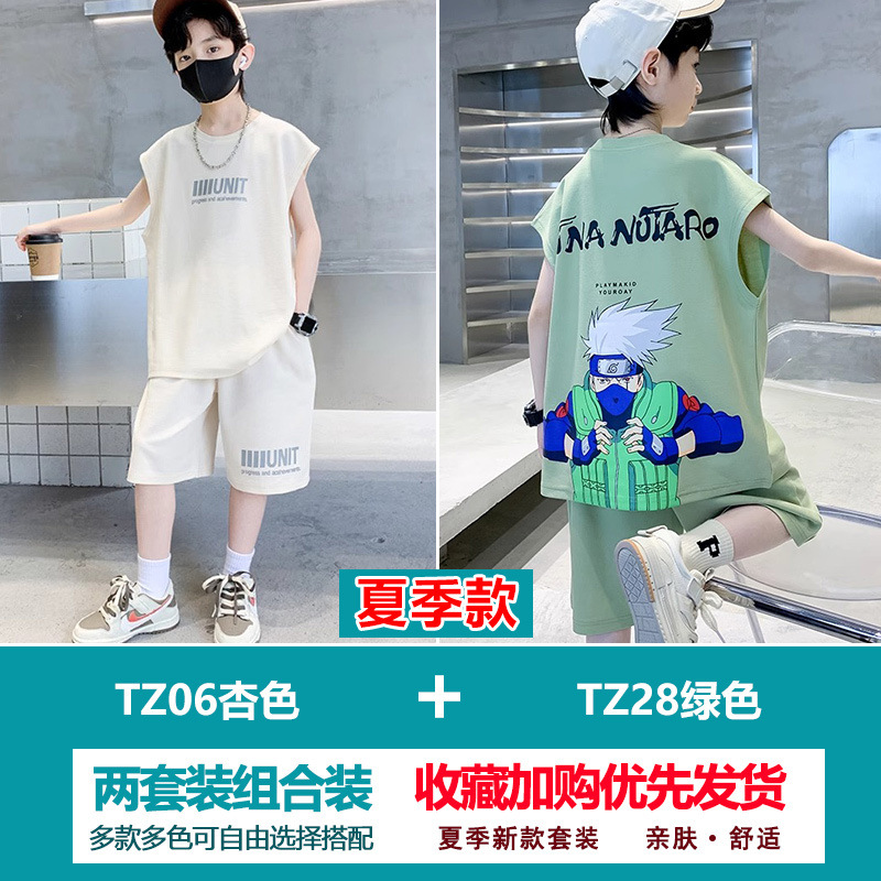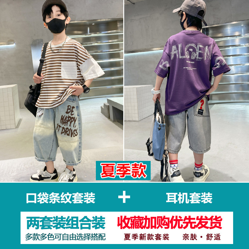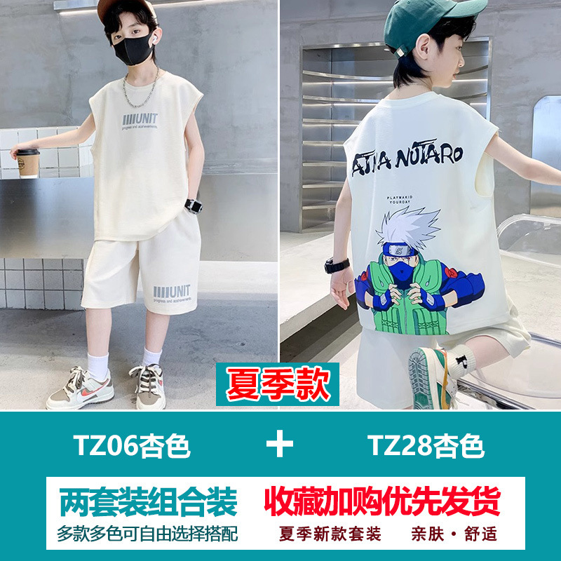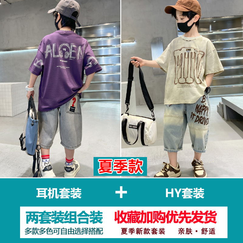 소년 여름 정장 2025 새로운 스타일 소년 중대형 어린이 얇고 멋진 반팔 반바지 여름 스포츠 투피스 세트
