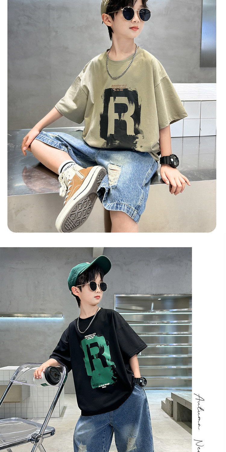 소년 여름 정장 2025 새로운 스타일 소년 중대형 어린이 얇고 멋진 반팔 반바지 여름 스포츠 투피스 세트스토어 가기