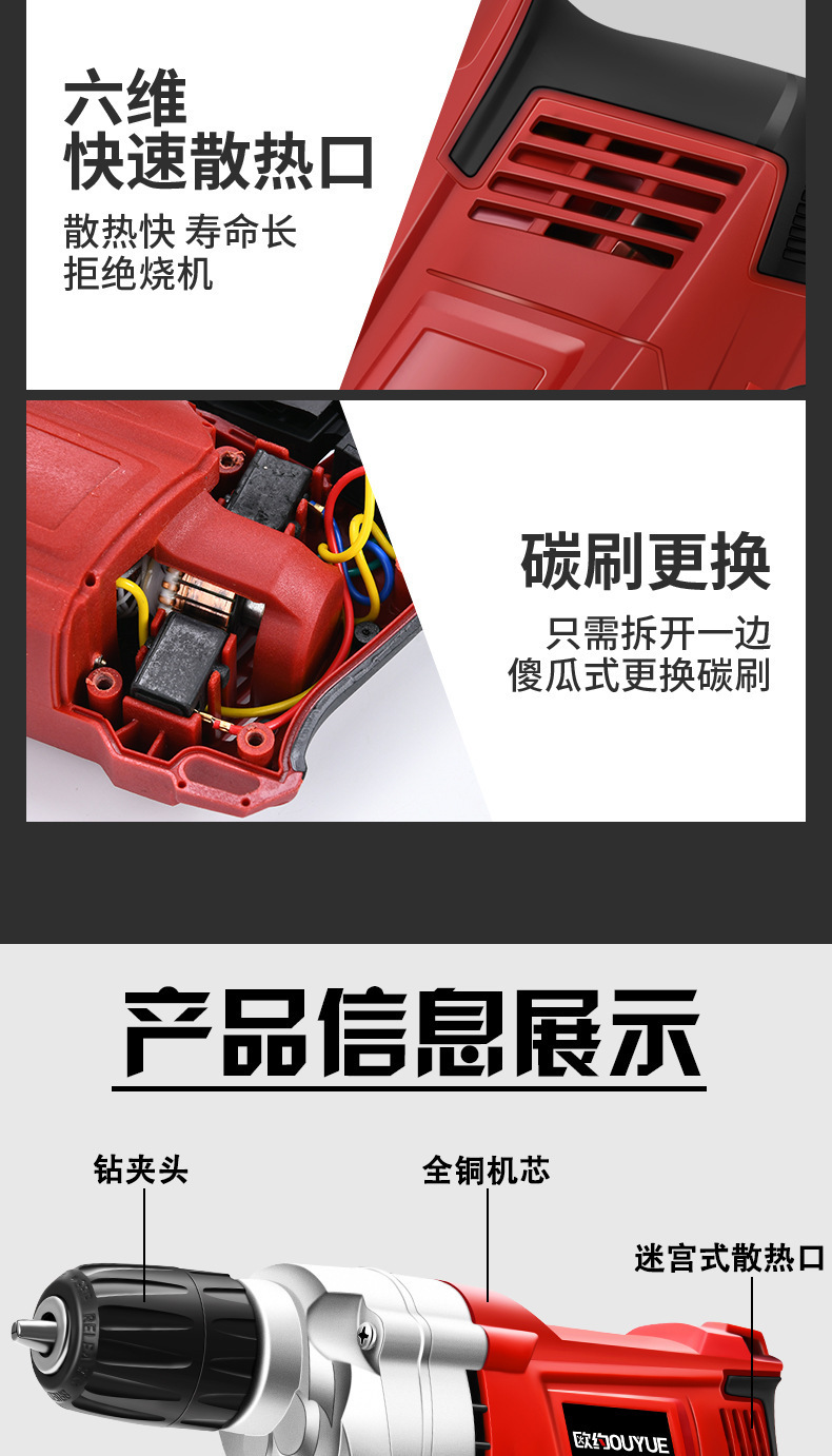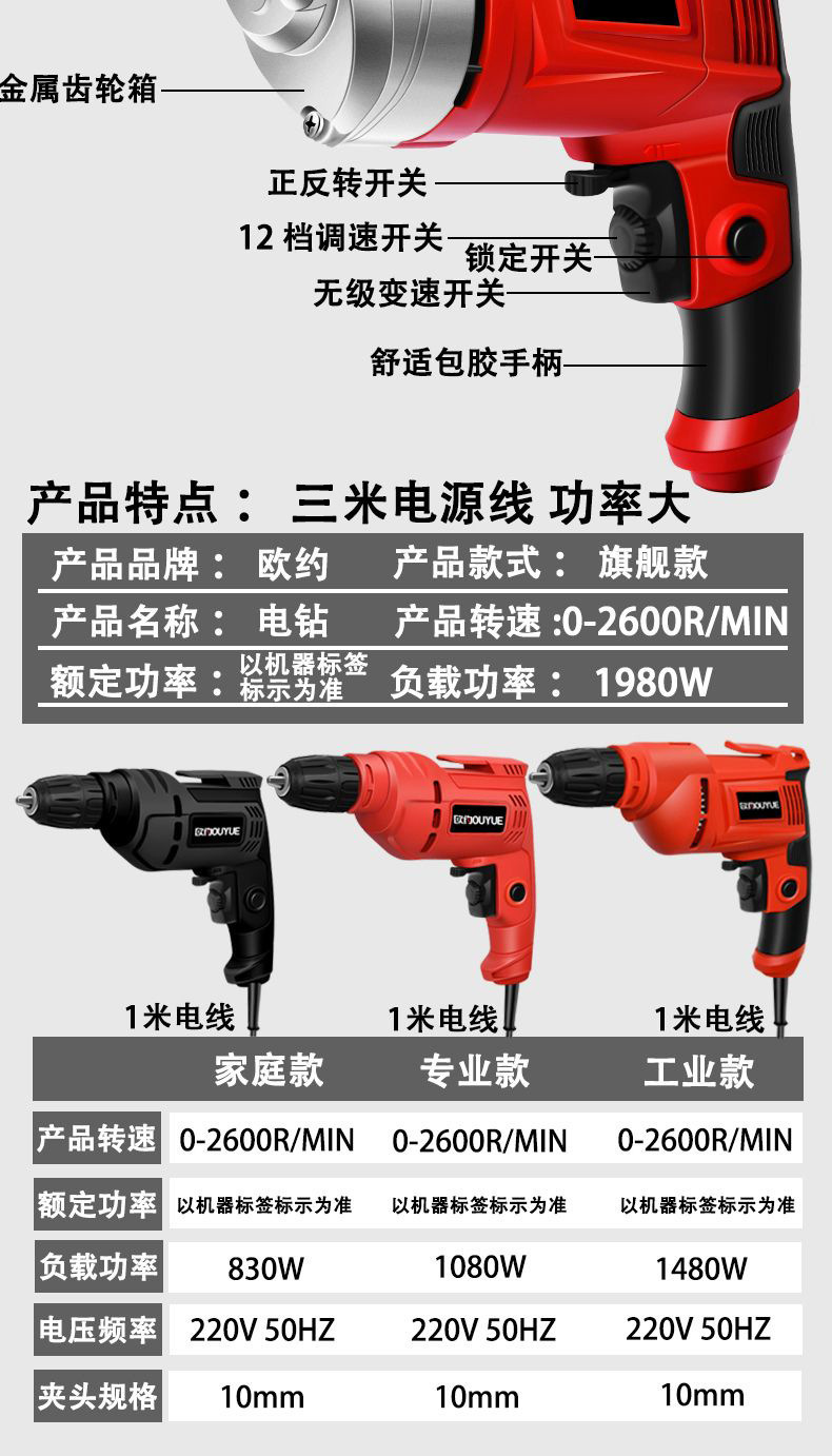 정방향 및 역방향 속도 조절 기능을 갖춘 다기능 핸드 드릴, 산업용 등급 고출력 가정용 권총 드릴, 전기 드라이버