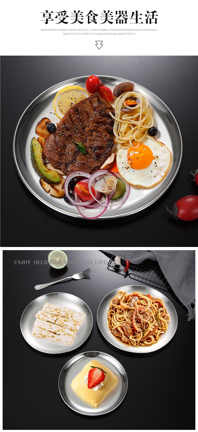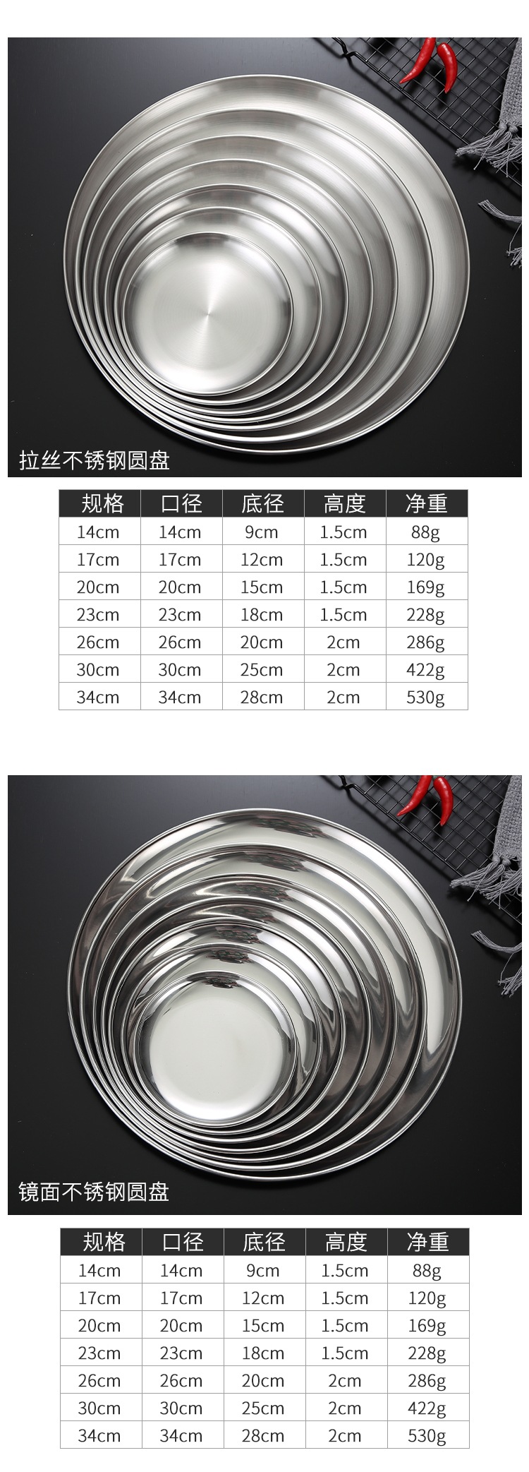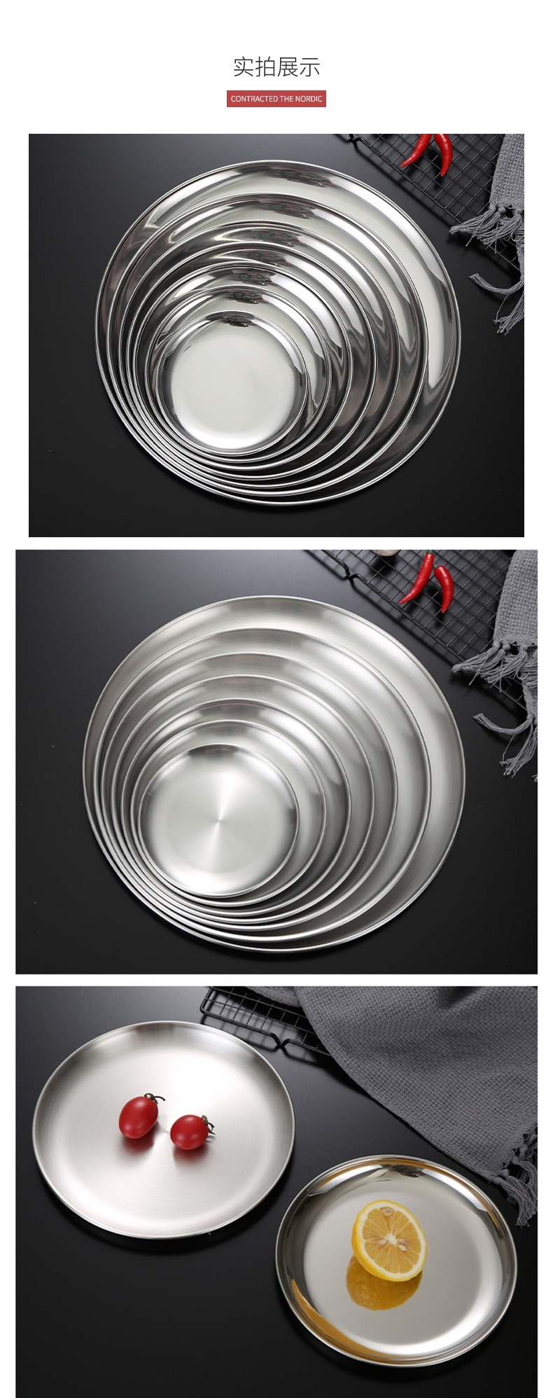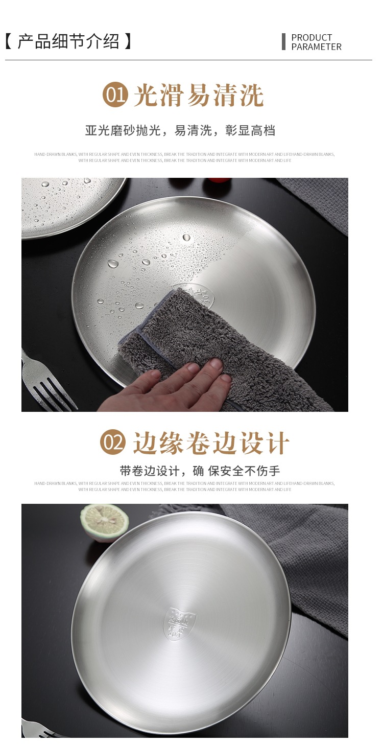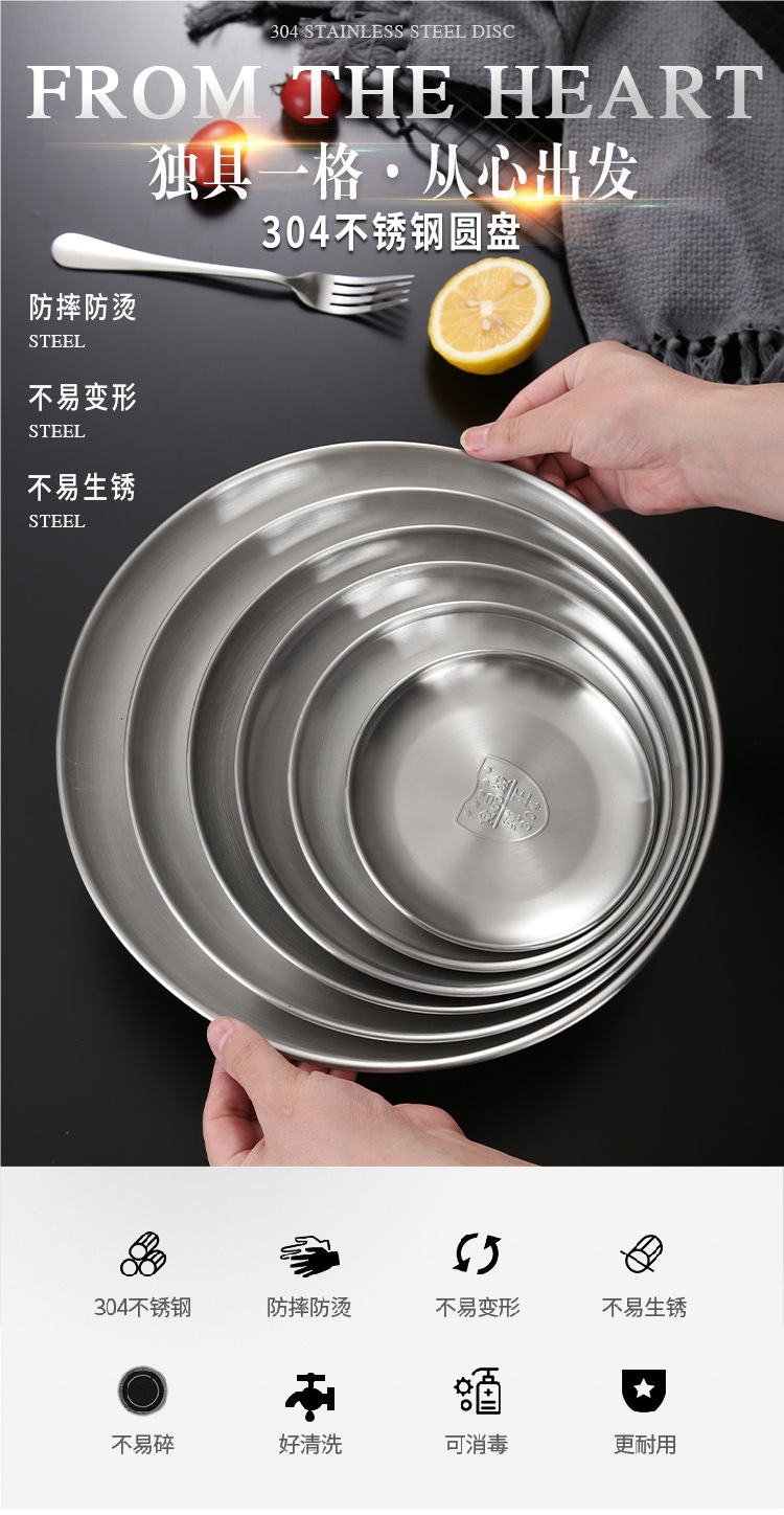 한국 스테인레스 스틸 원형 접시 황금 트레이 카페 과일 접시 홈 레트로 바베큐 접시 얕은 접시 뱃살 접시