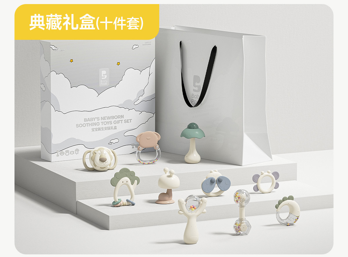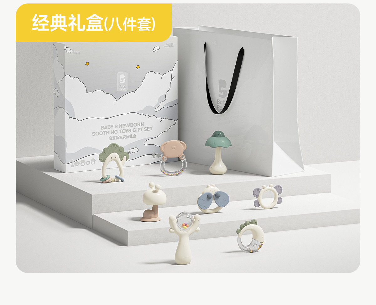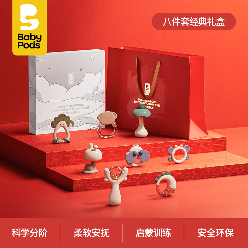 Babypods 핸드 벨 신생아 선물 상자 아기 진정 장난감 아기 조기 교육 0-1 세 선물스토어 가기