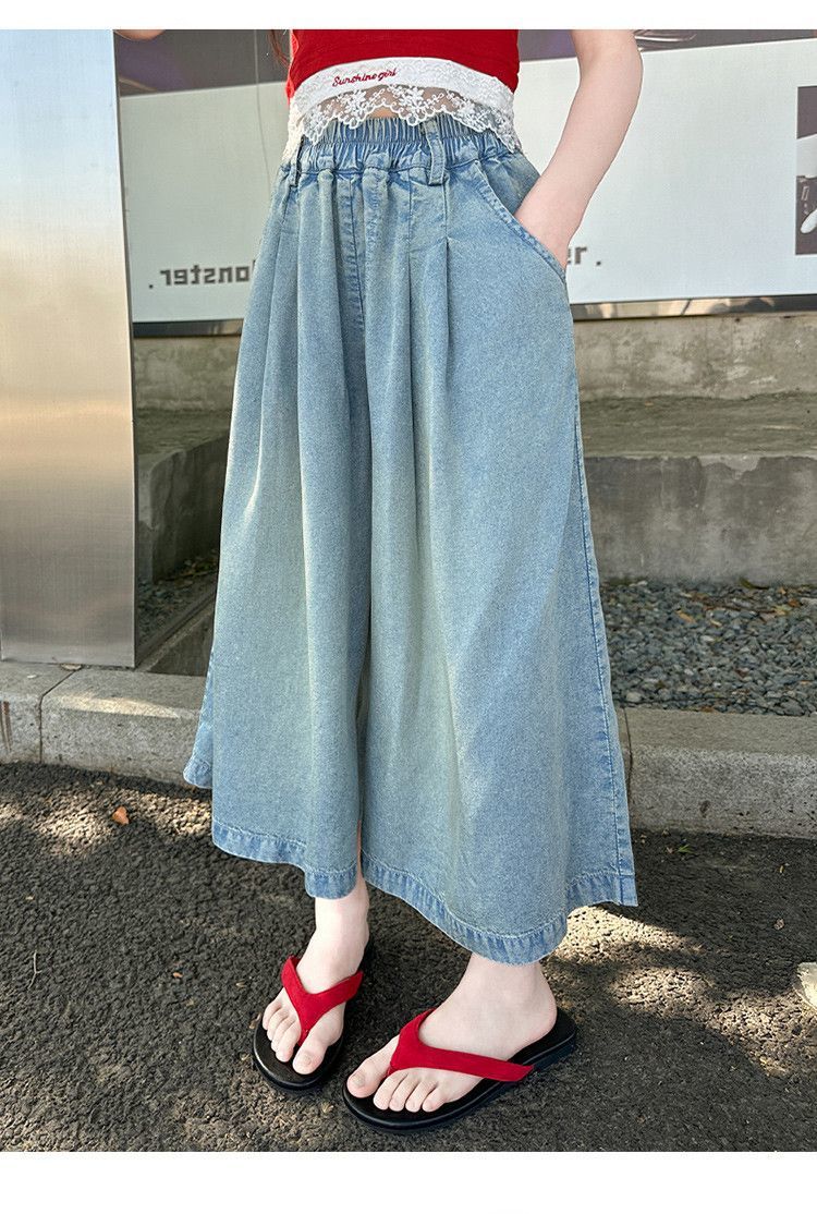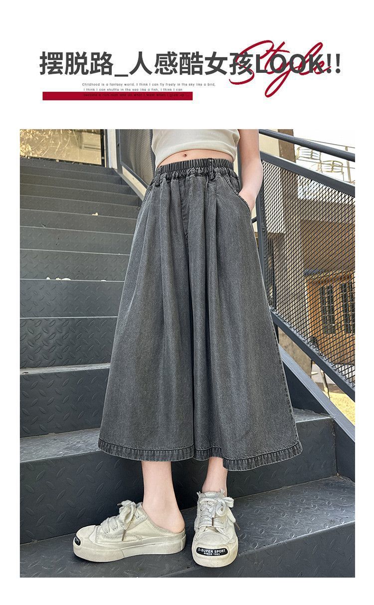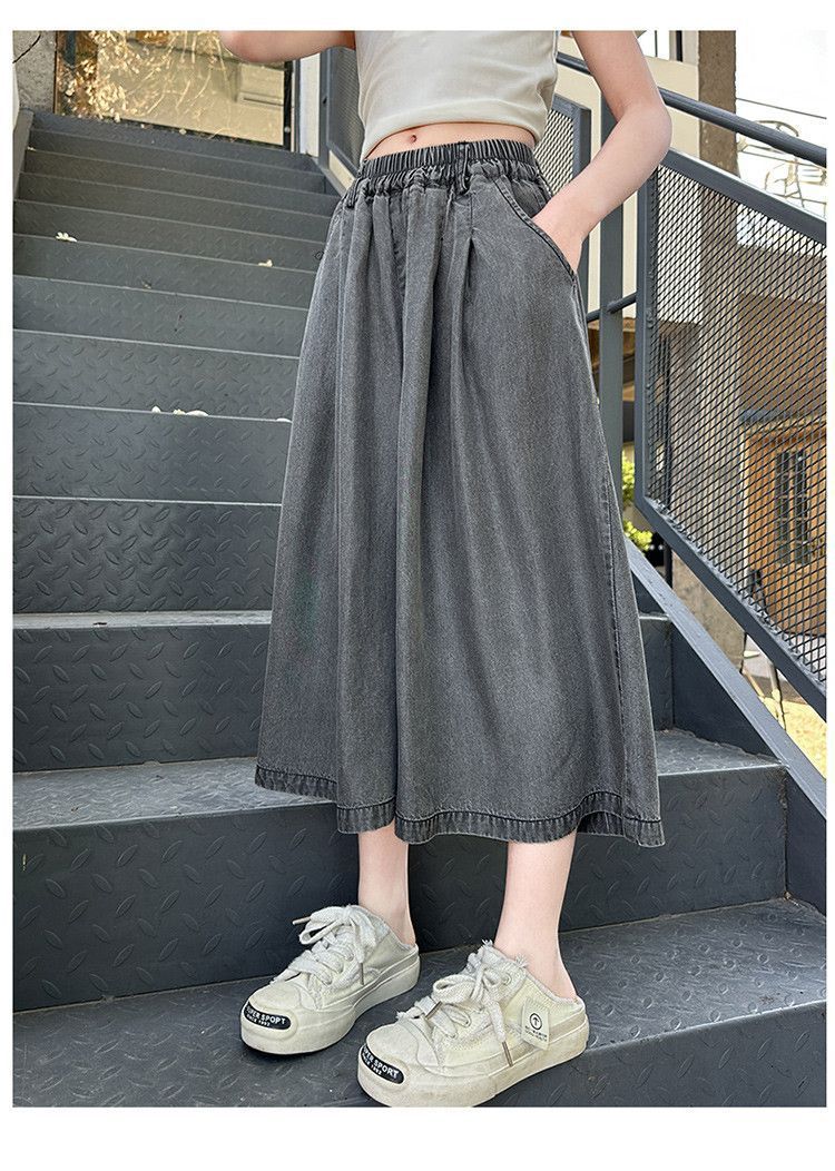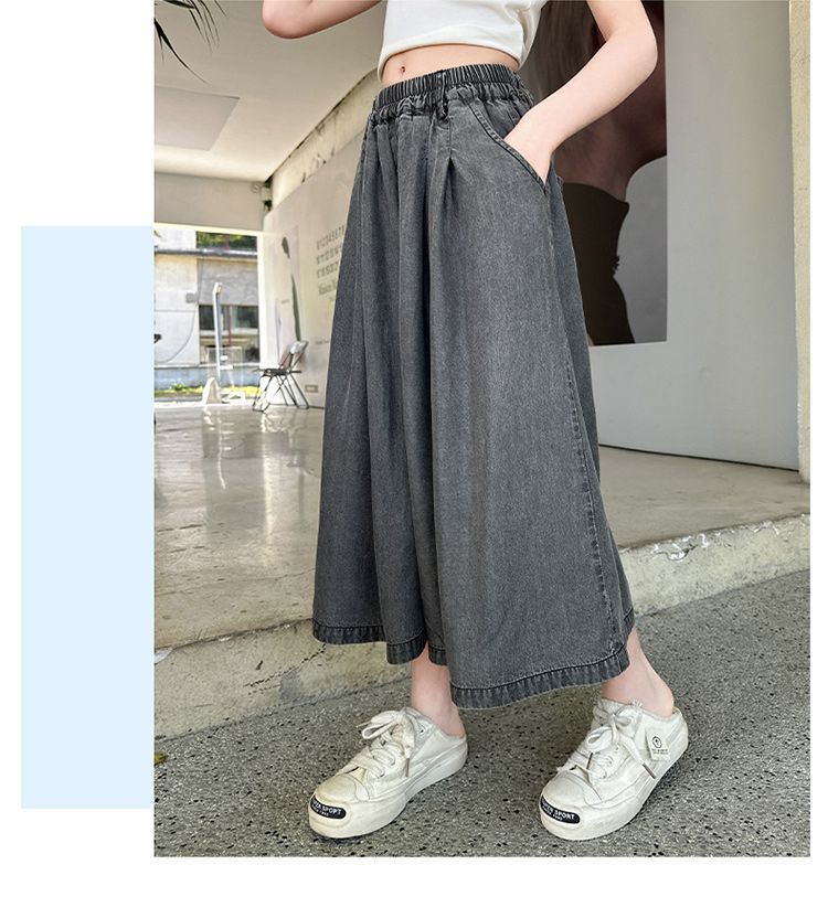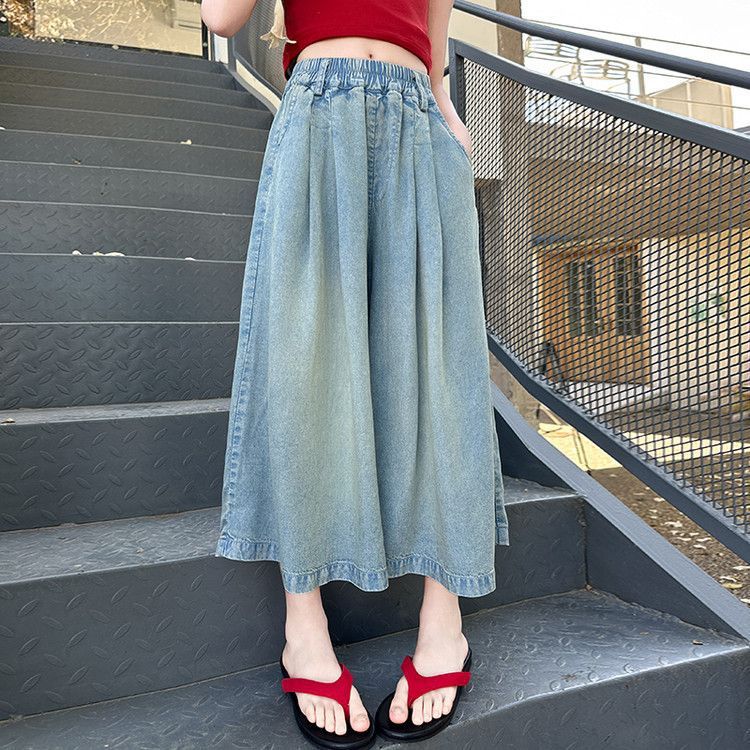 여아 텐셀 스커트 팬츠 여름 2026 신상 아동 하이웨이스트 데님 7부 바지 큰아이 캐주얼 루즈핏 얇은 와이드 팬츠스토어 가기