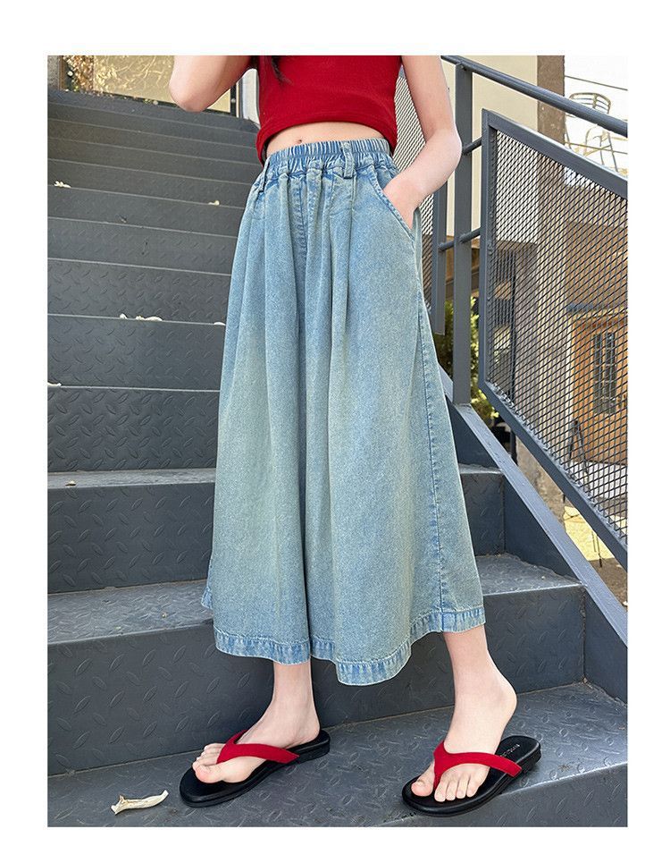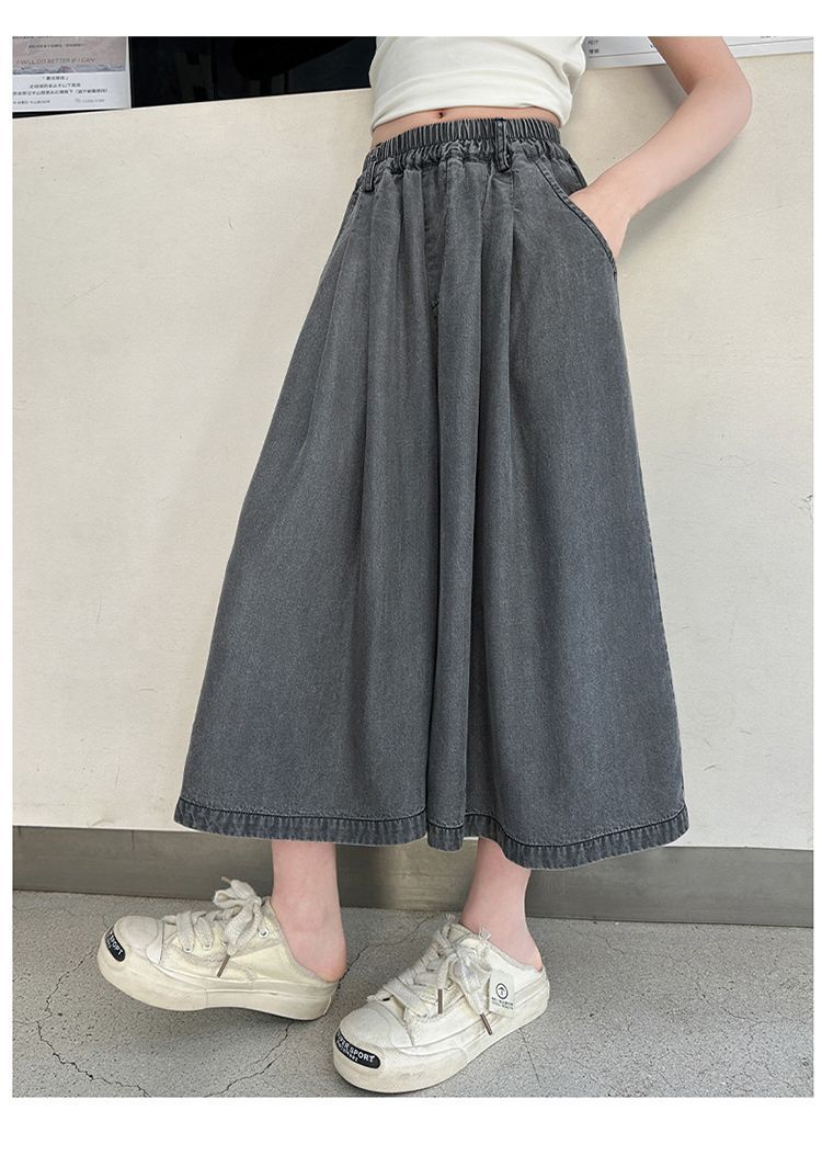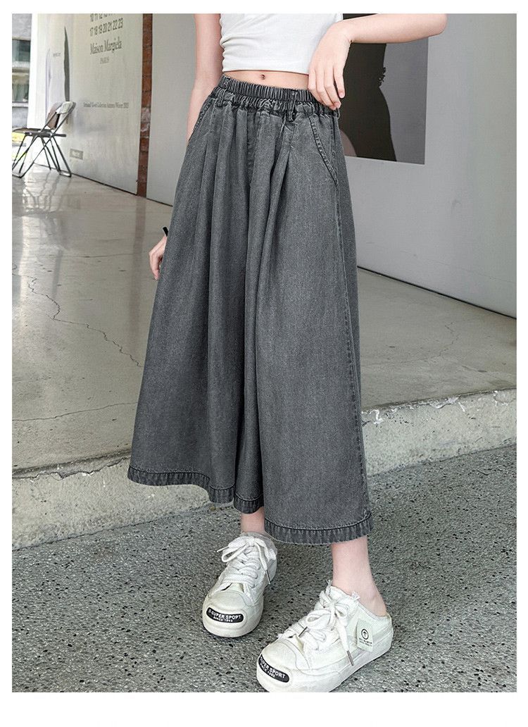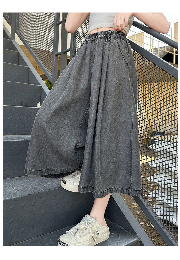 여아 텐셀 스커트 팬츠 여름 2026 신상 아동 하이웨이스트 데님 7부 바지 큰아이 캐주얼 루즈핏 얇은 와이드 팬츠스토어 가기