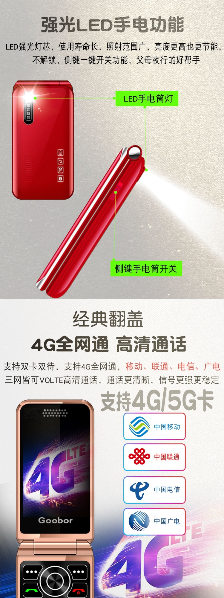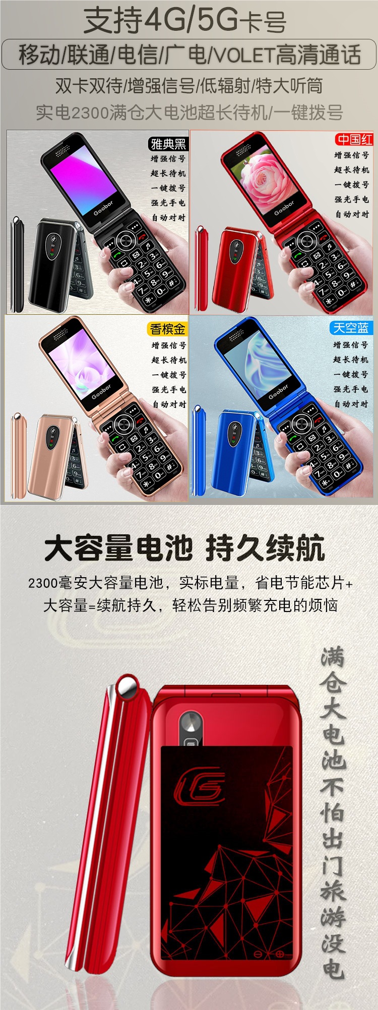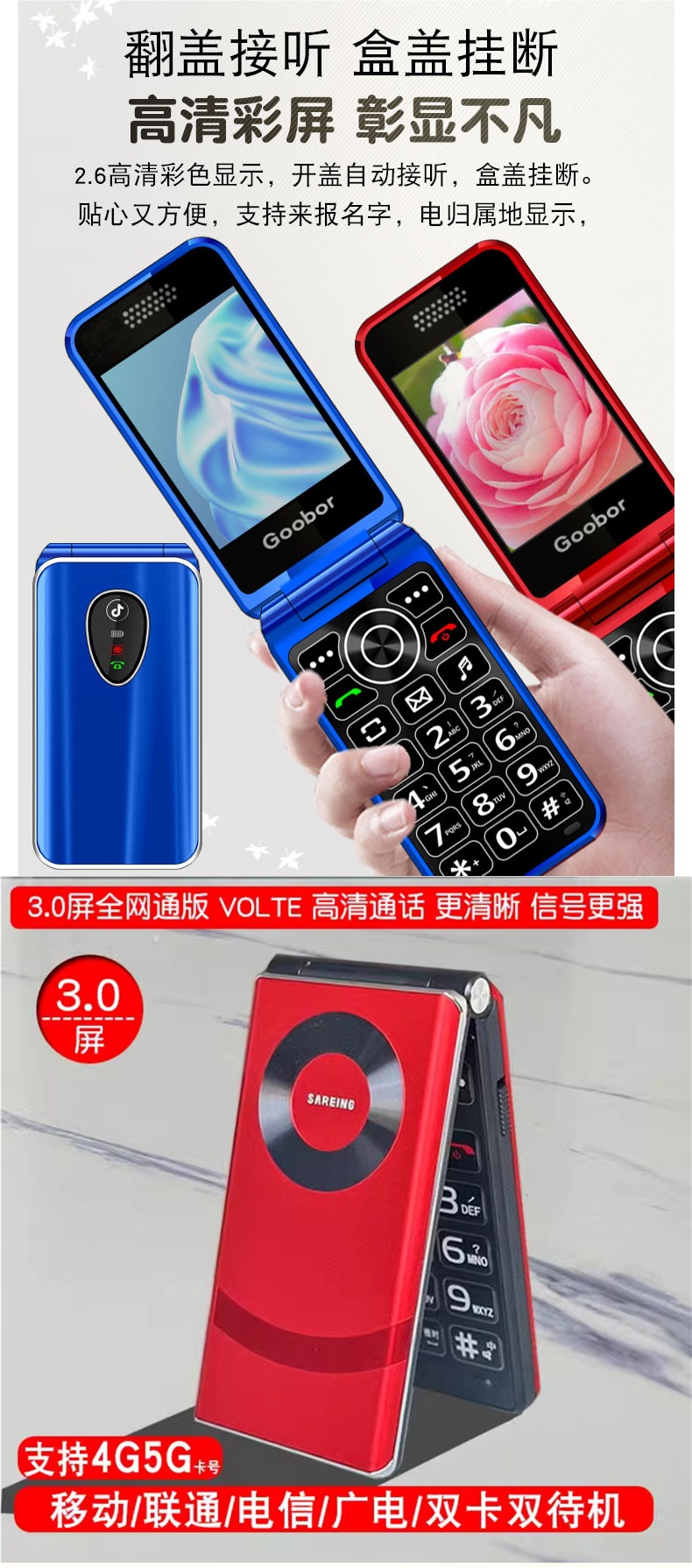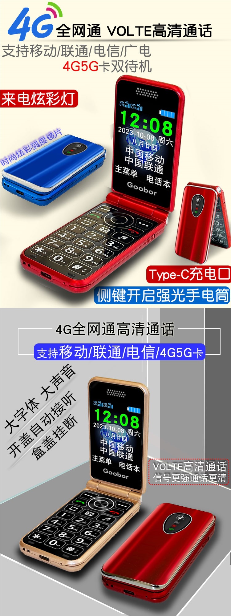 노인용 플립폰, 여성용 4G 통신, 초장기 대기, 대형 스크린, 큰 소리, 노인용 모바일폰, 보이스 킹스토어 가기