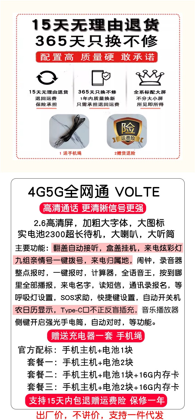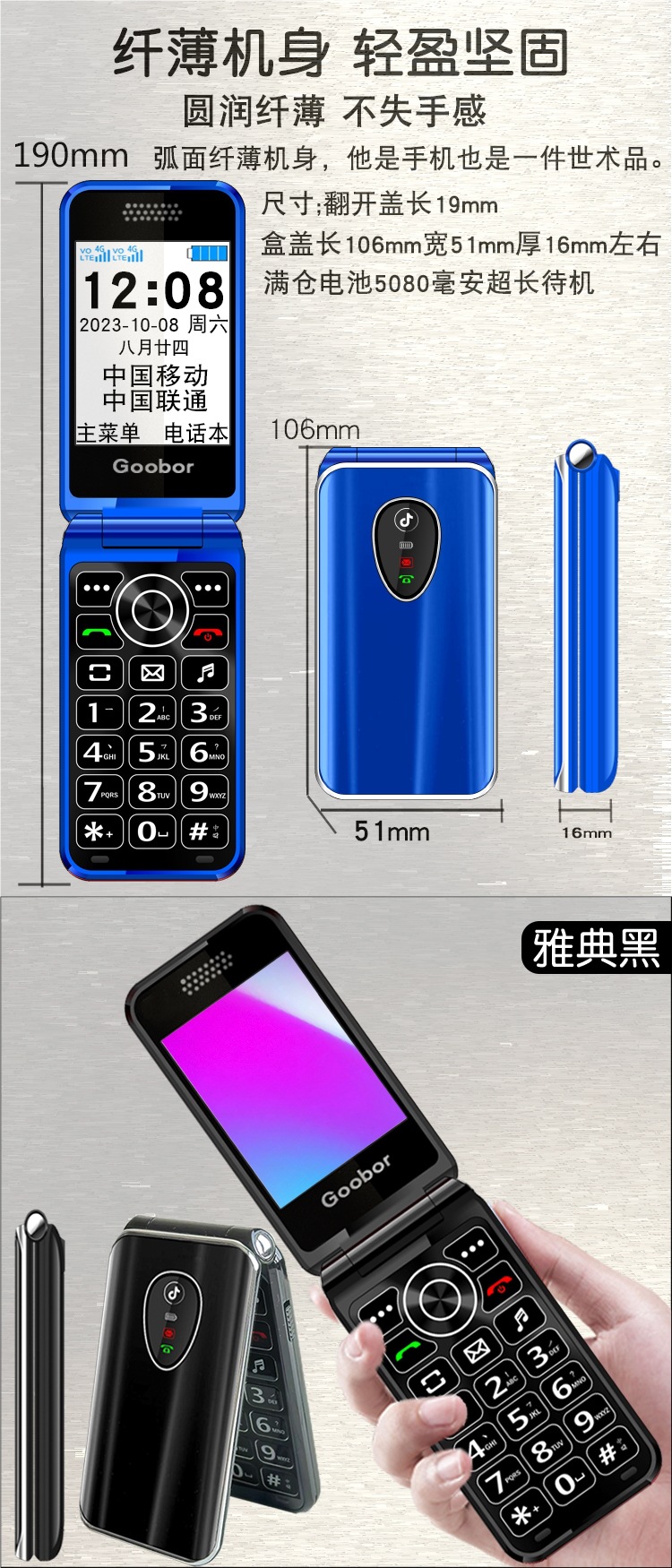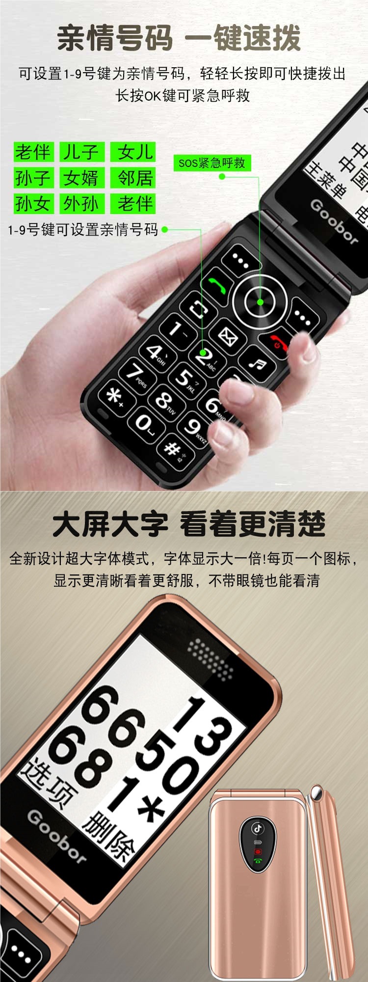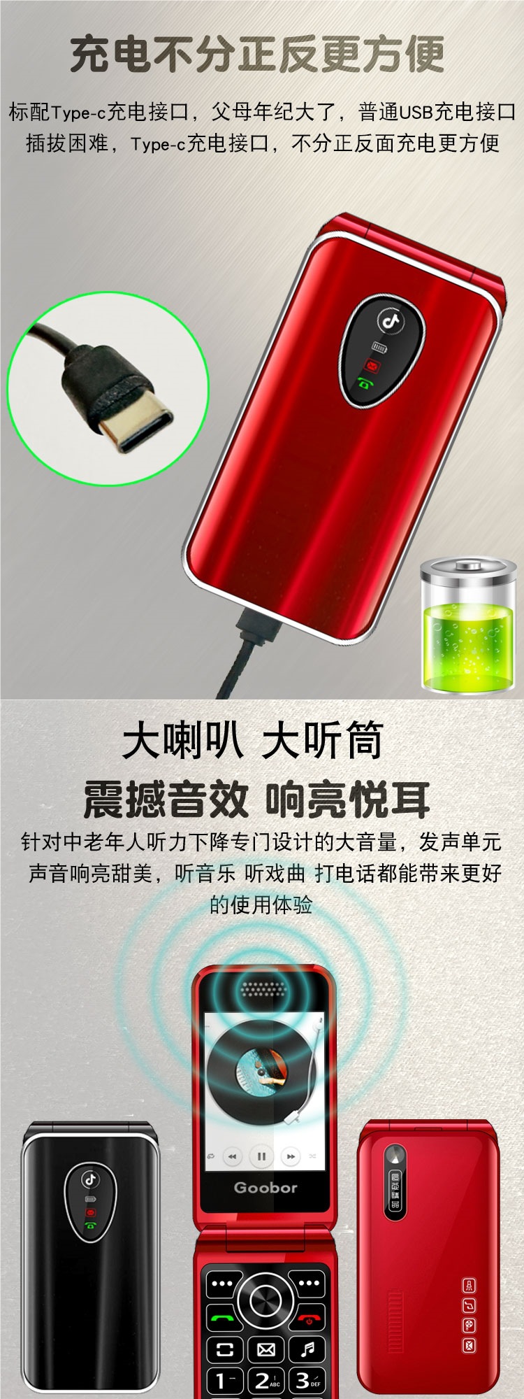 노인용 플립폰, 여성용 4G 통신, 초장기 대기, 대형 스크린, 큰 소리, 노인용 모바일폰, 보이스 킹스토어 가기