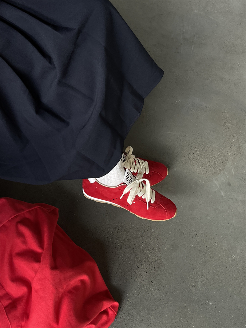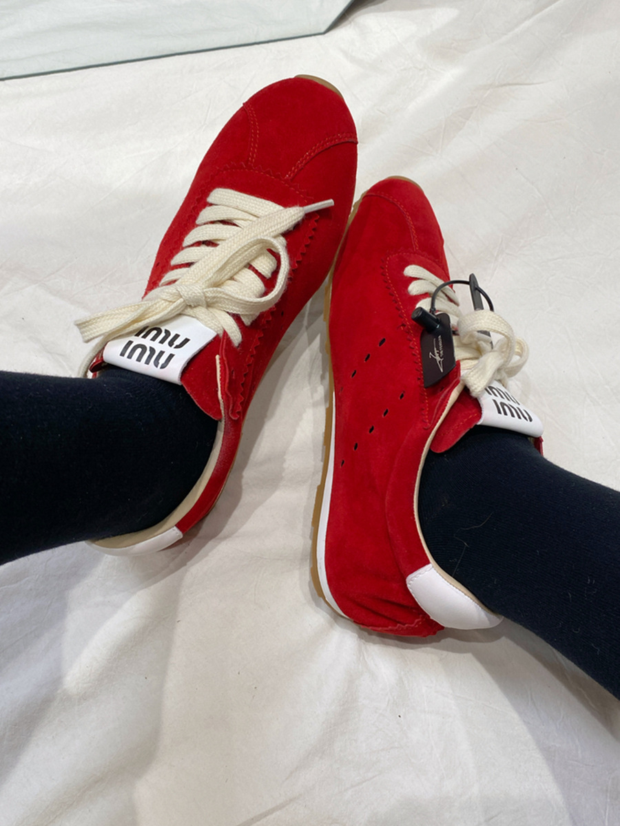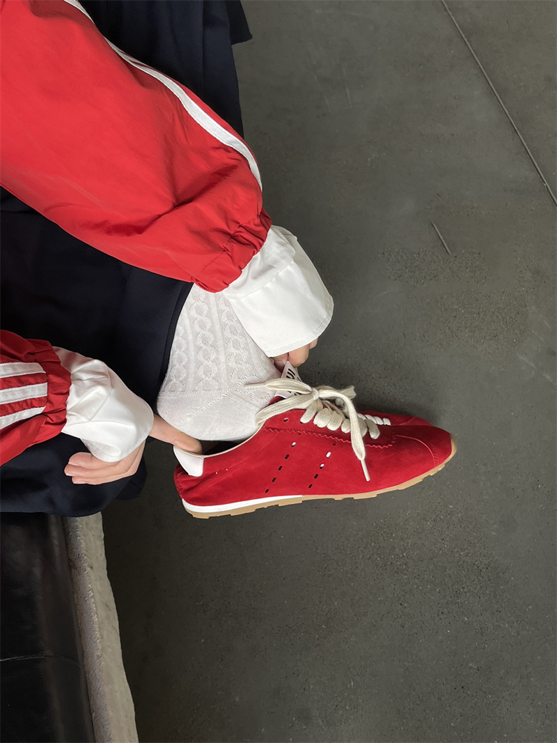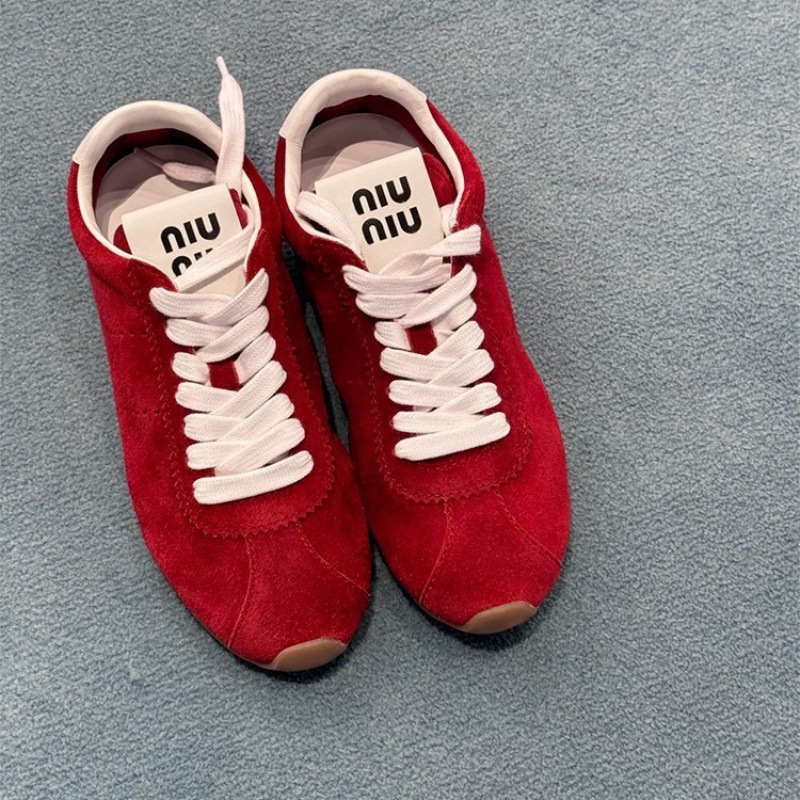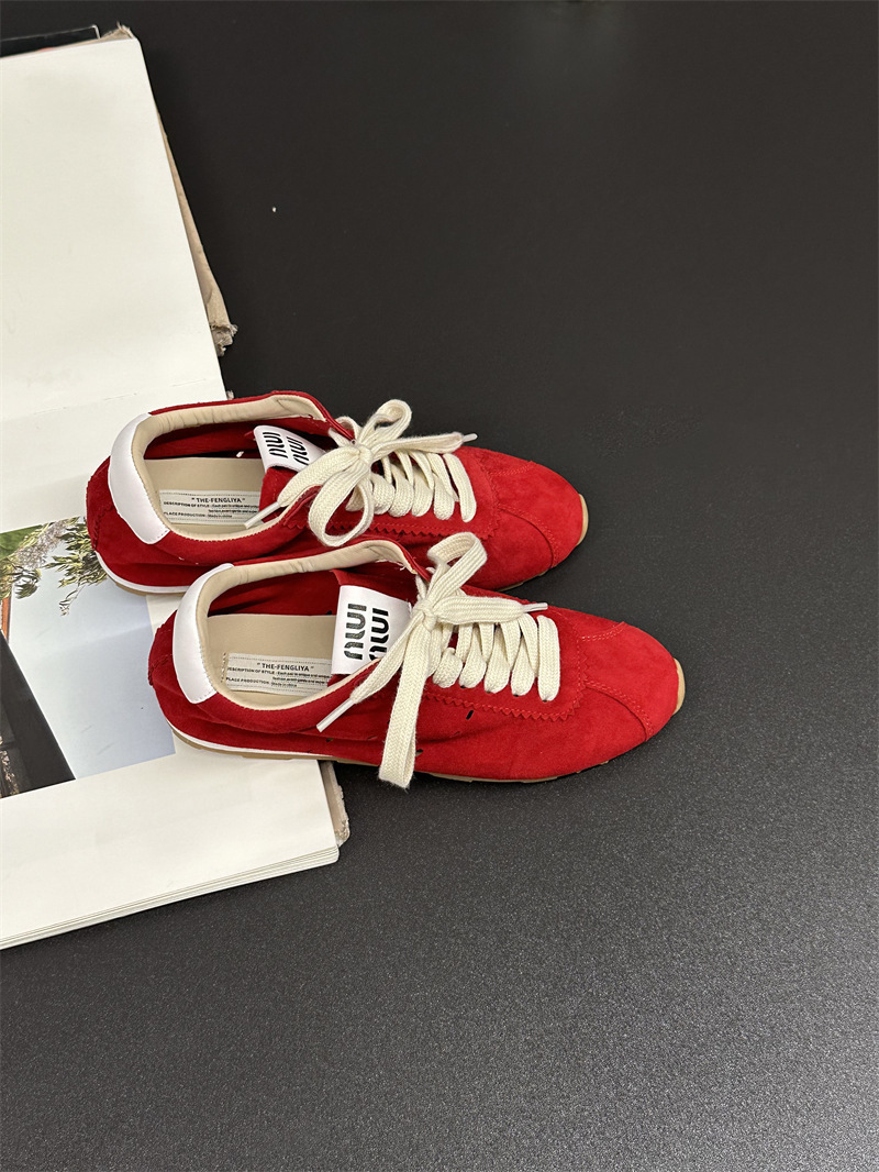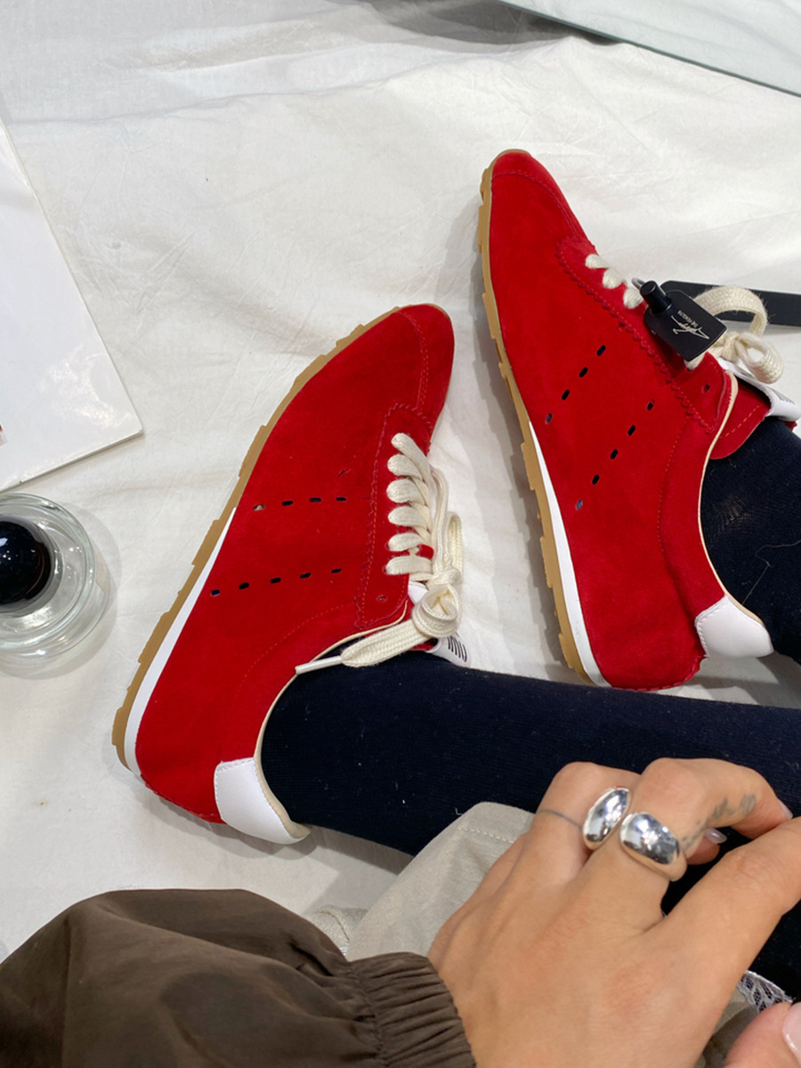 소가죽 틈새 가죽 플랫 바닥 라운드 토 레드 포레스트 검프 여성용 레이스업 다용도 육군 훈련화, 운동화, 캐주얼 슈즈스토어 가기