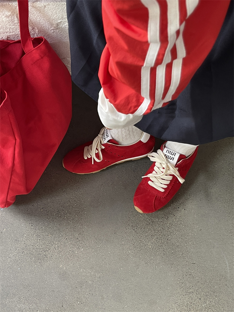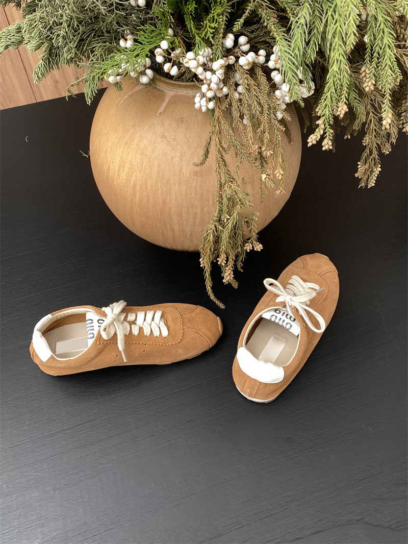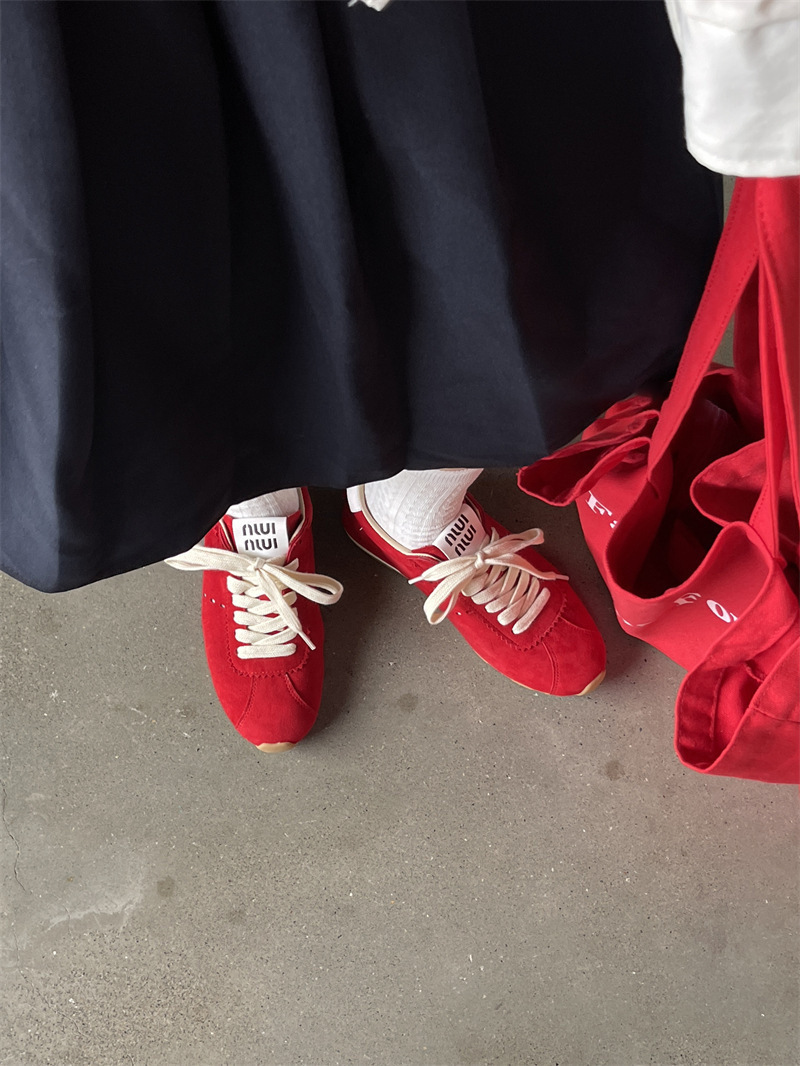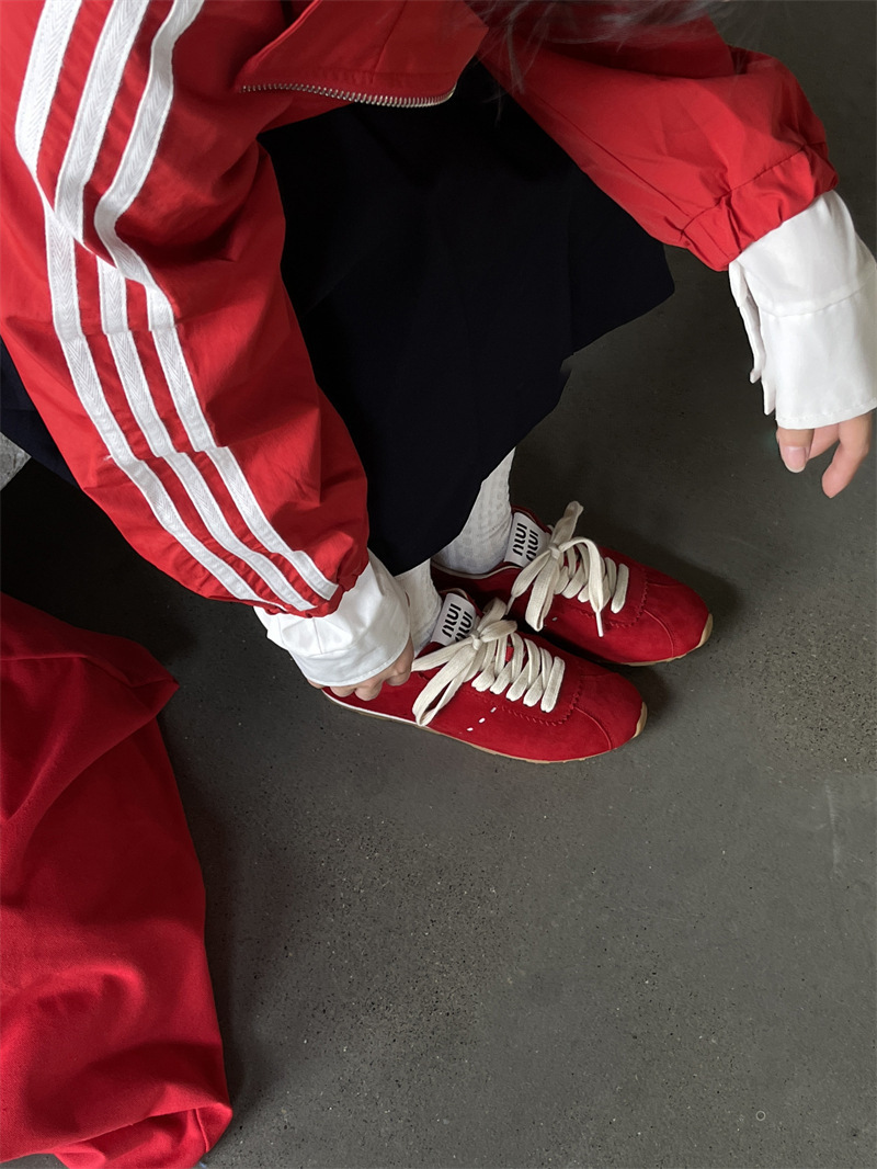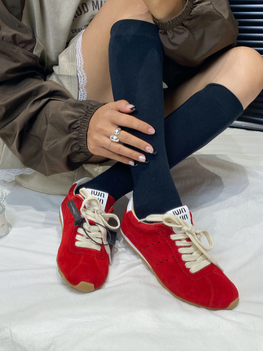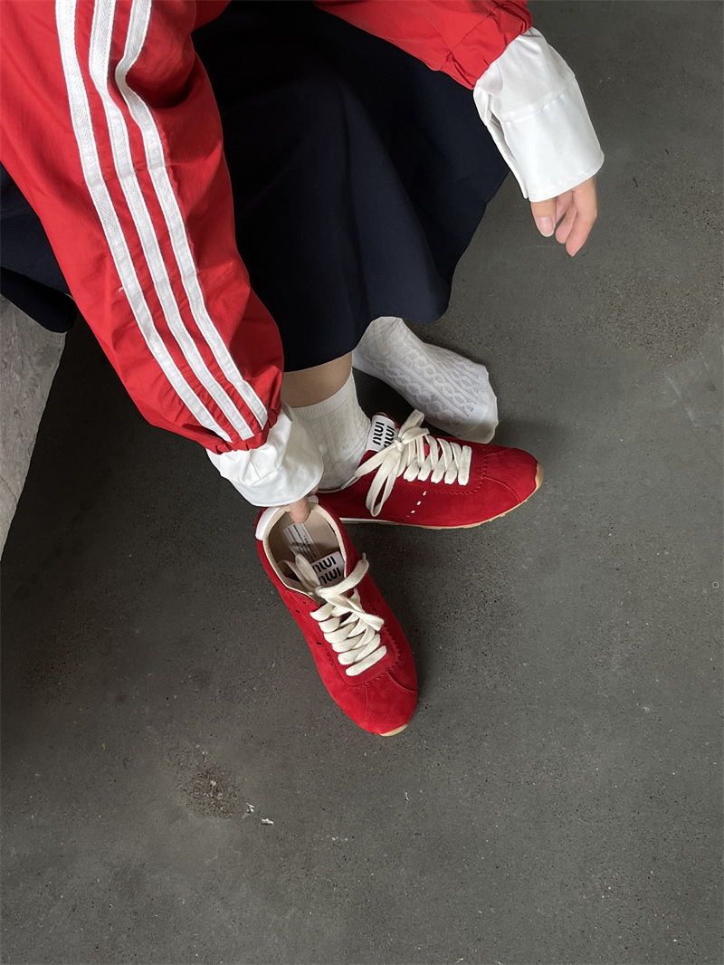 소가죽 틈새 가죽 플랫 바닥 라운드 토 레드 포레스트 검프 여성용 레이스업 다용도 육군 훈련화, 운동화, 캐주얼 슈즈스토어 가기