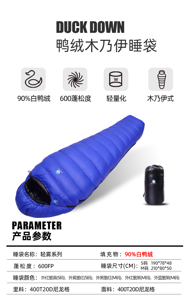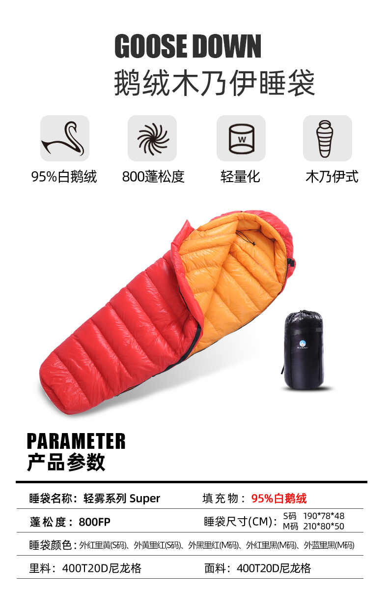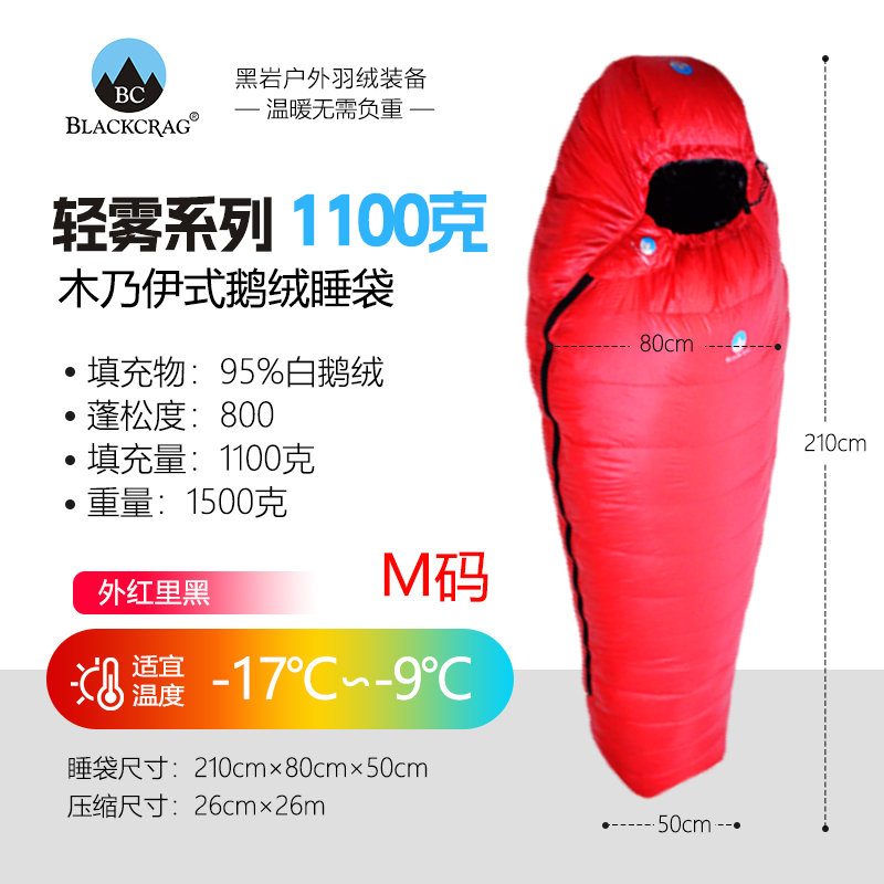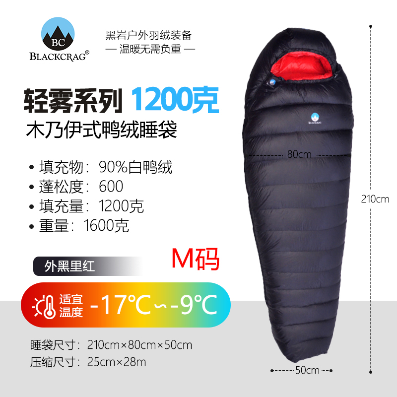 BLACKCRAG/블랙 락 라이트 미스트 아웃도어 캠핑 초경량 미라 스타일 다운 침낭 오리털 거위털