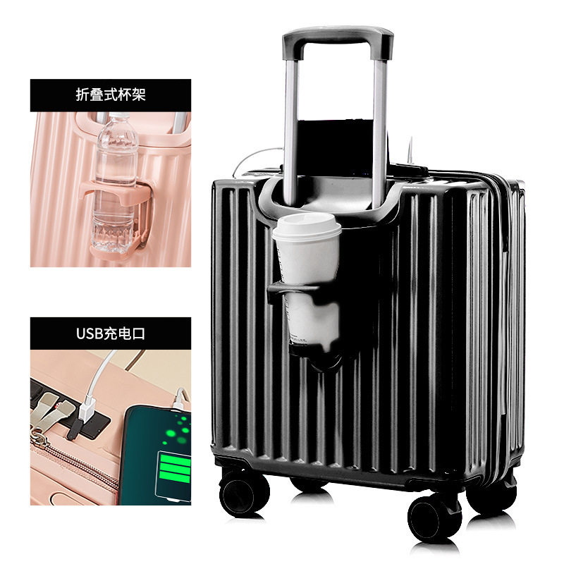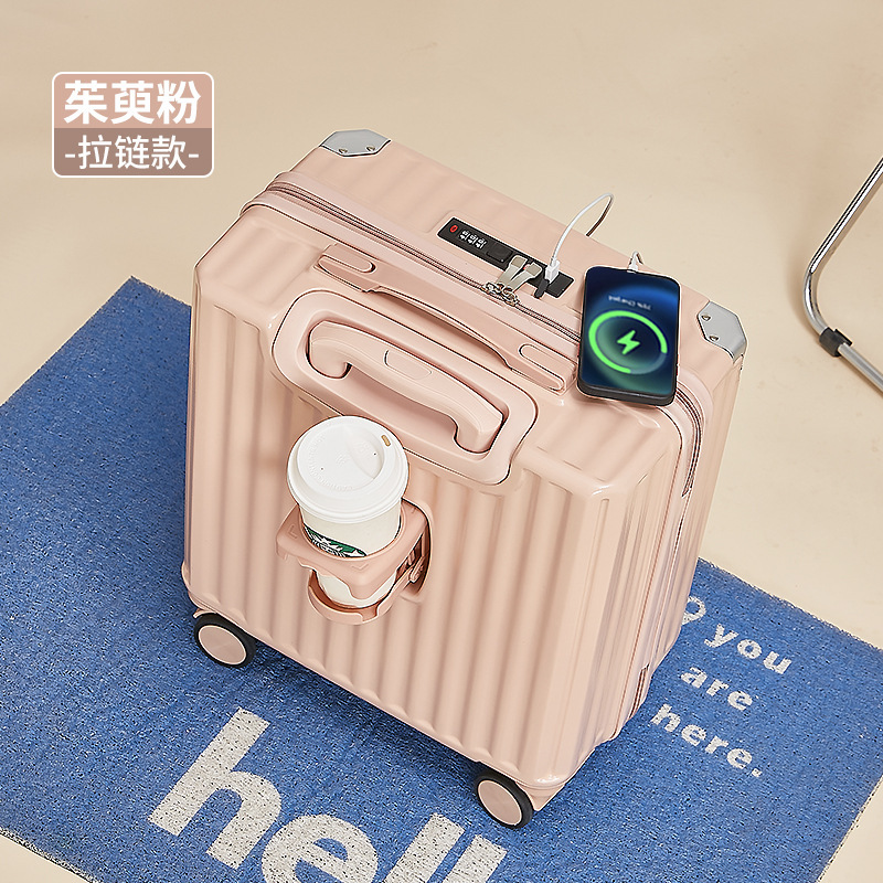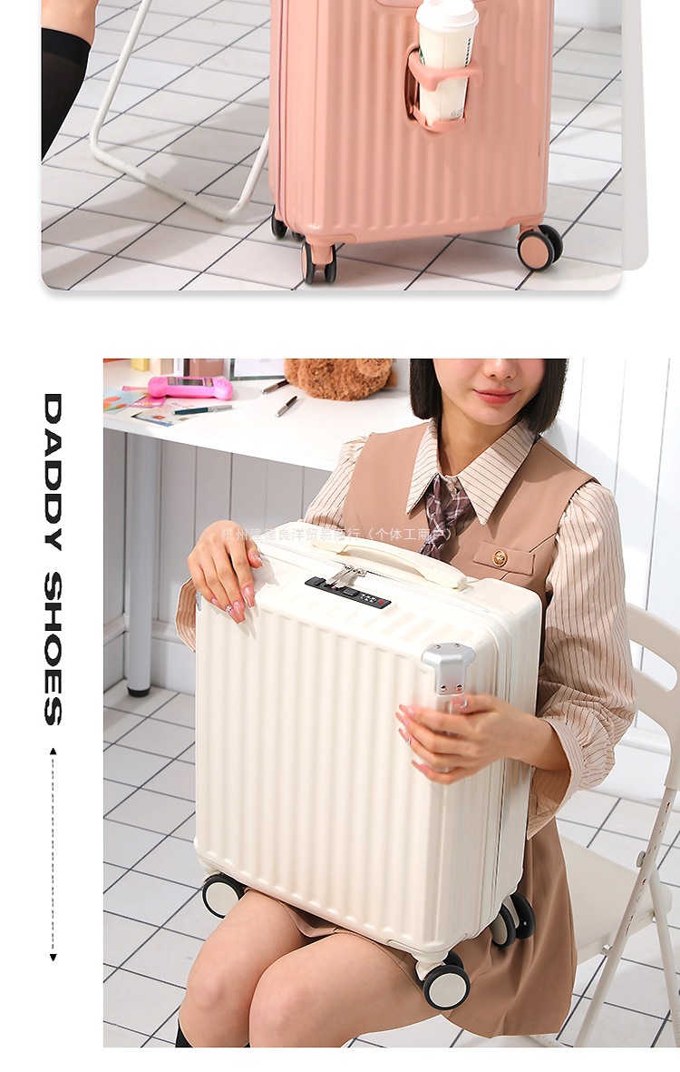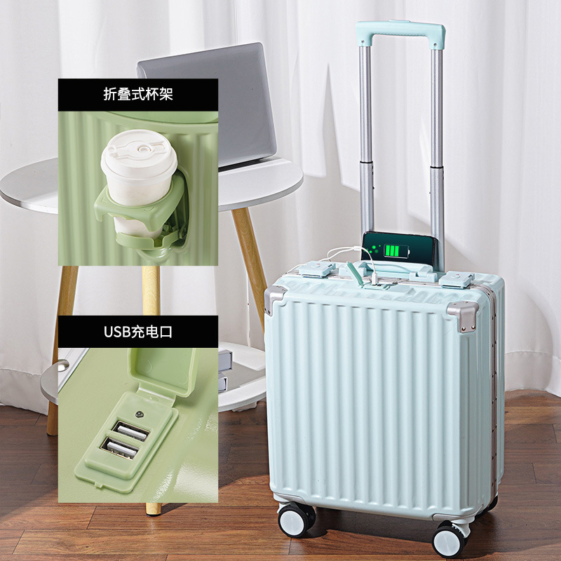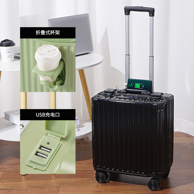 여성용 가방 18inch 소형 트롤리 컵 홀더 알루미늄 프레임 비밀번호 상자 남성용 가방 강력한 충전식 탑승 케이스스토어 가기