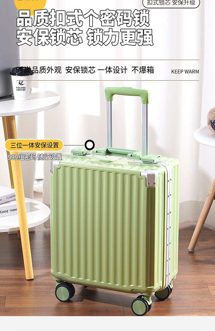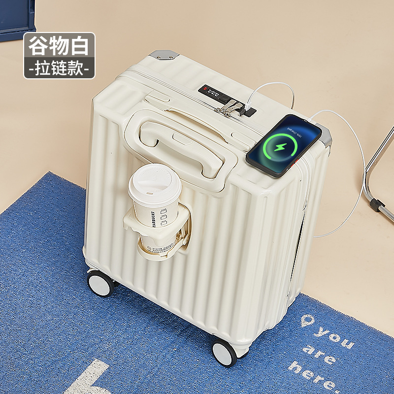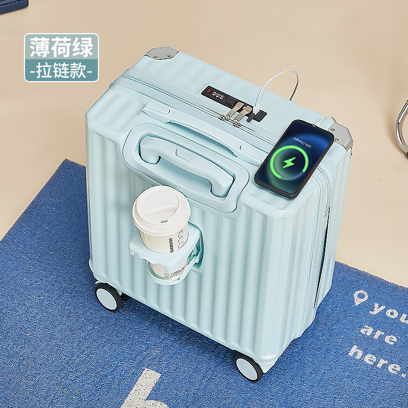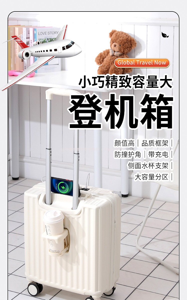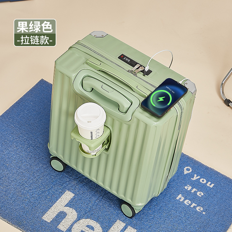 여성용 가방 18inch 소형 트롤리 컵 홀더 알루미늄 프레임 비밀번호 상자 남성용 가방 강력한 충전식 탑승 케이스스토어 가기