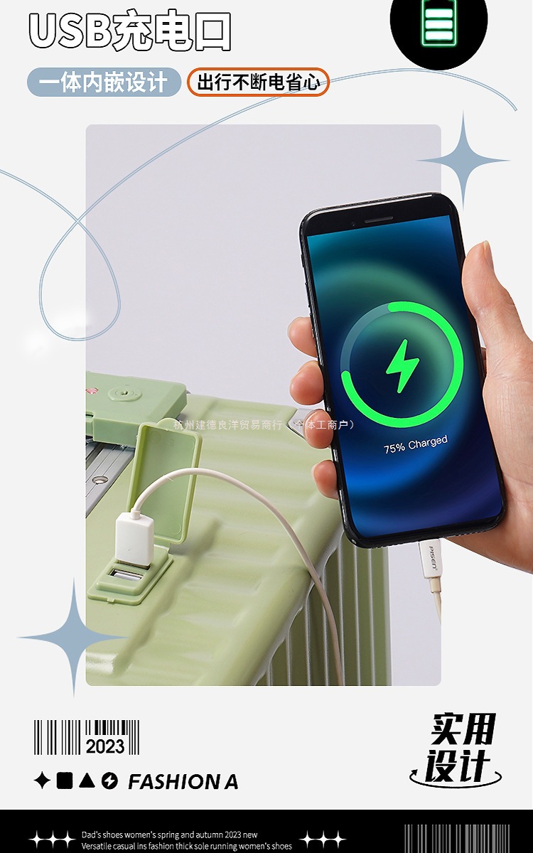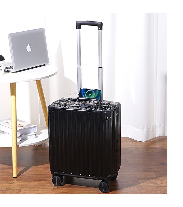 여성용 가방 18inch 소형 트롤리 컵 홀더 알루미늄 프레임 비밀번호 상자 남성용 가방 강력한 충전식 탑승 케이스