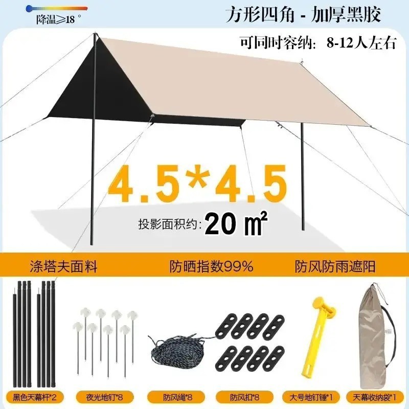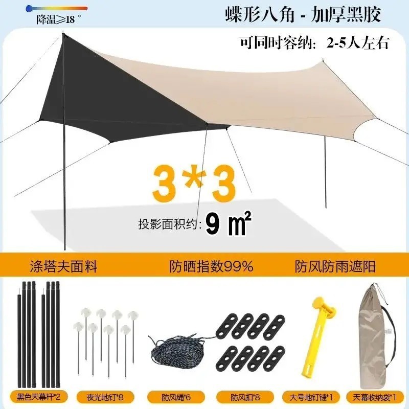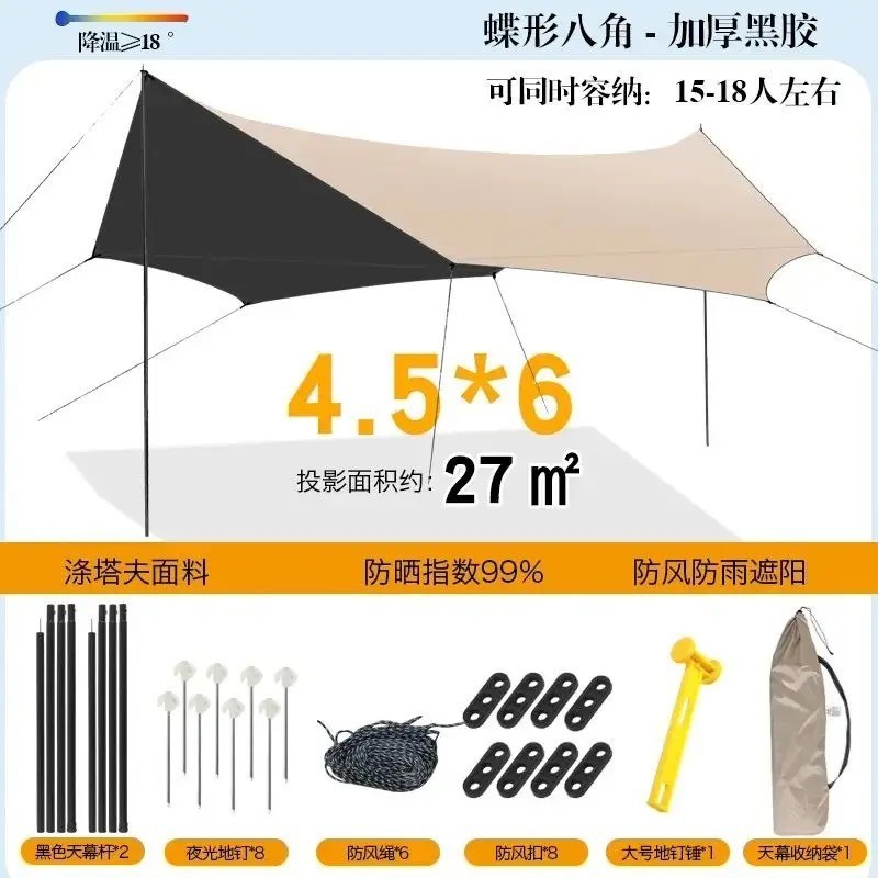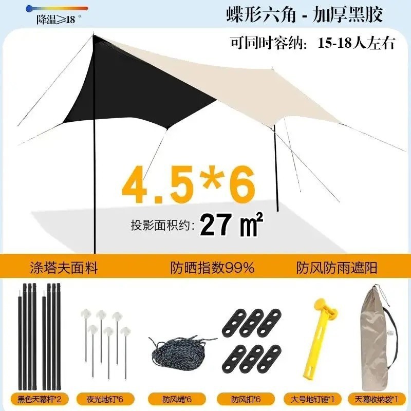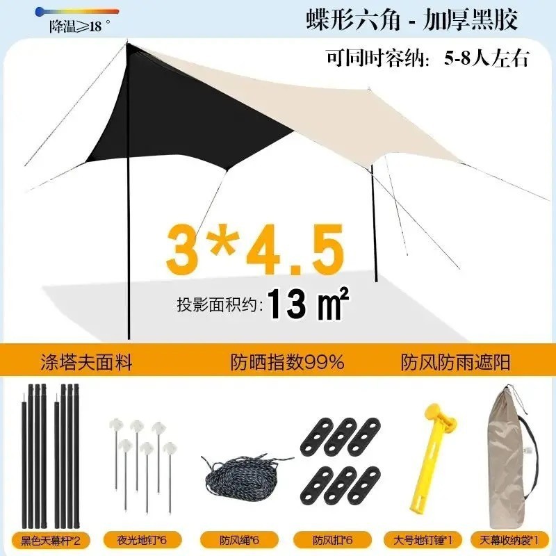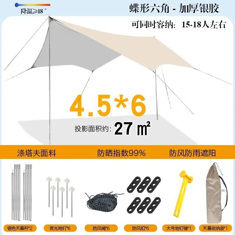 비닐 캐노피 텐트 야외 캠핑 휴대용 태양 보호 및 비 보호 피크닉 캠핑 나비 육각형 천막