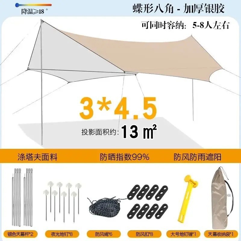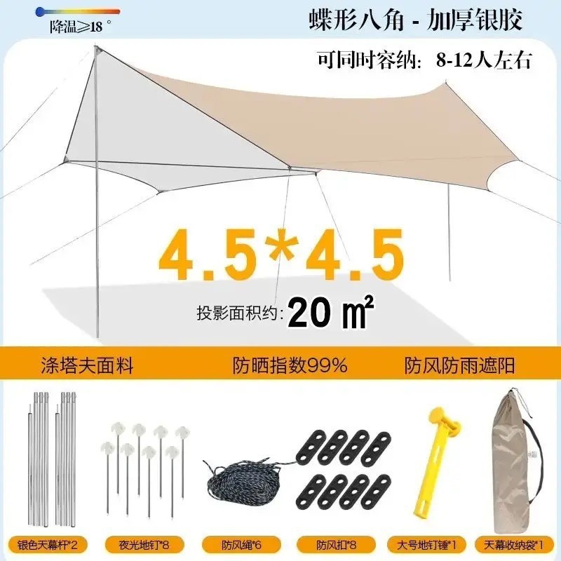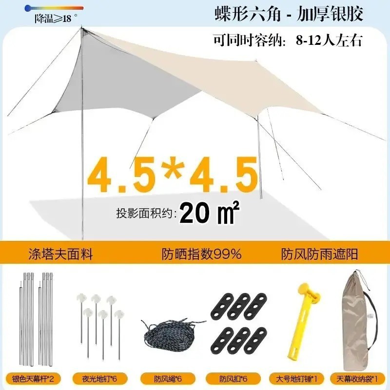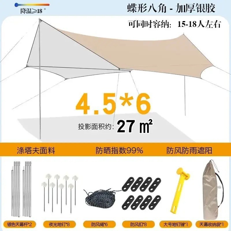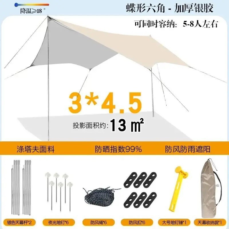 비닐 캐노피 텐트 야외 캠핑 휴대용 태양 보호 및 비 보호 피크닉 캠핑 나비 육각형 천막스토어 가기