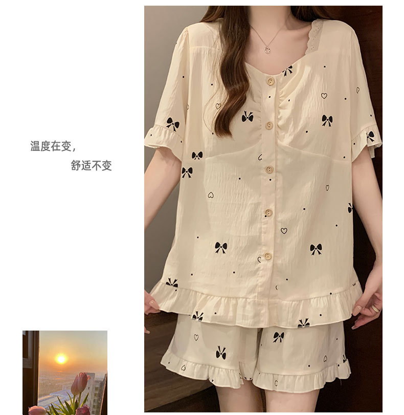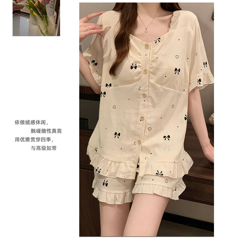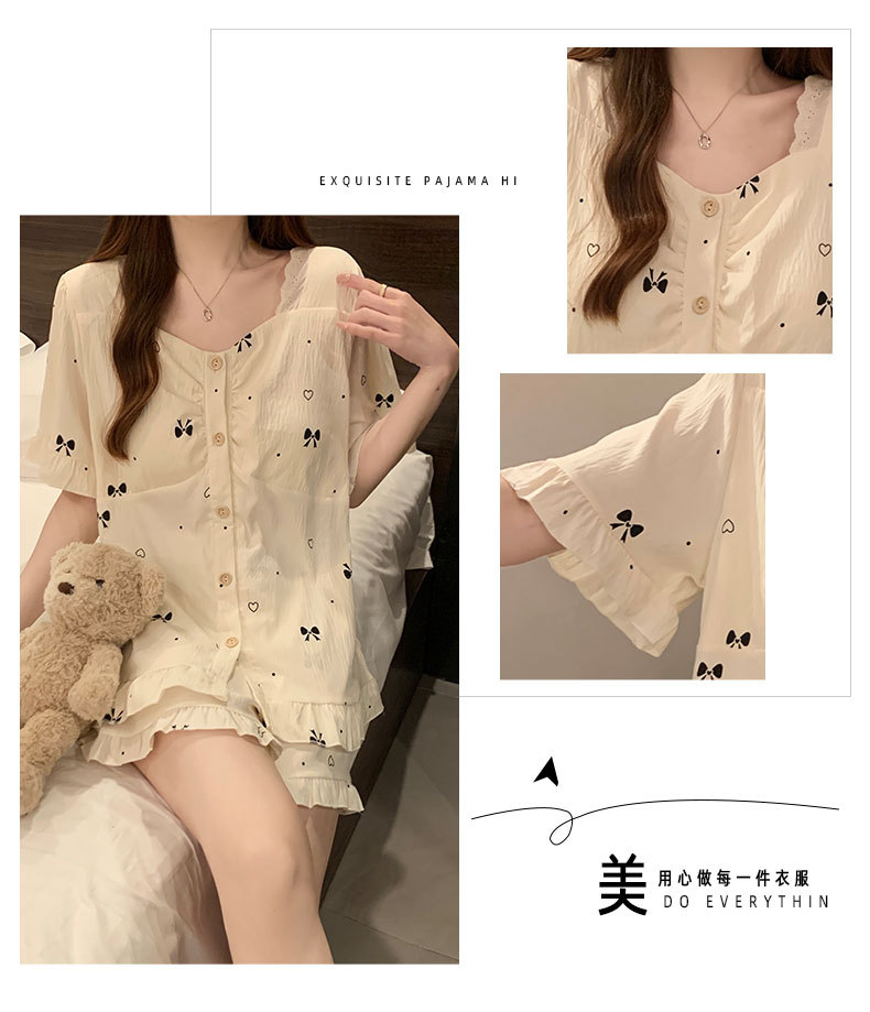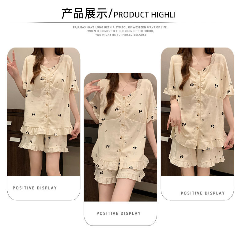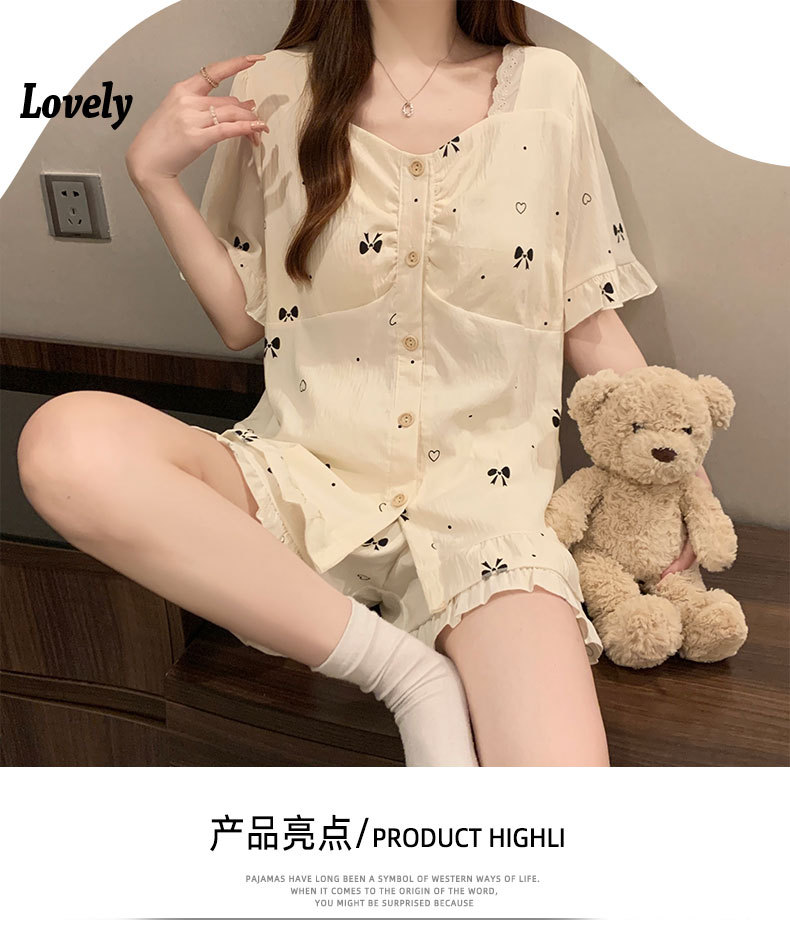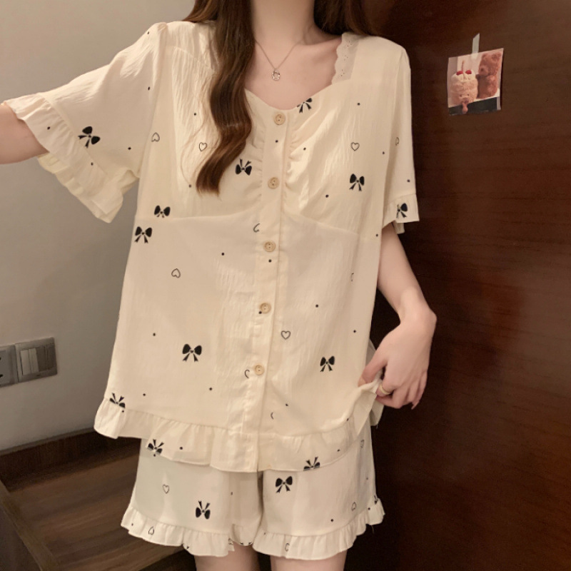 여성용 잠옷 여름 새 스타일 가슴 패드 순수한 욕망 스타일 반팔 반바지 여름 활 얇은 패션 홈웨어 세트
