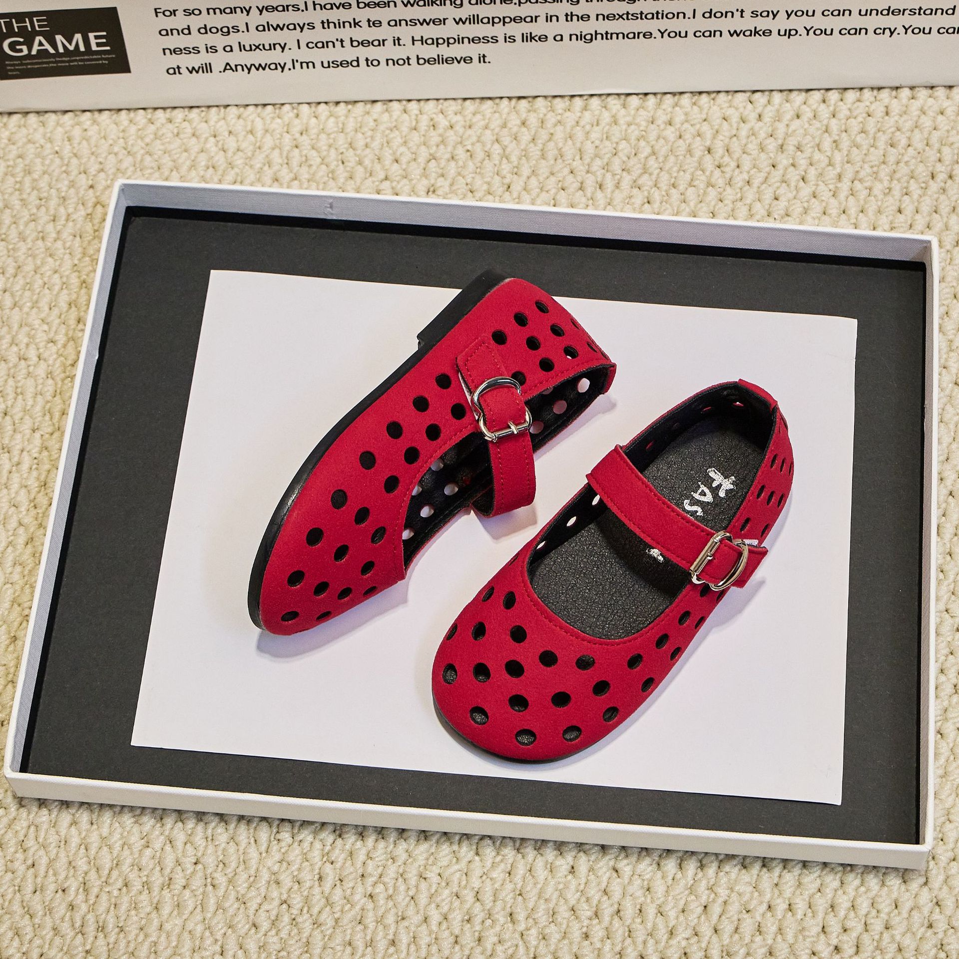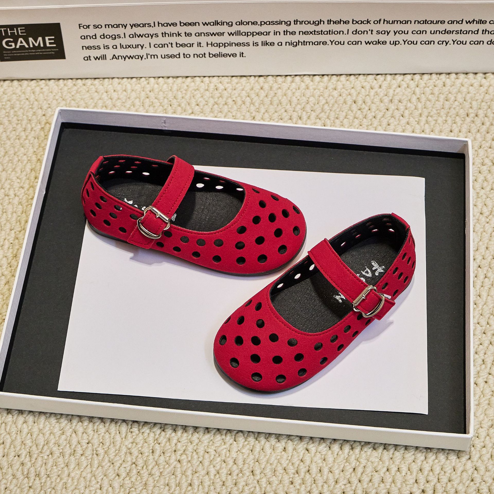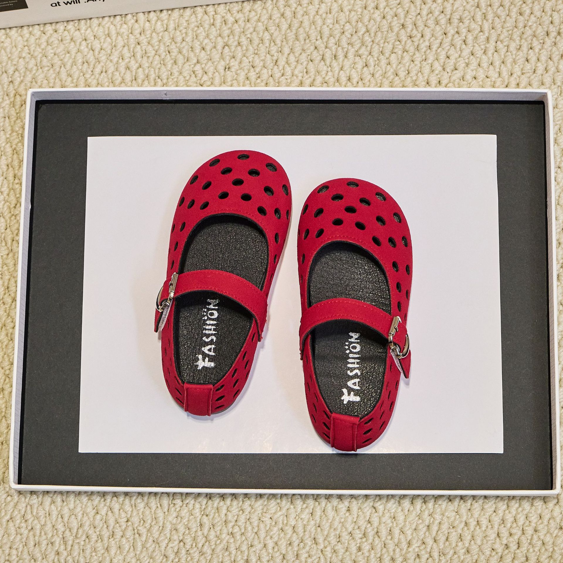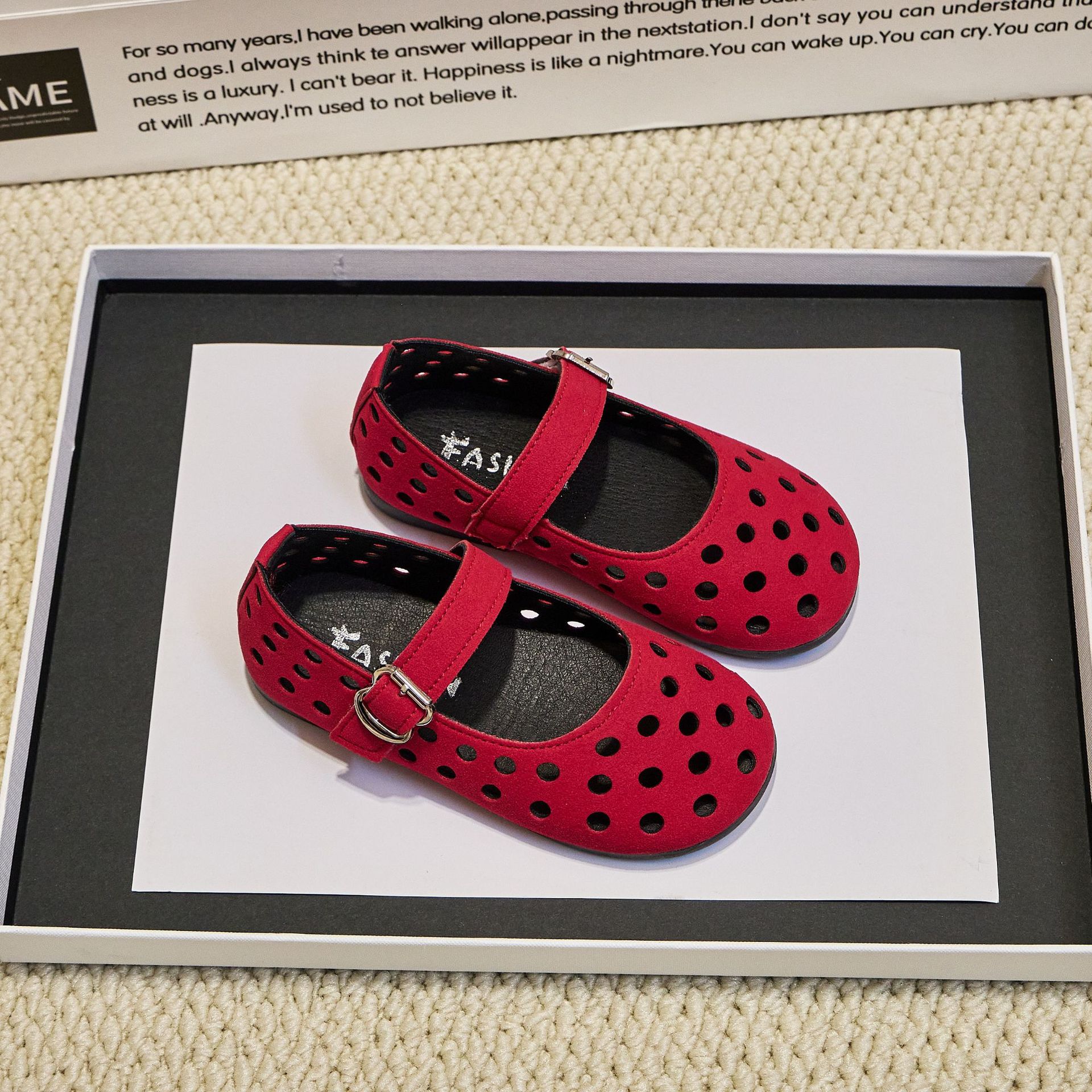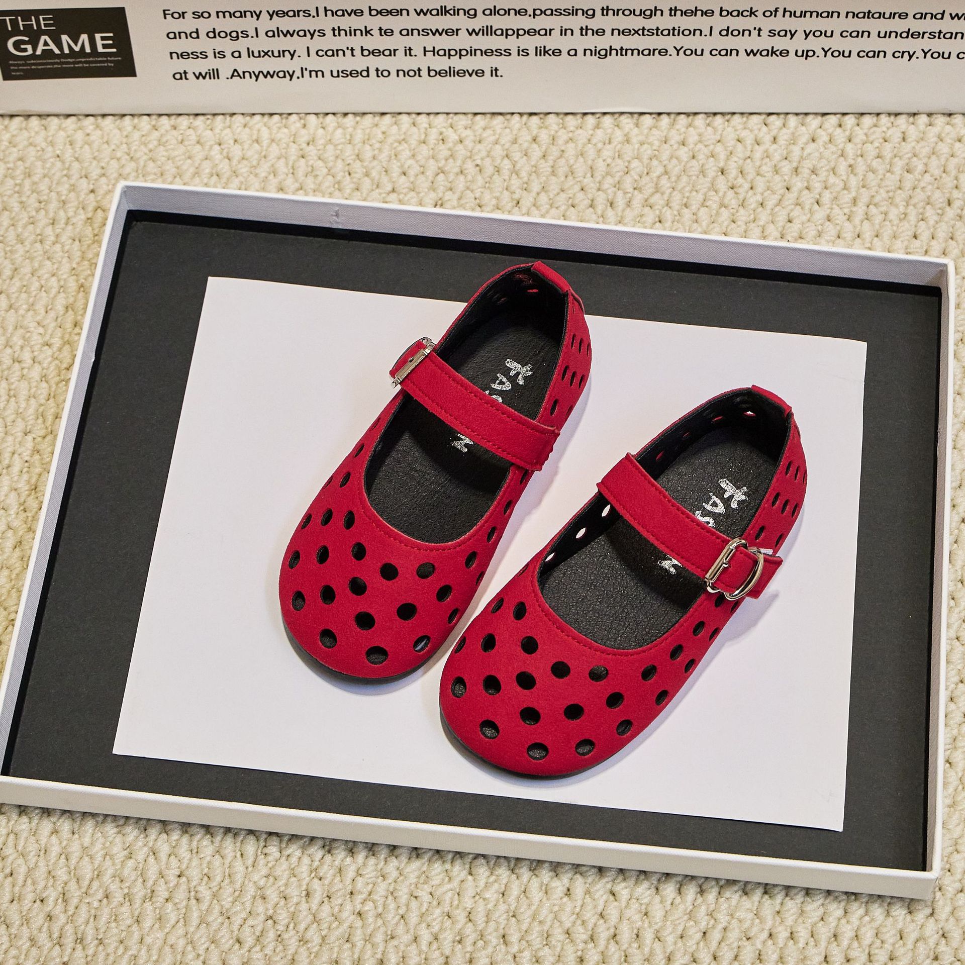 여자 메리 제인 신발 2025 여름 대외 무역 새로운 어린이 중공 샌들 얇은 밑창 얕은 구멍 싱글 신발 작은 빨간 신발스토어 가기