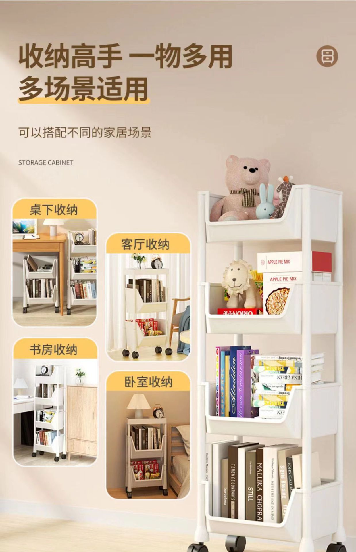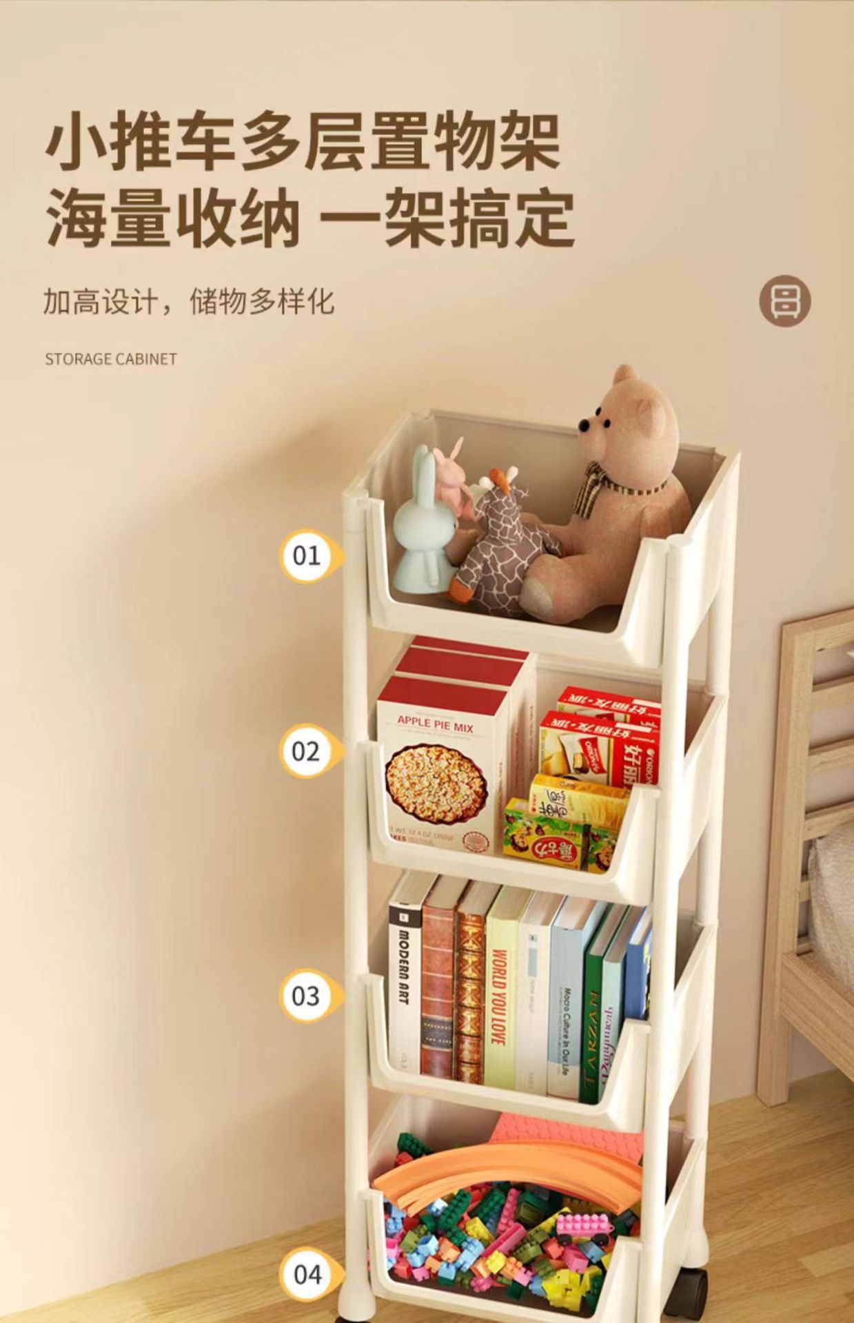 트롤리 보관함 모바일 홈 스낵 바닥 스탠딩 다층 거실 보관 책장 주방 거실 스톨 선반스토어 가기