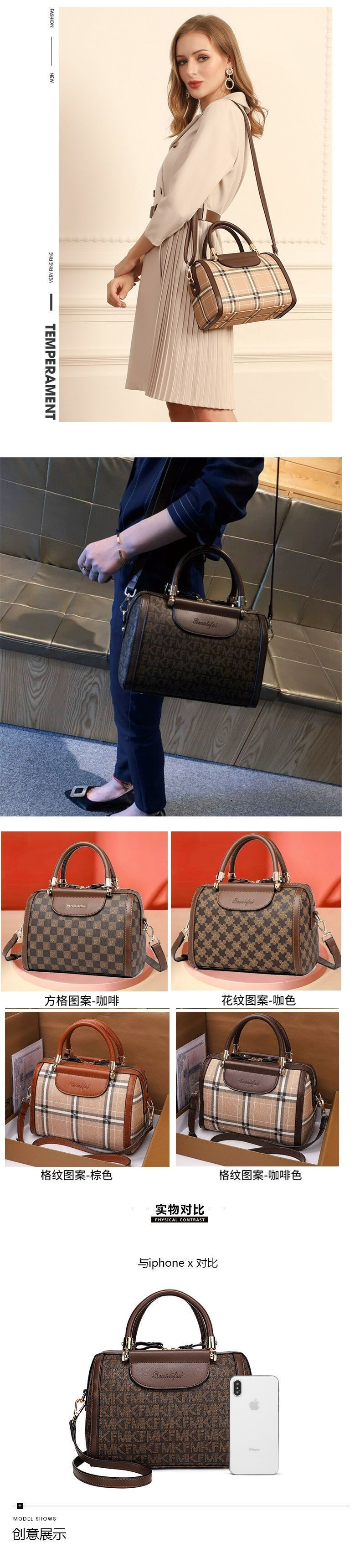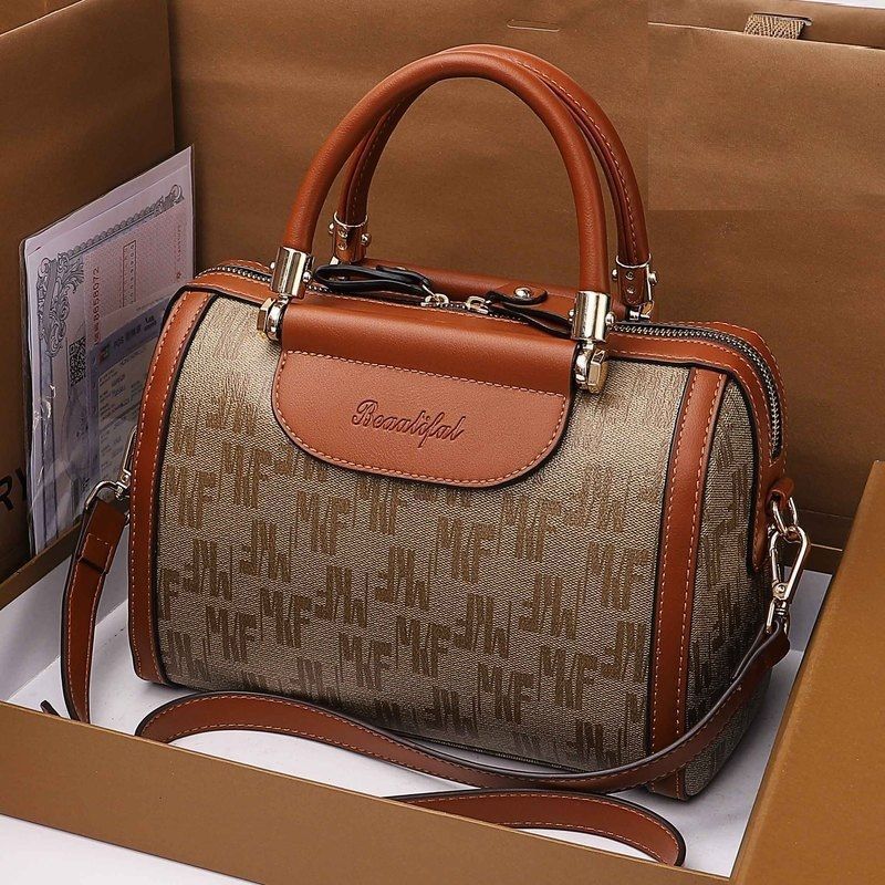 정품 가죽 다용도 대용량 캐주얼 배럴 베개 가방 보스턴 휴대용 크로스 바디 백 크로스 여성용 가방 소가죽 대형 가방스토어 가기