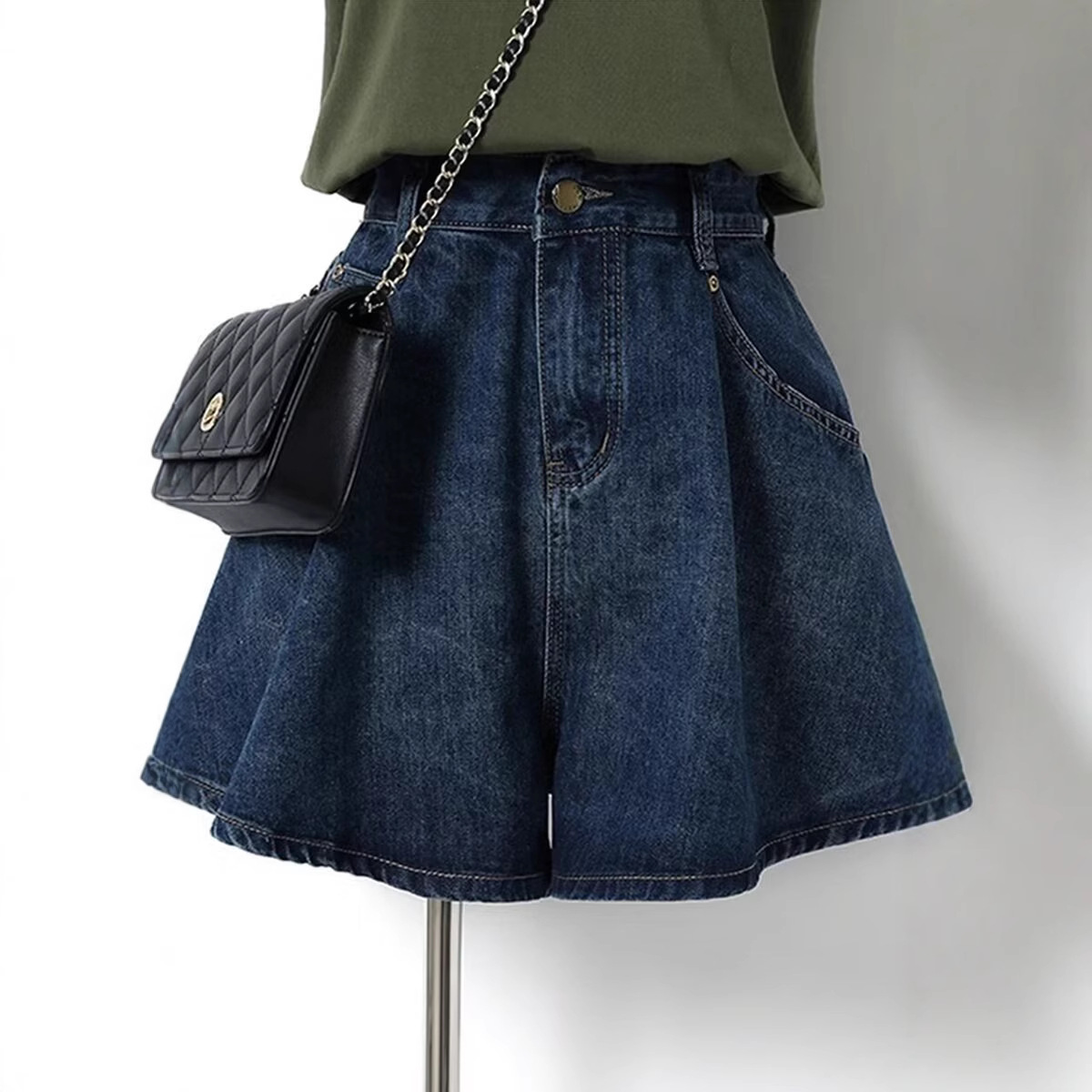 플러스 사이즈 데님 반바지 여자 여름 얇은 느슨한 슬리밍 넓은 다리 바지 통통녀 높은 허리 엉덩이 커버하는 A-라인과 함께 모든 매치 핫 팬츠
