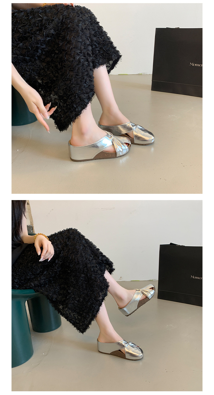 여성용 내부 키높이 발가락 반슬리퍼, 2025년 여름 신상 한국식 샌들, 게으른 패션 뮬 슈즈스토어 가기