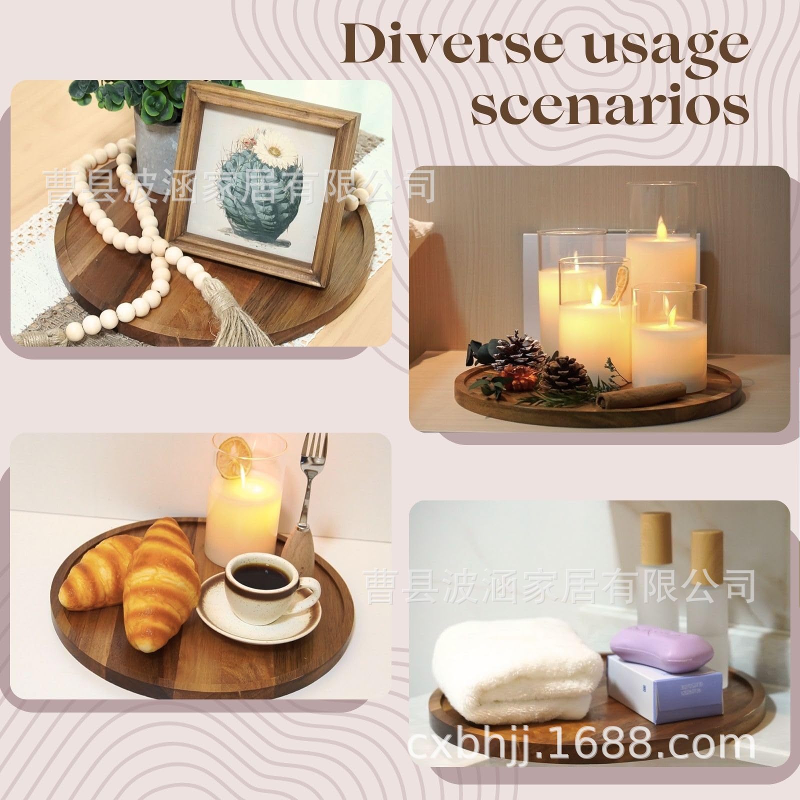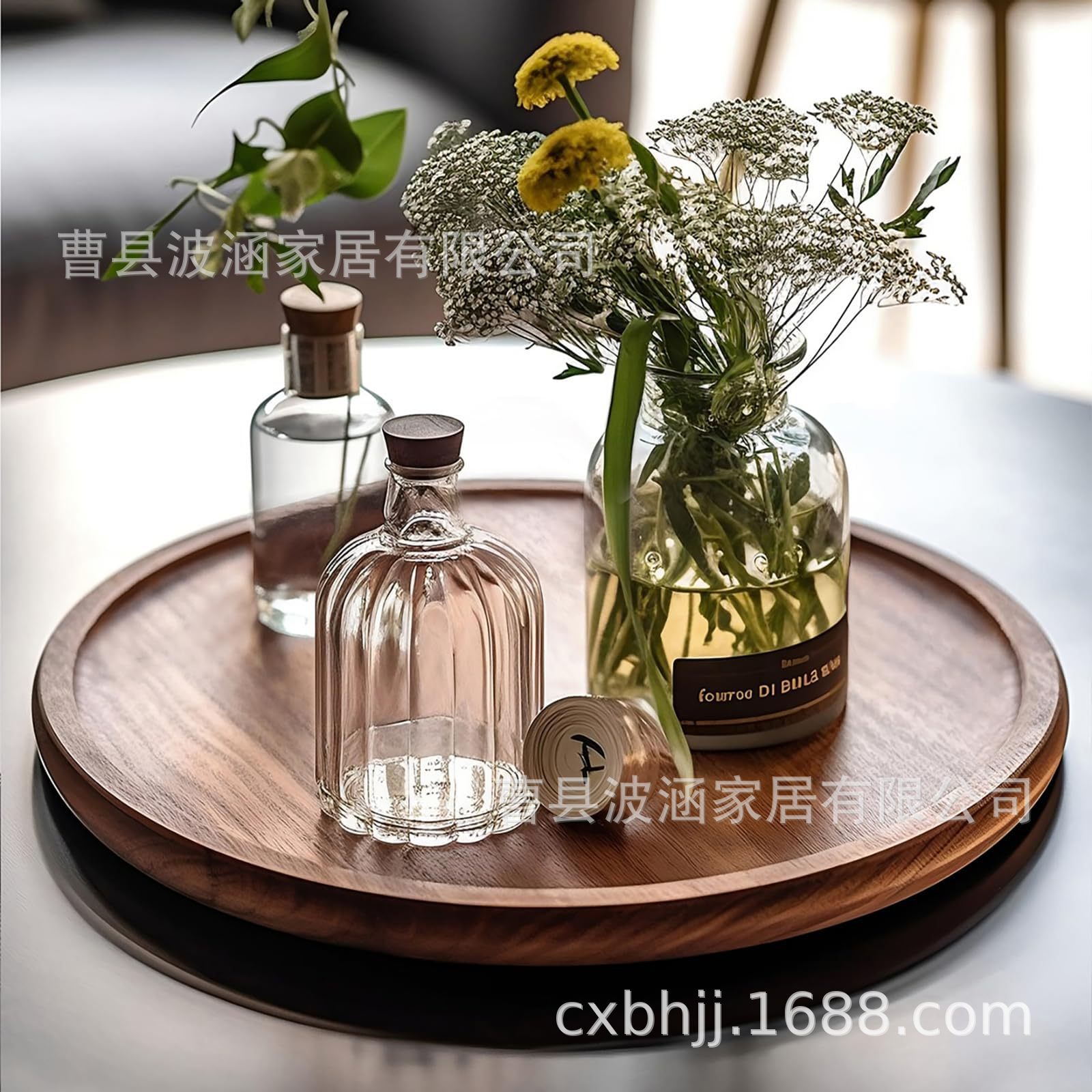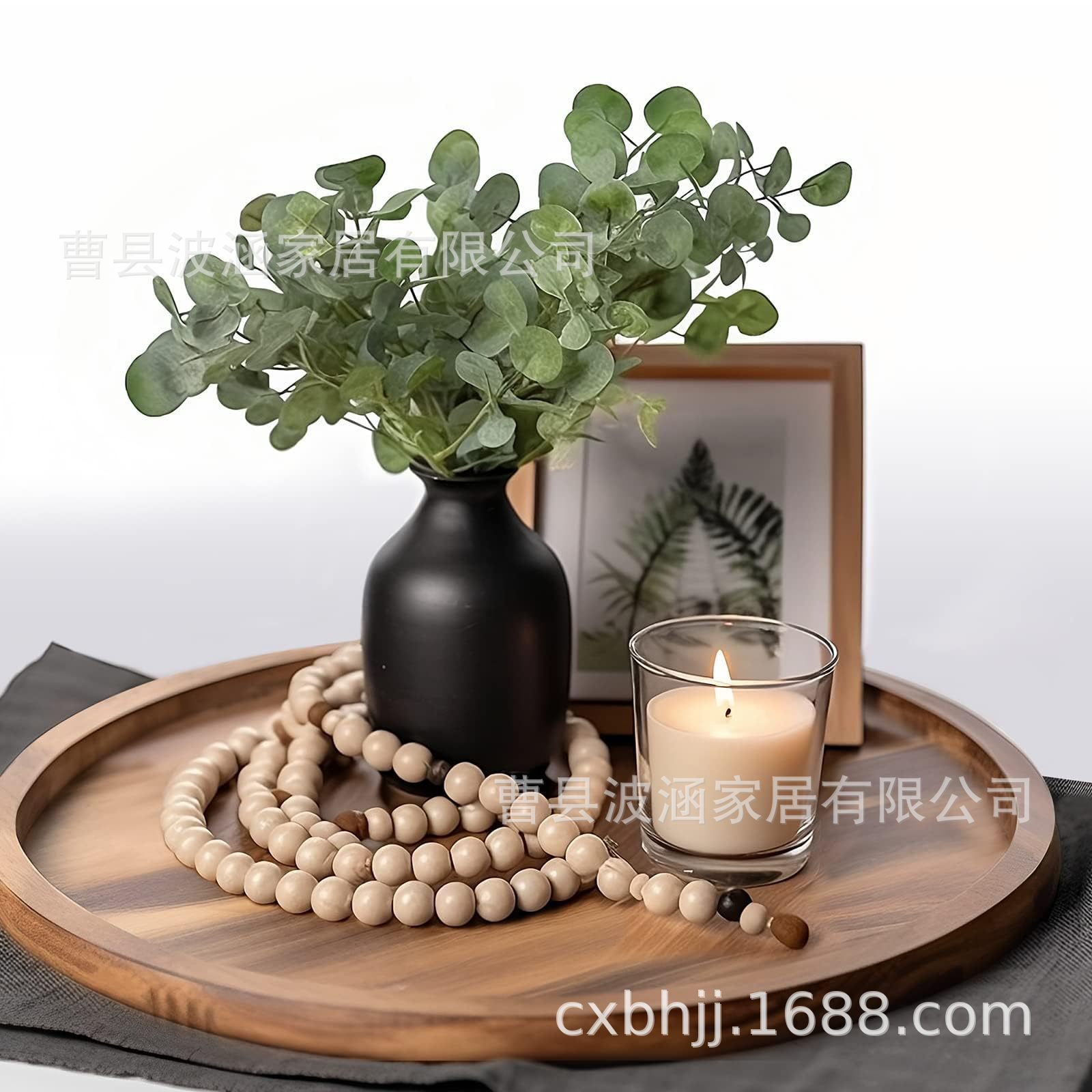 단단한 나무 라운드 트레이 커피 애프터눈 티 트레이 장식 장식품 촛불 아로마 테라피 트레이 욕실 보관함