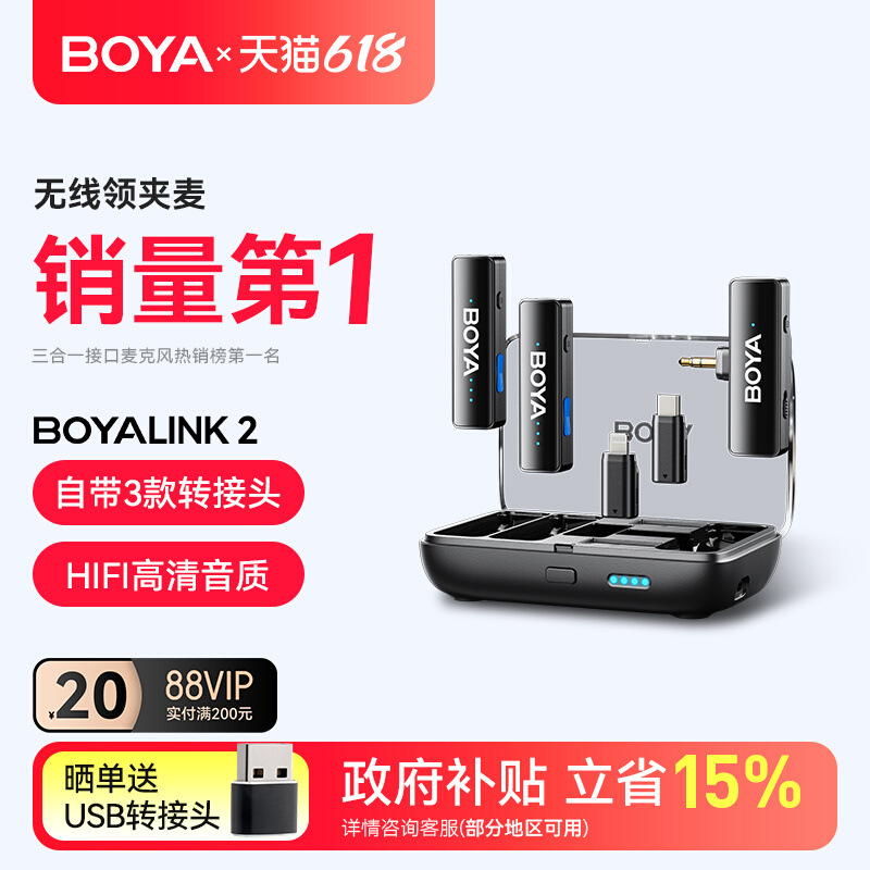 무료 배송 Boya LINK2 라발리에 무선 마이크 휴대 전화 카메라 라이브 방송 전문 녹음스토어 가기