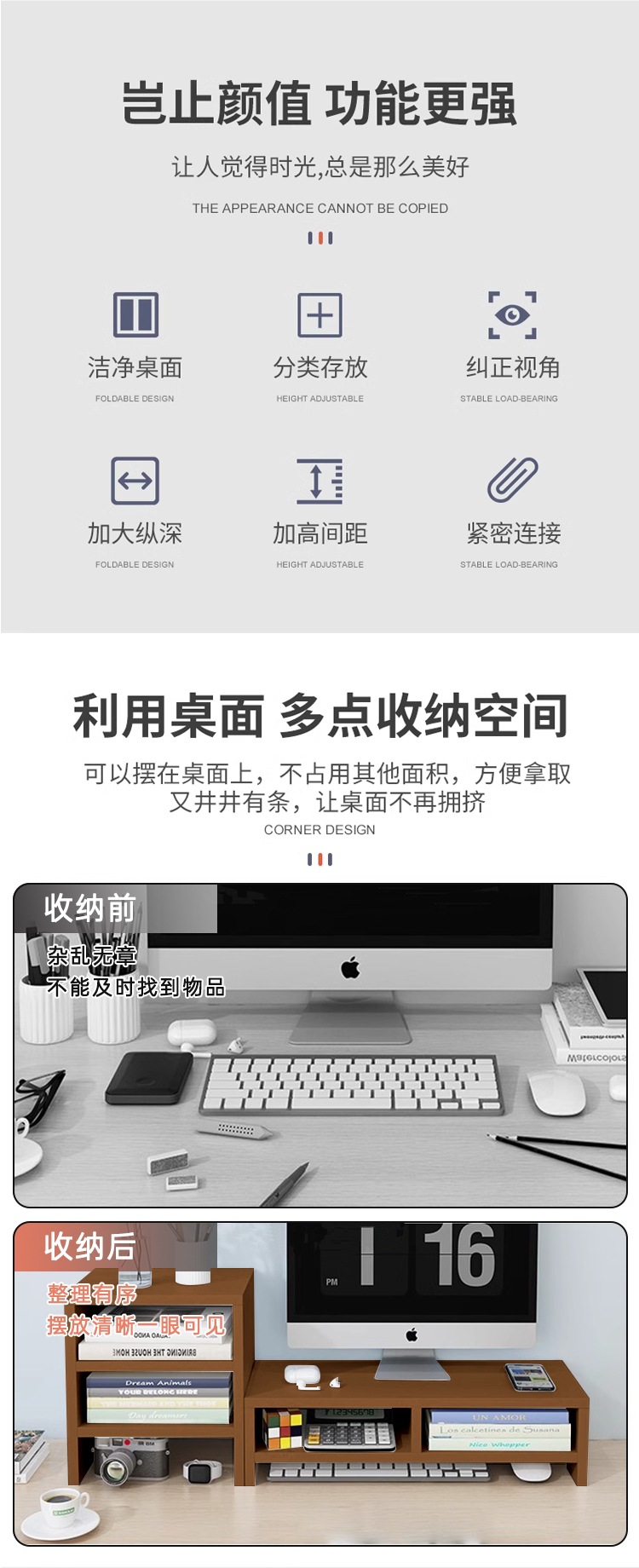 데스크탑 모니터 높이 조절 스탠드 노트북 사무실 책상 선반 키보드 보관 정리 데스크탑 보관함