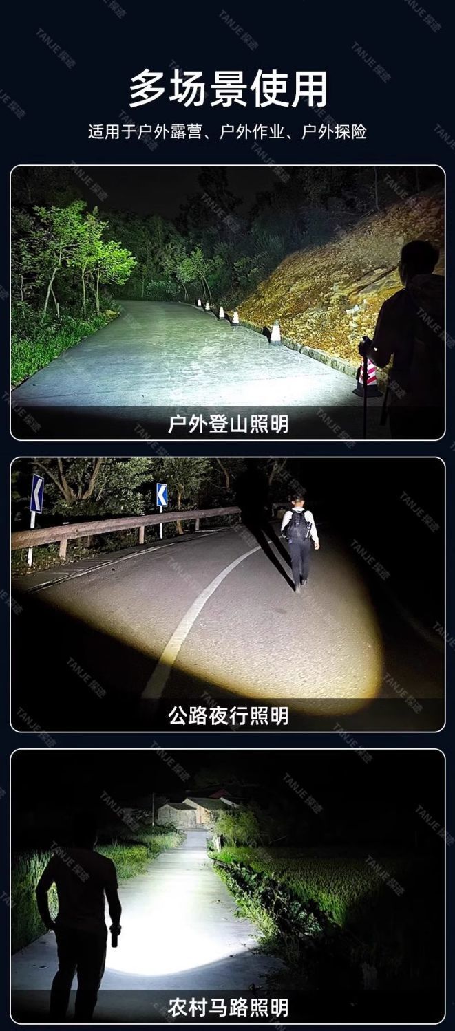 손전등 강한 빛 충전식 야외 초고휘도 장거리 태양열 휴대용 램프 탐조등 긴 배터리 수명 대용량 홈 공장스토어 가기