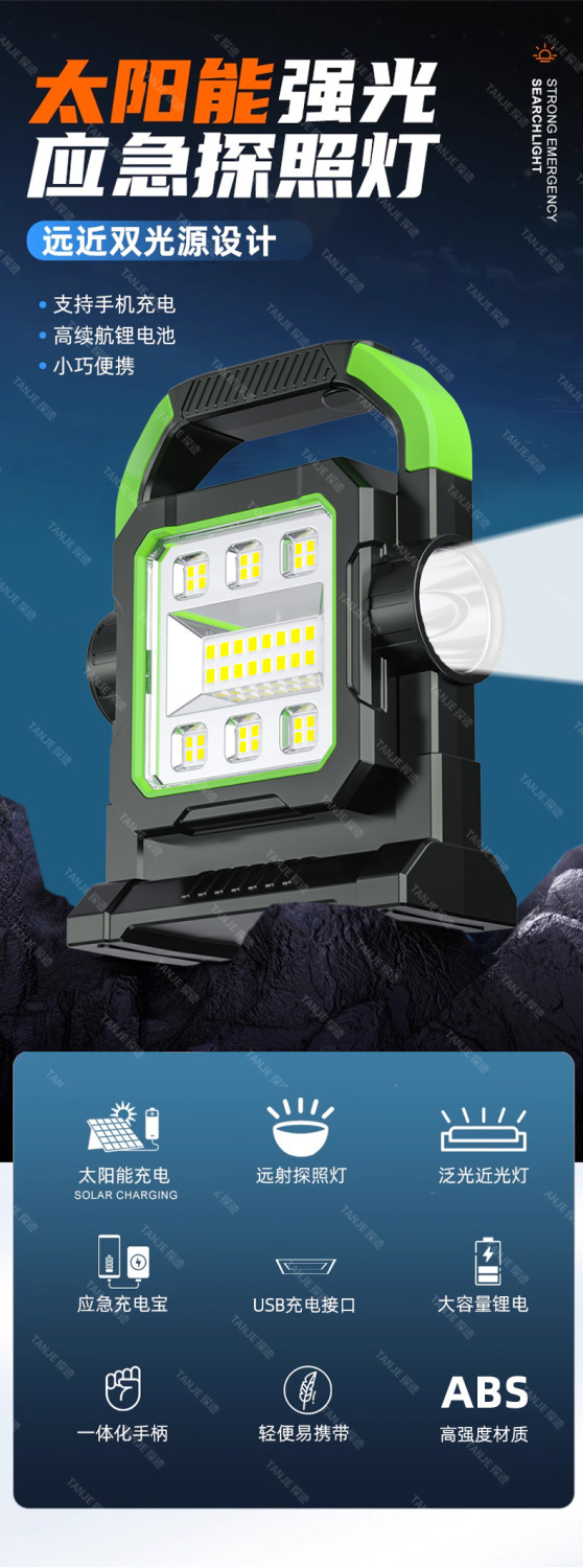 손전등 강한 빛 충전식 야외 초고휘도 장거리 태양열 휴대용 램프 탐조등 긴 배터리 수명 대용량 홈 공장
