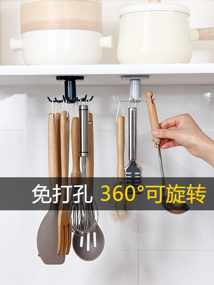 6발톱 후크 주방용 숟가락 및 주걱 걸이 벽걸이 회전식 캐비닛 후크 소형 부품 보관 선반