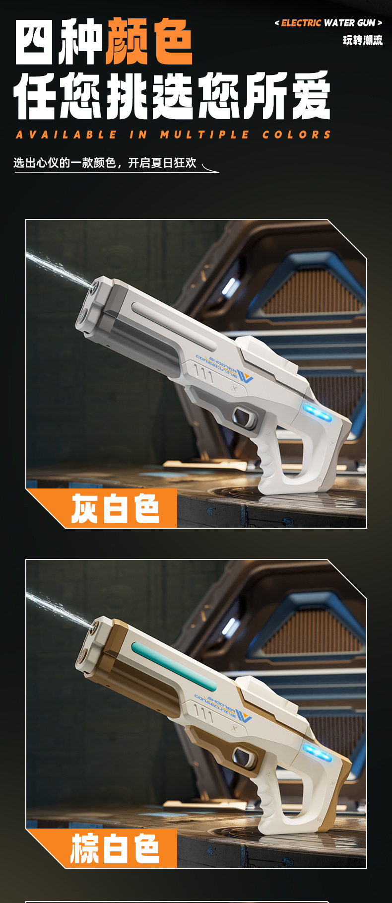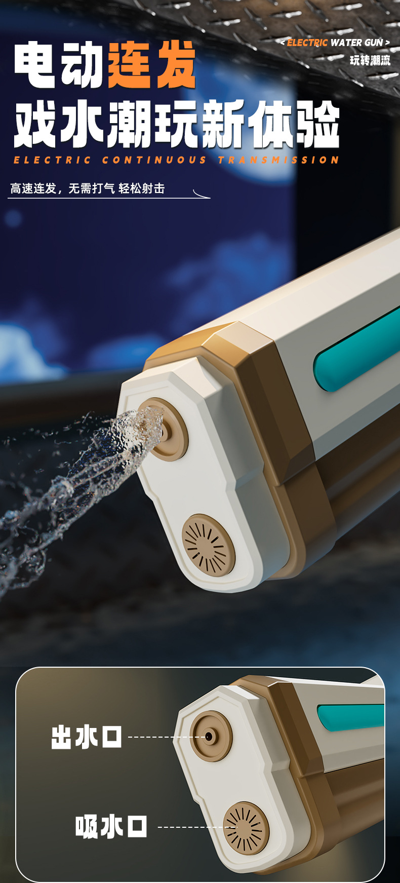 국경 간 검은 기술 전기 고압 물총 빛 대용량 자체 흡입 연속 발사 여름 야외 장난감 펄스 물총