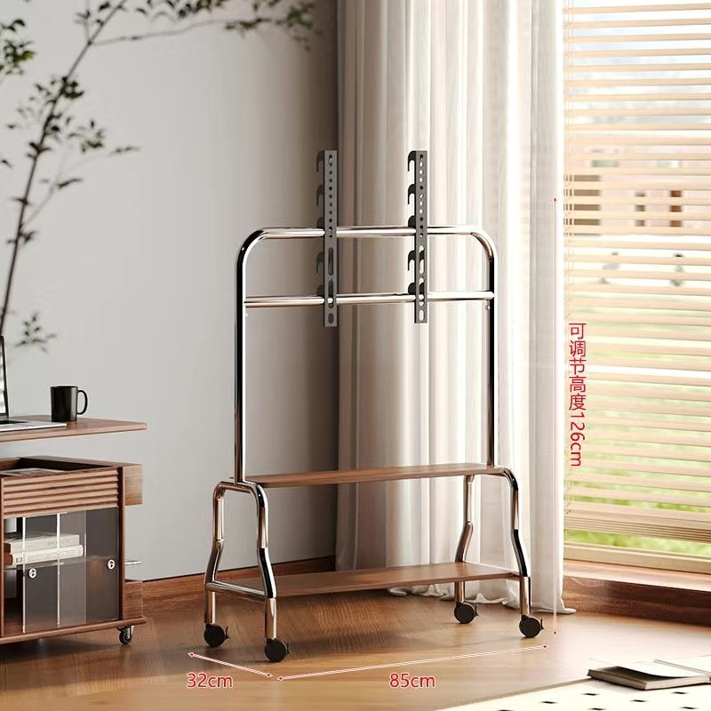 TV 스탠드 바닥 스탠드 이동식 스테인레스 스틸 수직 바퀴 달린 카트 거실 침실 32-75inch 유니버설