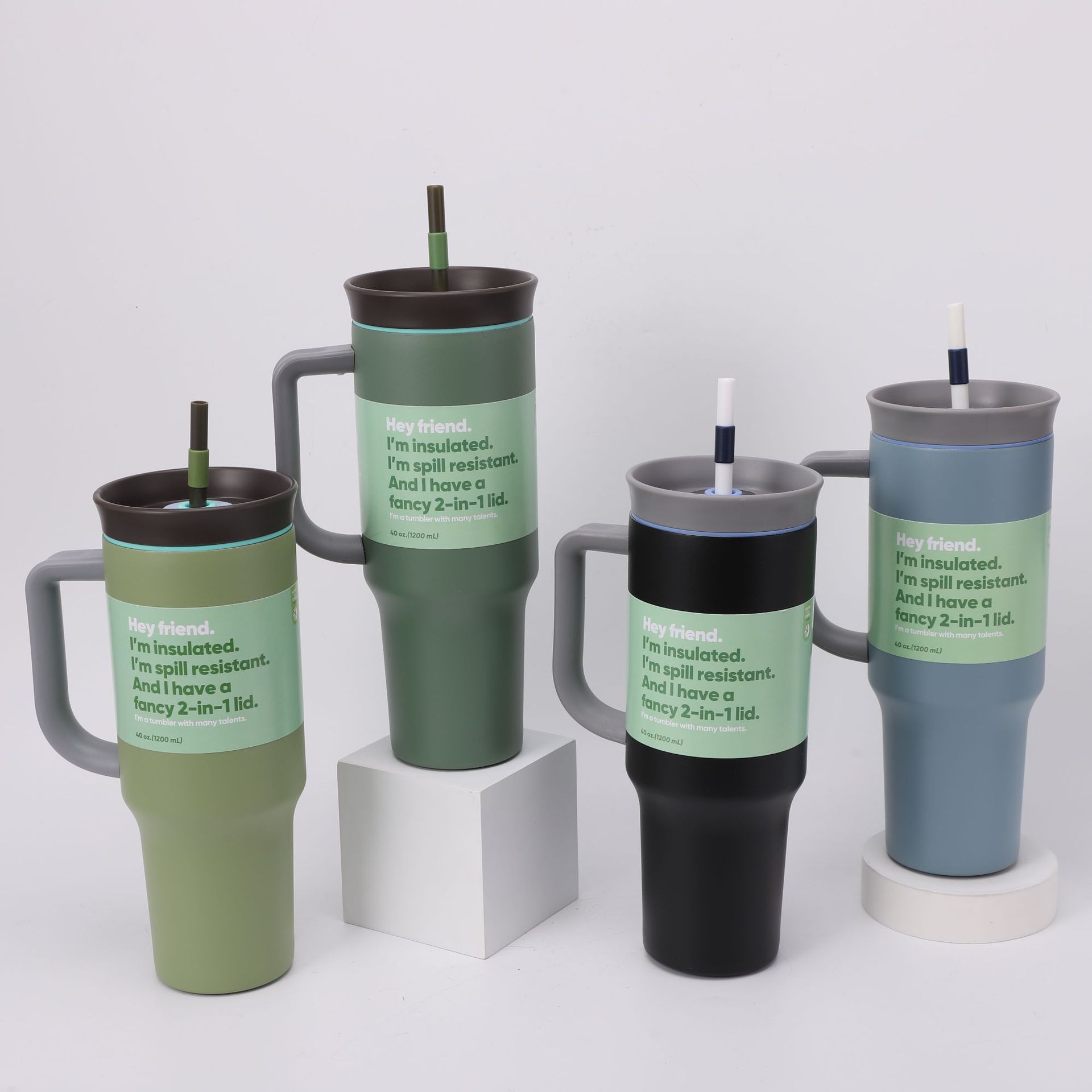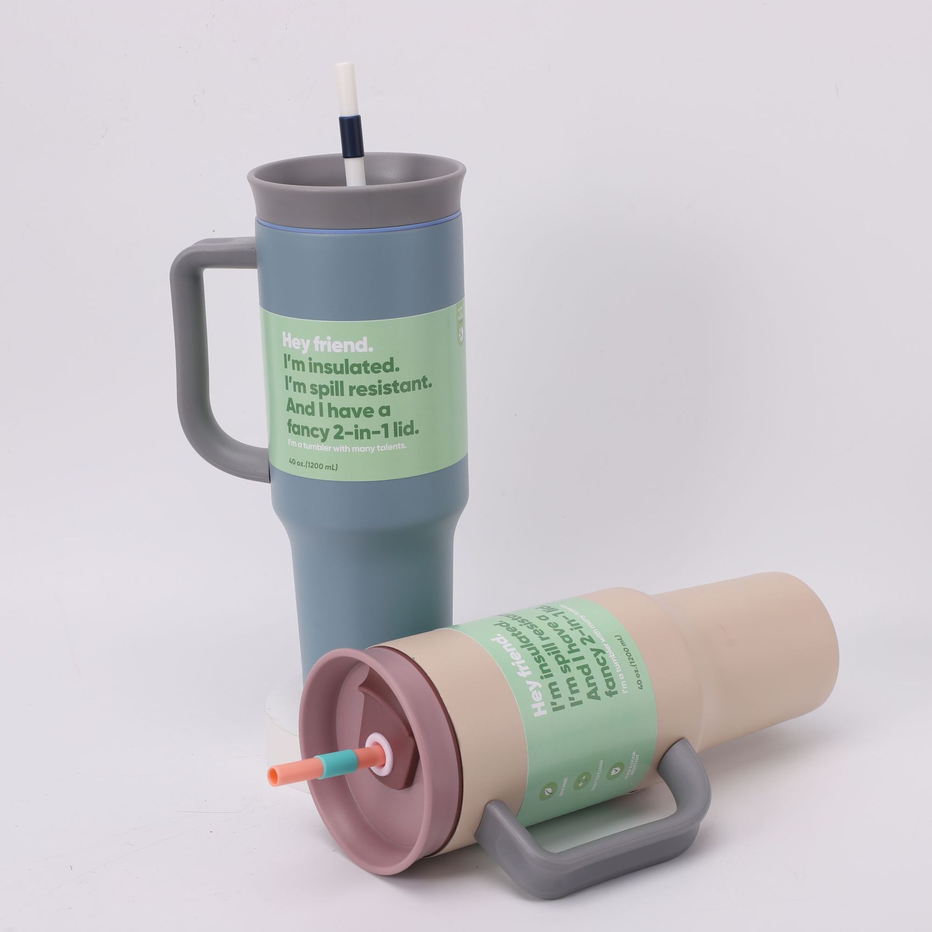 크로스보더 대용량 보온병 오와라 동일 모델 40온스 차량용 컵 휴대용 빨대 손잡이 아이스 워터컵