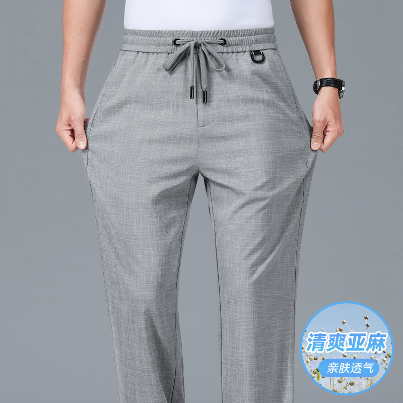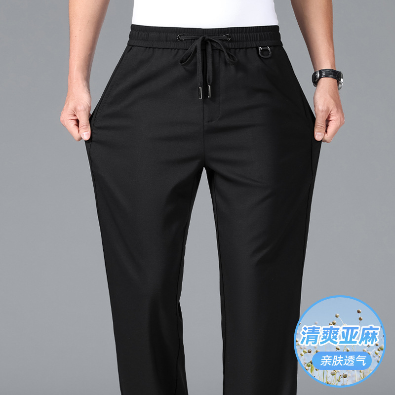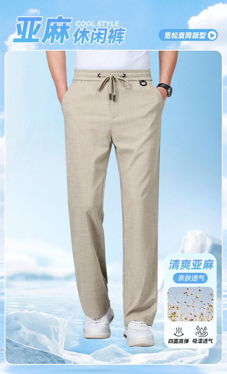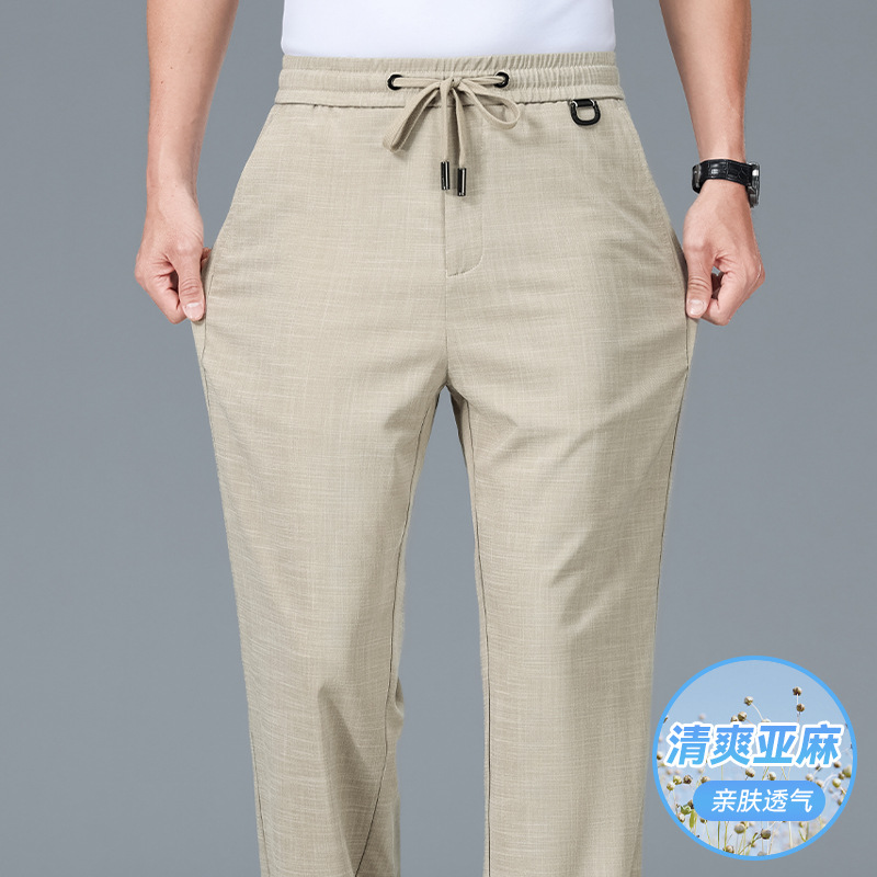 남성용 하이 엔드 리넨 바지 2025 여름 얇은 느슨한 스트레이트 캐주얼 바지 신축성있는 허리 통기성 스포츠 바지