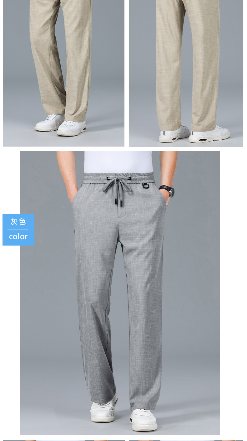남성용 하이 엔드 리넨 바지 2025 여름 얇은 느슨한 스트레이트 캐주얼 바지 신축성있는 허리 통기성 스포츠 바지스토어 가기