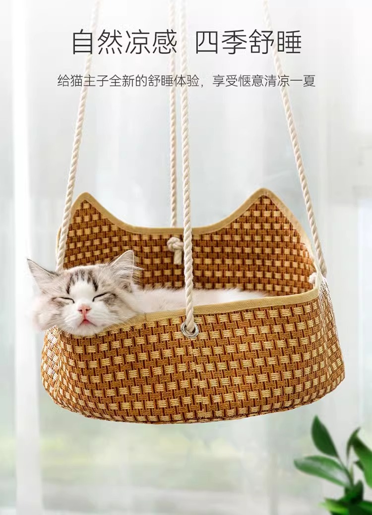 고양이 봄 여름 매트 둥지 수면 케이지 교수형 고양이 해먹 땋은 등나무 고양이 침대 고양이 둥지