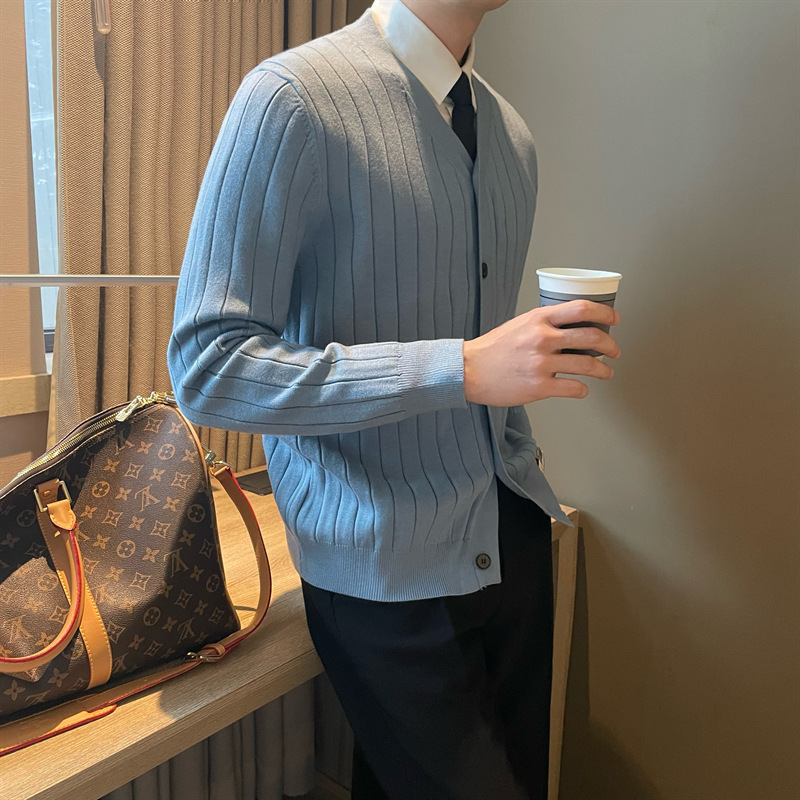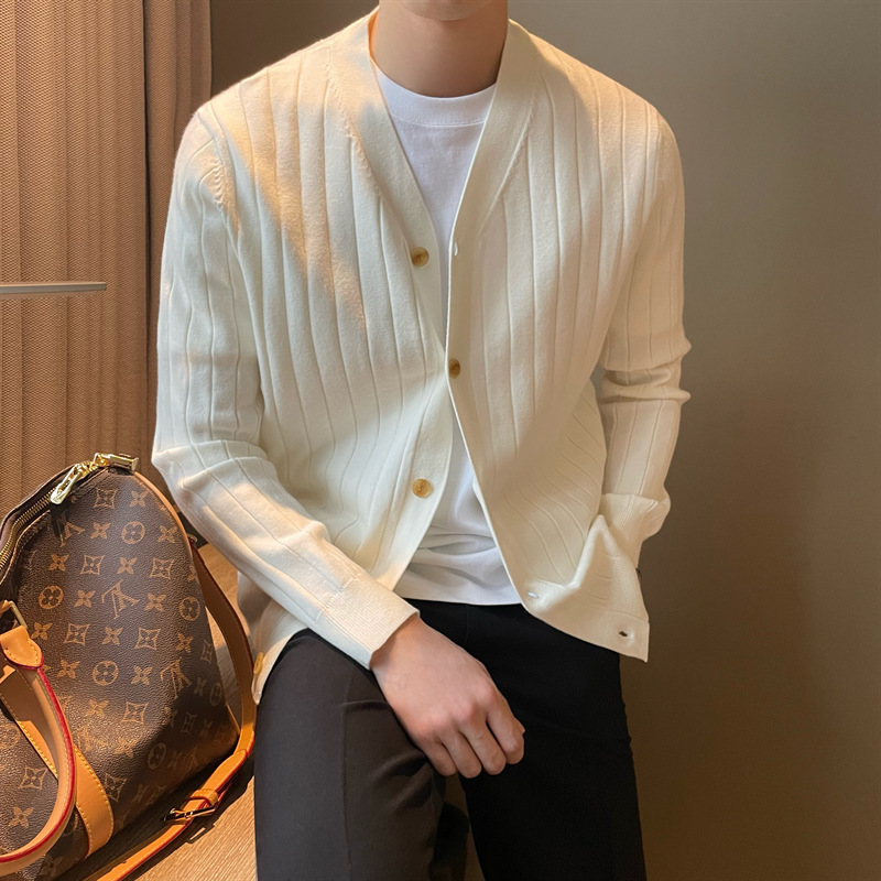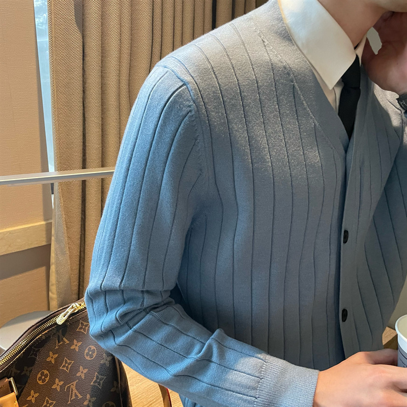 2024 새로운 니트 스웨터 남성 봄, 가을 유행 솔리드 컬러 탑 청소년 얇은 비즈니스 캐주얼 스웨터 카디건스토어 가기